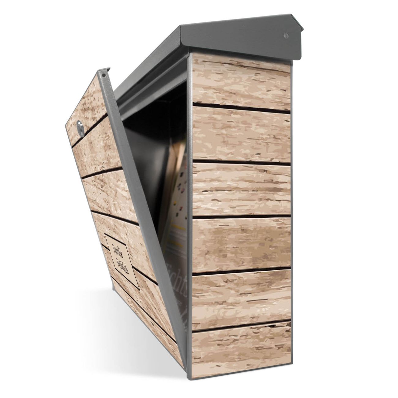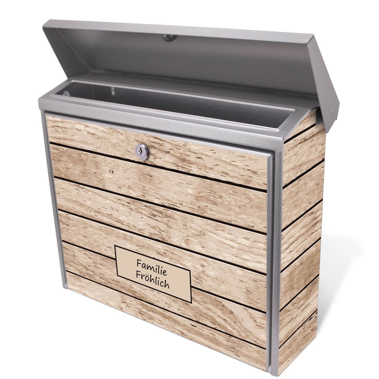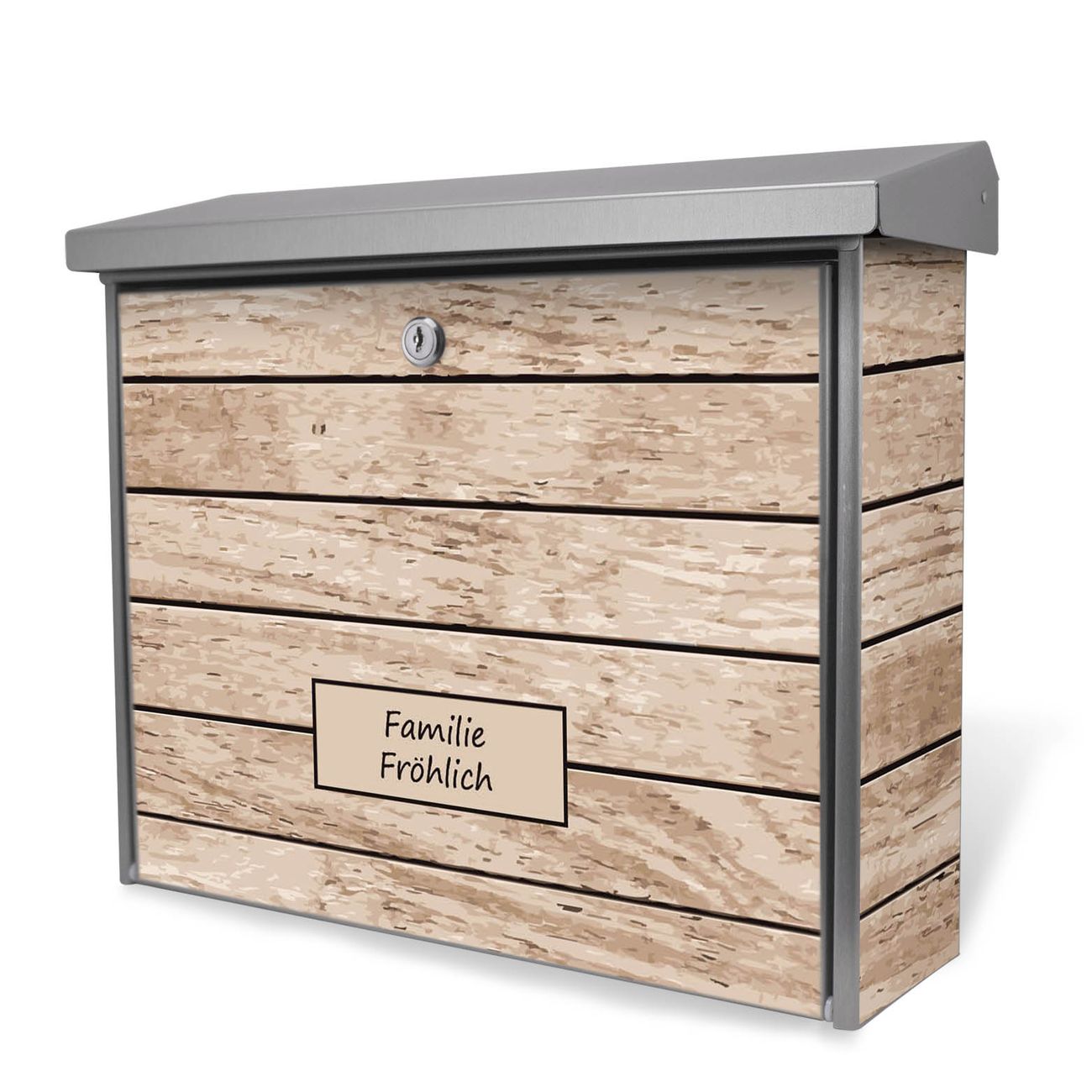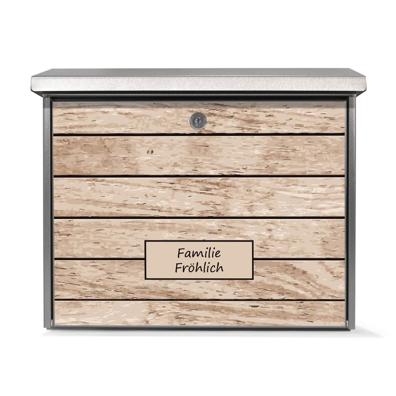 Der Postkasten mit Blasse Holzlatten Motiv hat ein sehr ansprechendes und zeitloses Design. Unsere Motivpalette hält jede Menge Varianten bereit, ob klassisch, modern, verspielt oder witzig - für jeden haben wir das passende Motiv parat. Der Briefkasten ist das Aushängeschild Ihres Hauses.