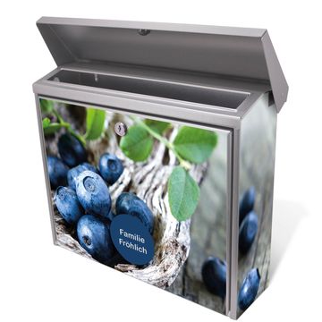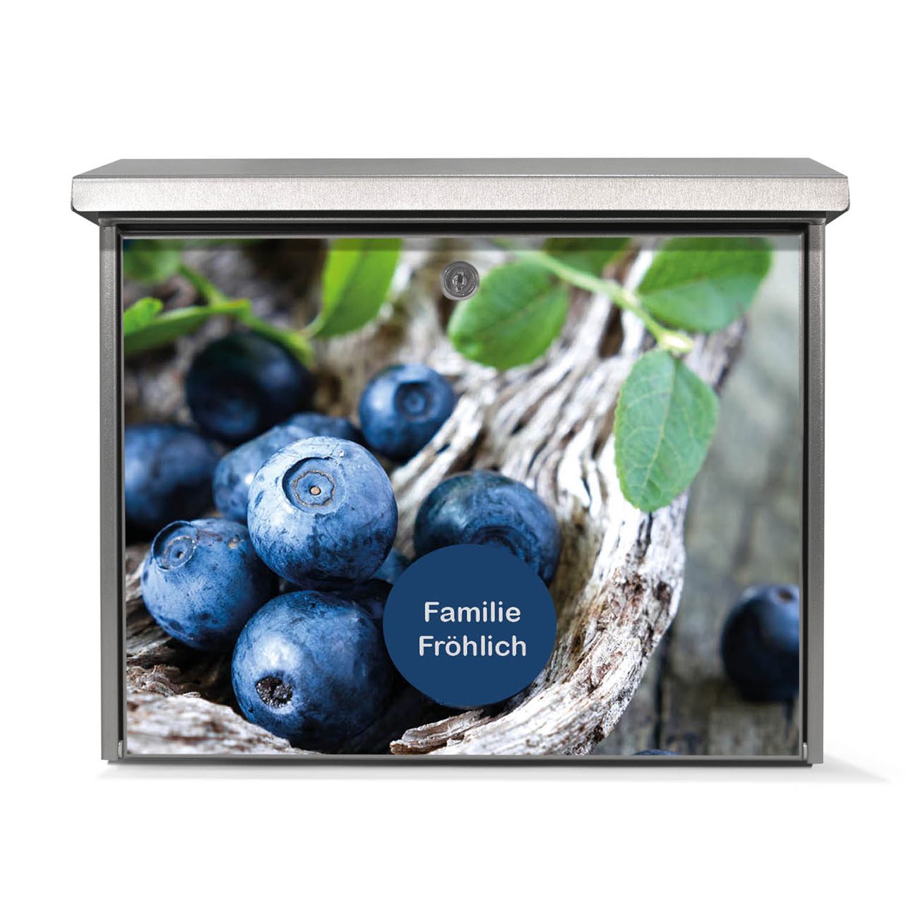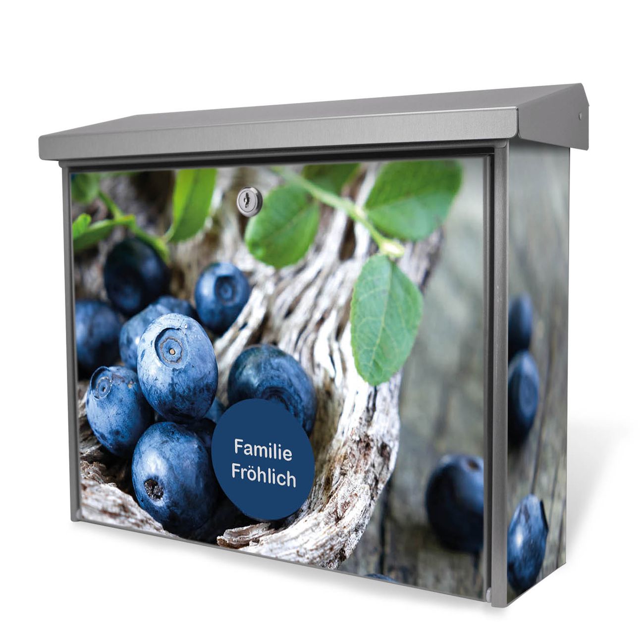 Der Postkasten mit Blaubeeren Motiv hat ein sehr ansprechendes und zeitloses Design. Unsere Motivpalette hält jede Menge Varianten bereit, ob klassisch, modern, verspielt oder witzig - für jeden haben wir das passende Motiv parat. Der Briefkasten ist das Aushängeschild Ihres Hauses.