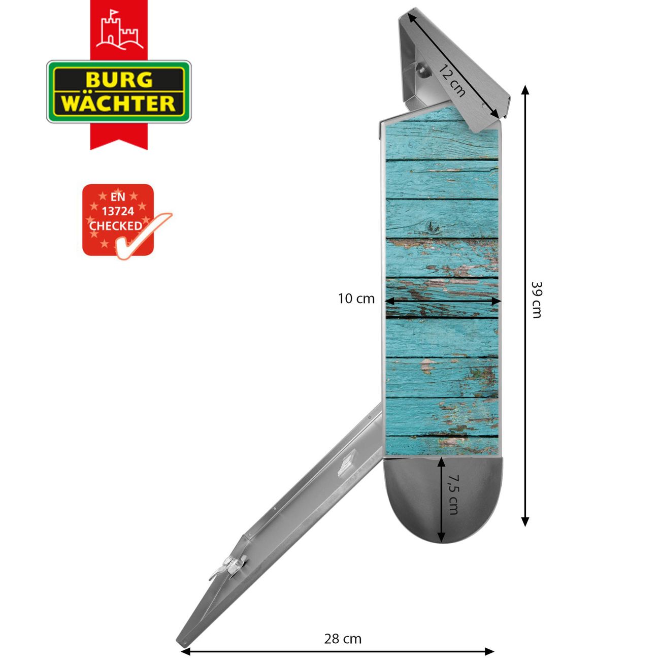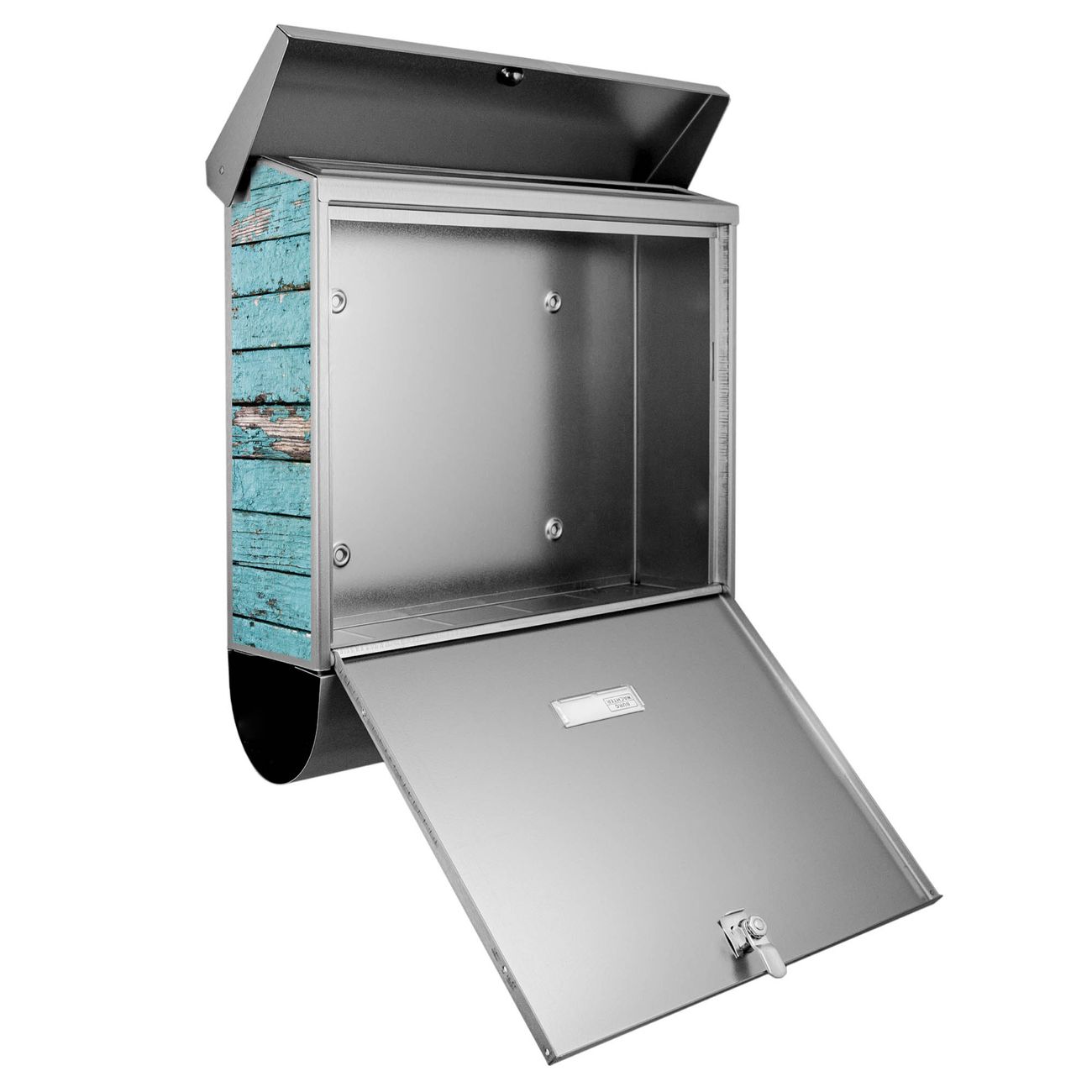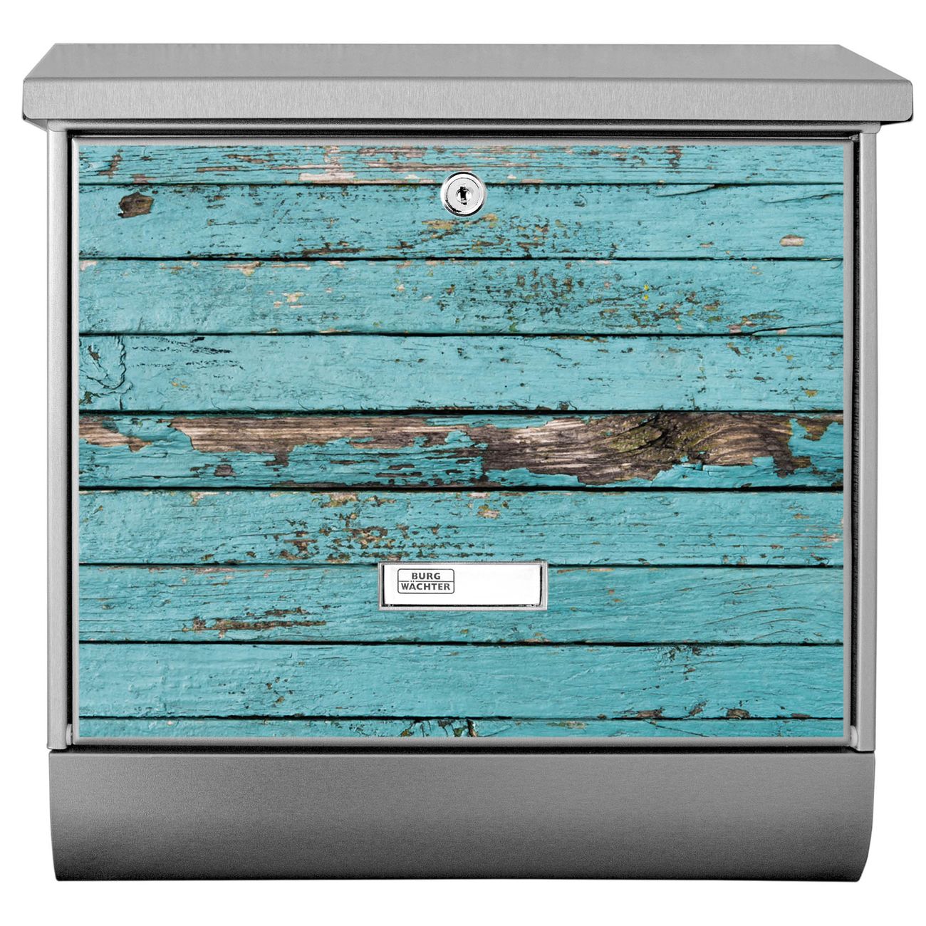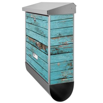 Der BURG-WÄCHTER Edelstahl Briefkasten mit Motiv Blaue Holzlatten und Zeitungsrolle bietet Ihnen mit seinem Fassungsvermögen genügend Platz auch für große A4 Sendungen und Zeitschriften. Das integrierte Regendach schützt Ihre Post vor dem Eindringen von Regen.