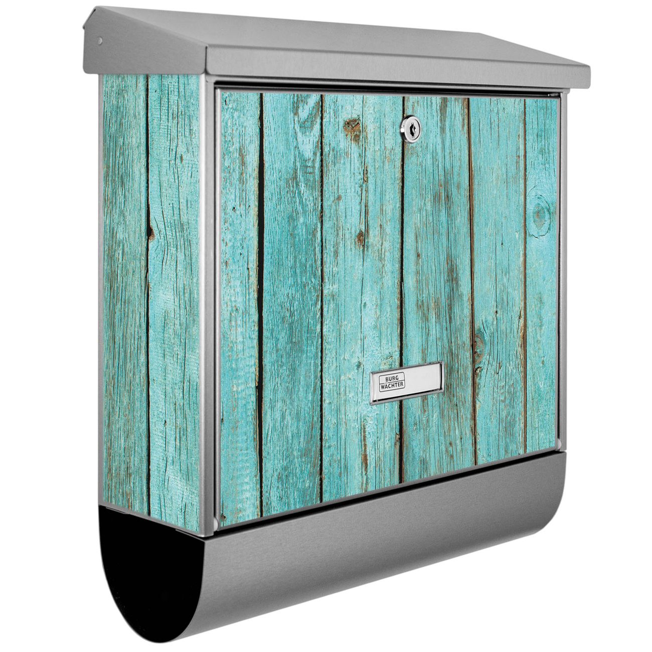 Der BURG-WÄCHTER Edelstahl Briefkasten mit Motiv Blaues Holz und Zeitungsrolle bietet Ihnen mit seinem Fassungsvermögen genügend Platz auch für große A4 Sendungen und Zeitschriften. Das integrierte Regendach schützt Ihre Post vor dem Eindringen von Regen.