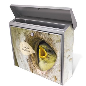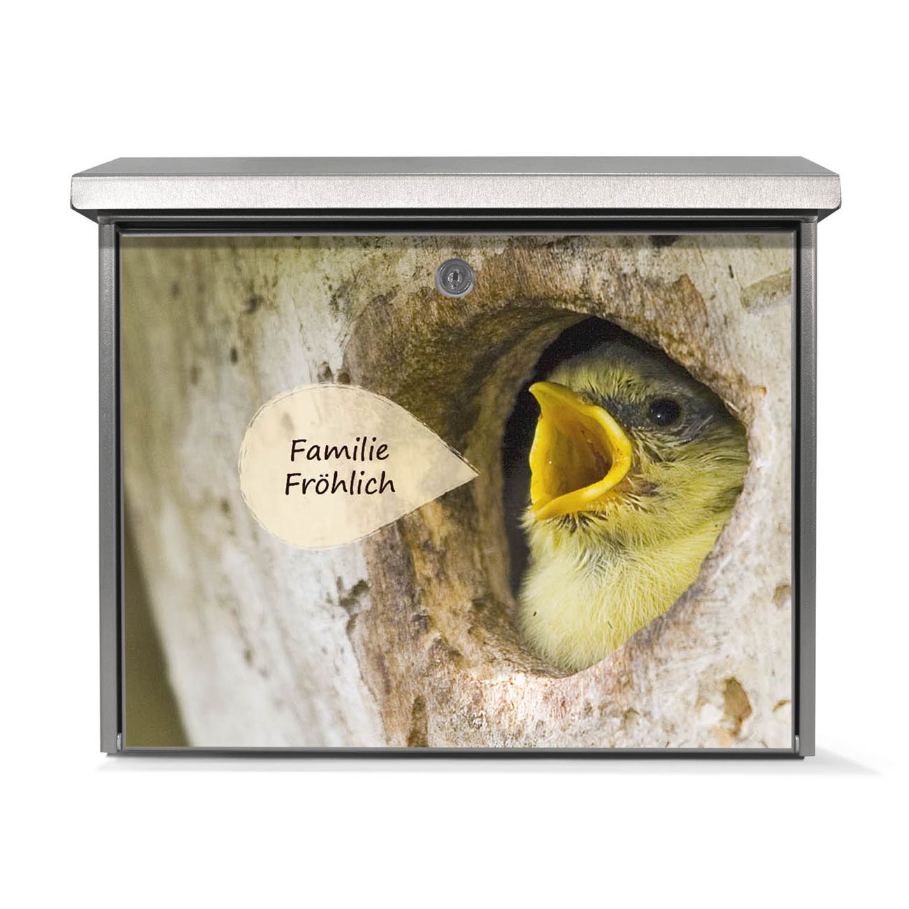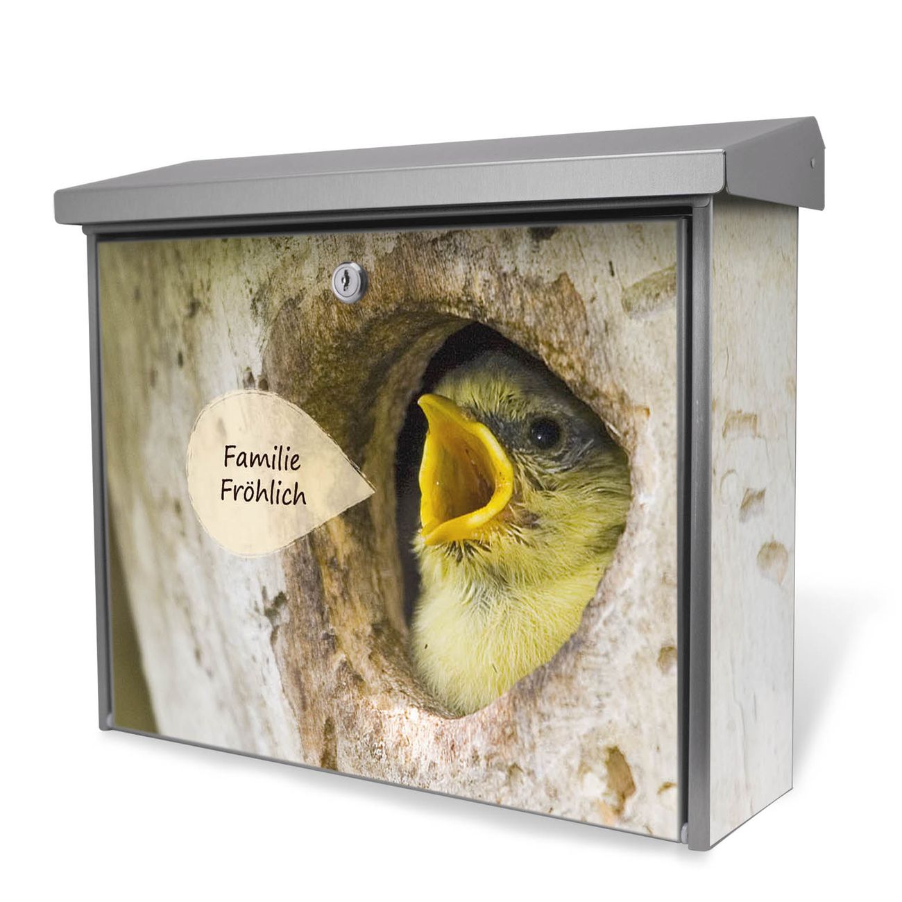 Der Postkasten mit Blaumeise Motiv hat ein sehr ansprechendes und zeitloses Design. Unsere Motivpalette hält jede Menge Varianten bereit, ob klassisch, modern, verspielt oder witzig - für jeden haben wir das passende Motiv parat. Der Briefkasten ist das Aushängeschild Ihres Hauses.