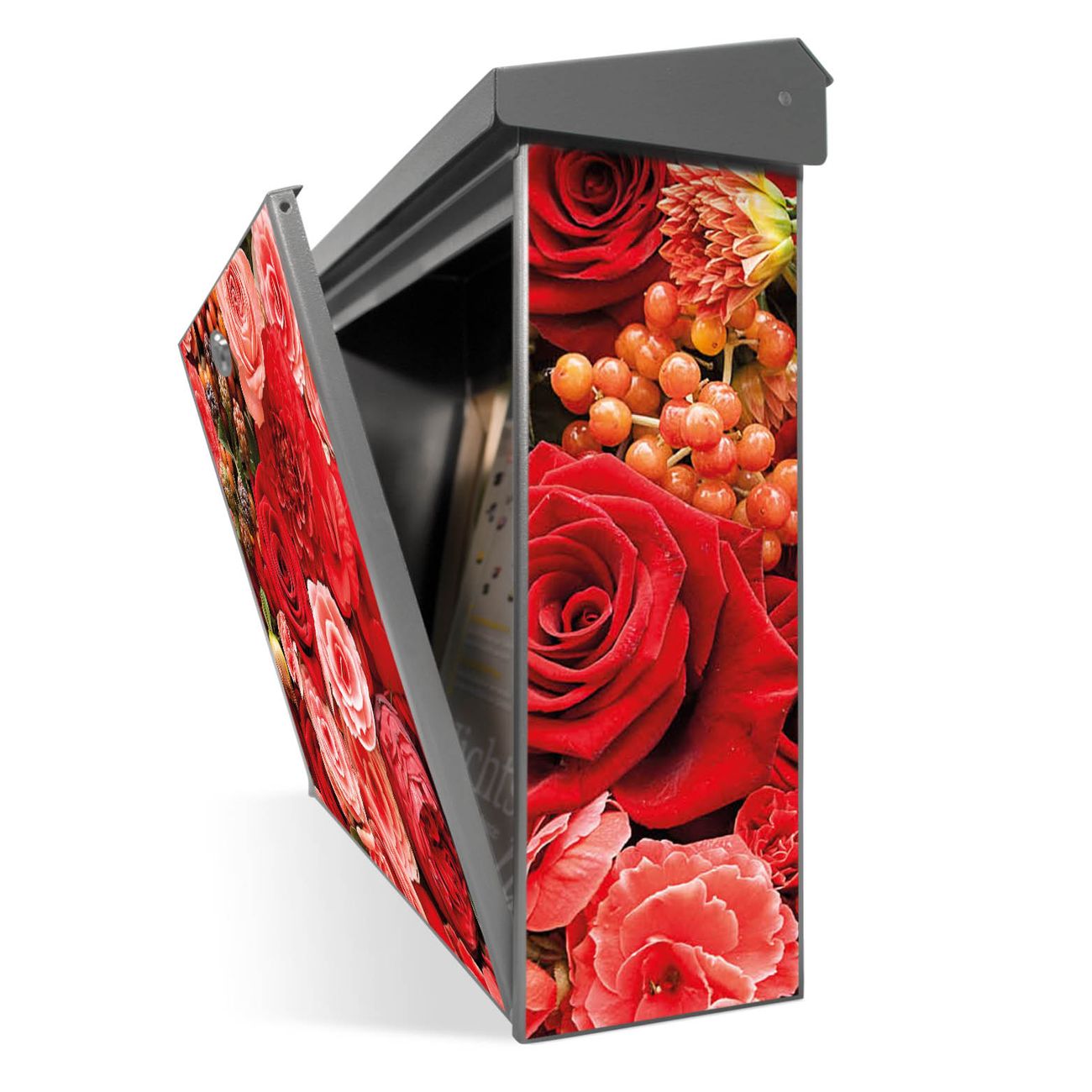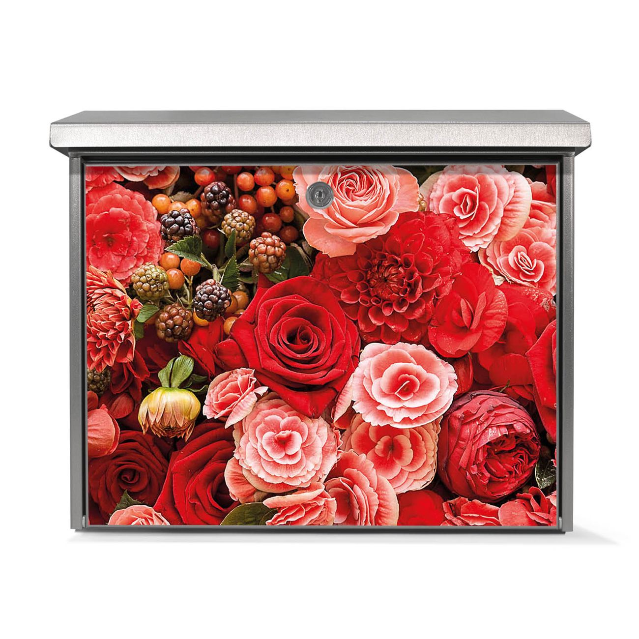 Der Postkasten mit Bouquet in Rot Motiv hat ein sehr ansprechendes und zeitloses Design. Unsere Motivpalette hält jede Menge Varianten bereit, ob klassisch, modern, verspielt oder witzig - für jeden haben wir das passende Motiv parat. Der Briefkasten ist das Aushängeschild Ihres Hauses.