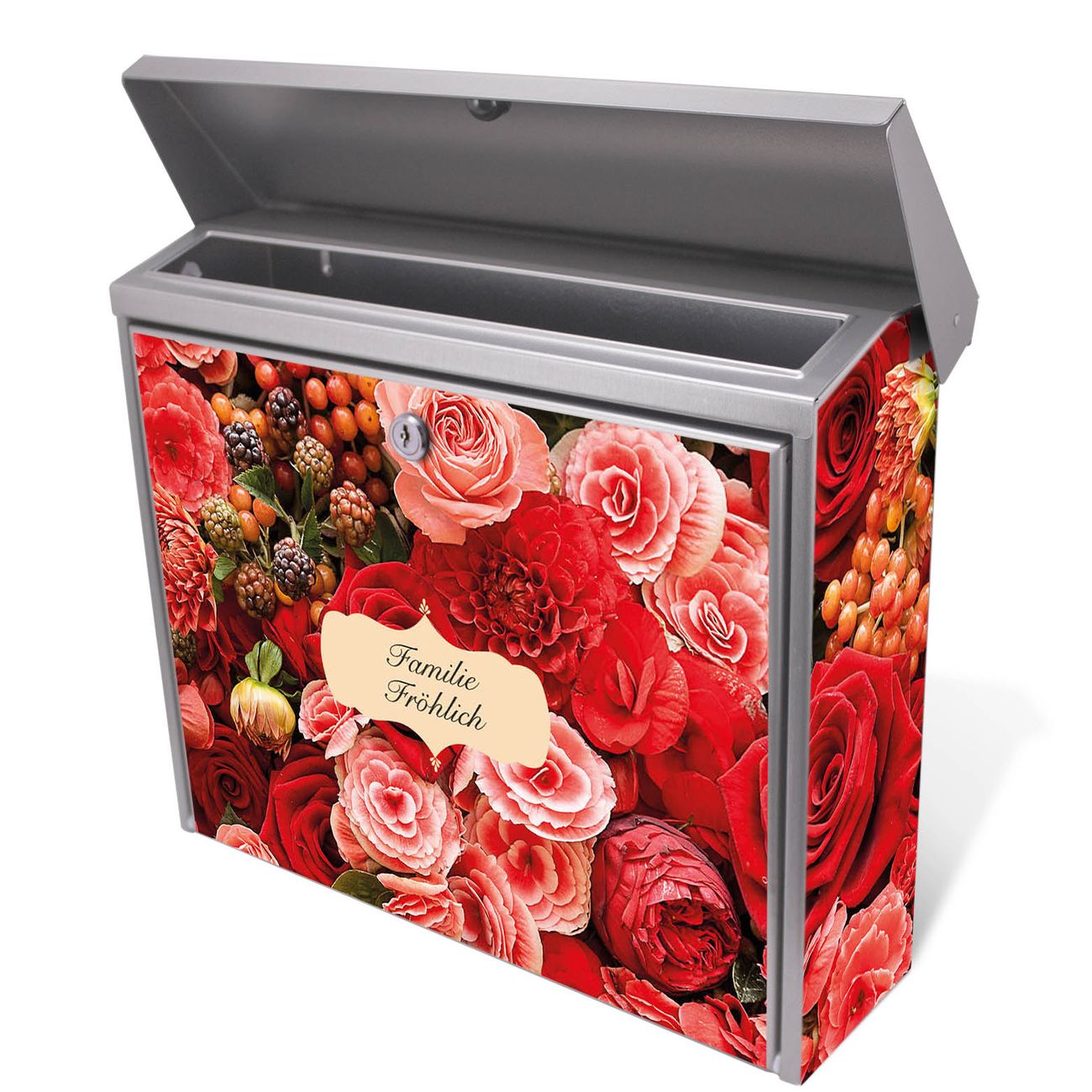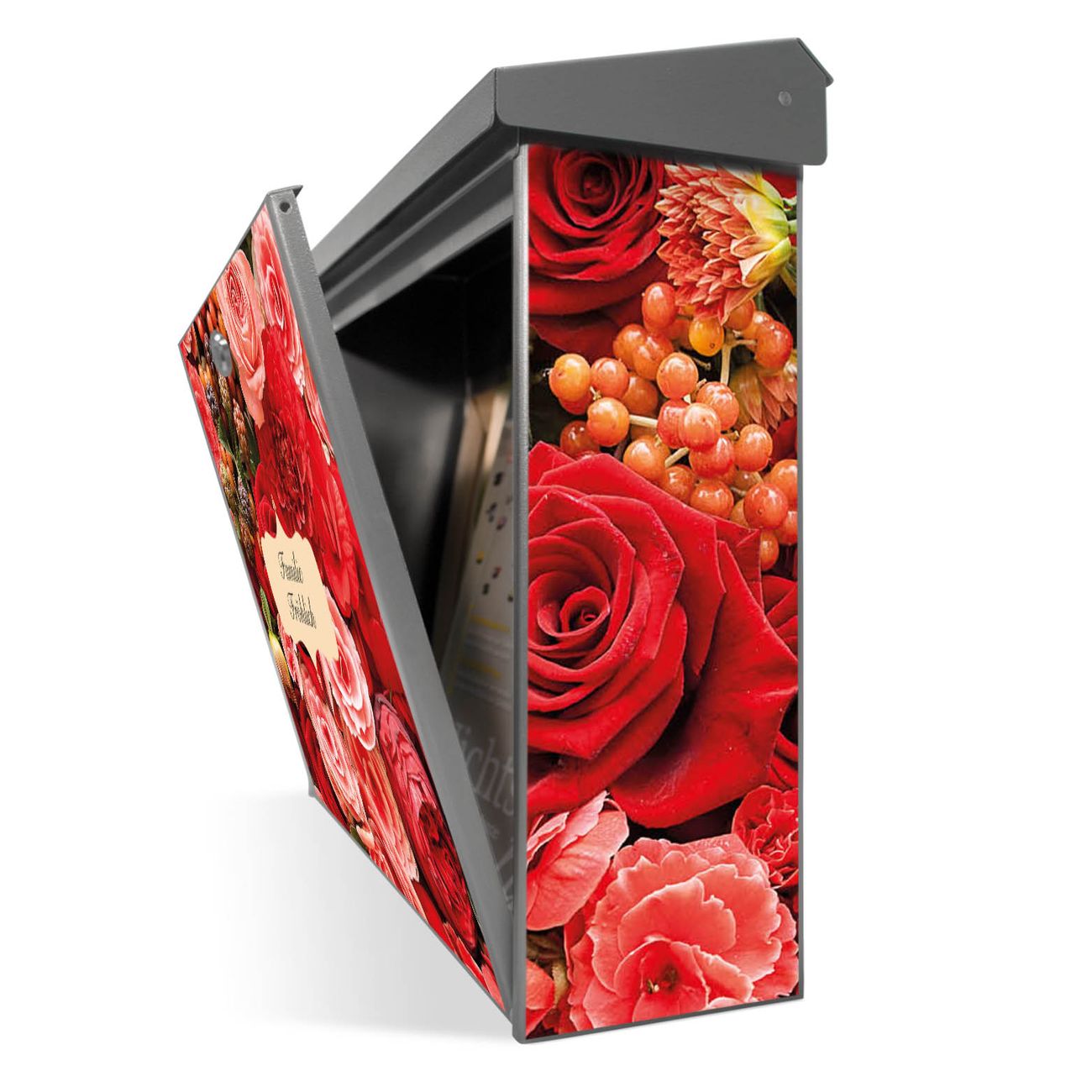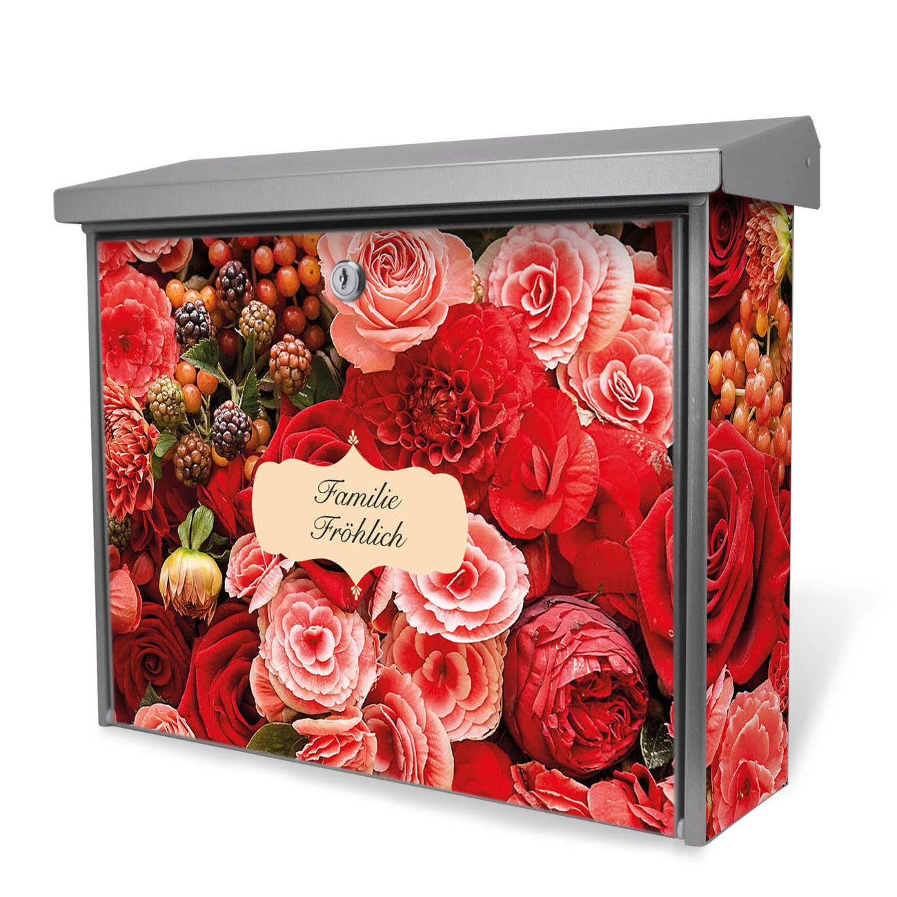 Der Postkasten mit Bouquet in Rot Motiv hat ein sehr ansprechendes und zeitloses Design. Unsere Motivpalette hält jede Menge Varianten bereit, ob klassisch, modern, verspielt oder witzig - für jeden haben wir das passende Motiv parat. Der Briefkasten ist das Aushängeschild Ihres Hauses.
