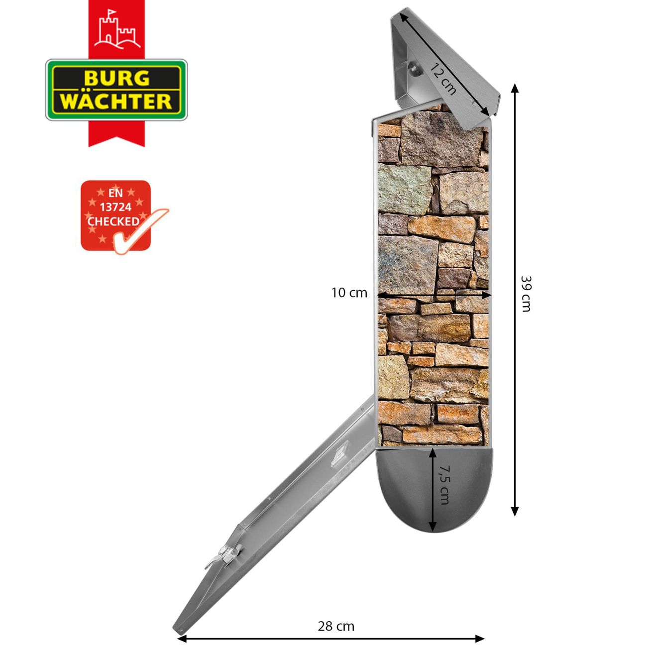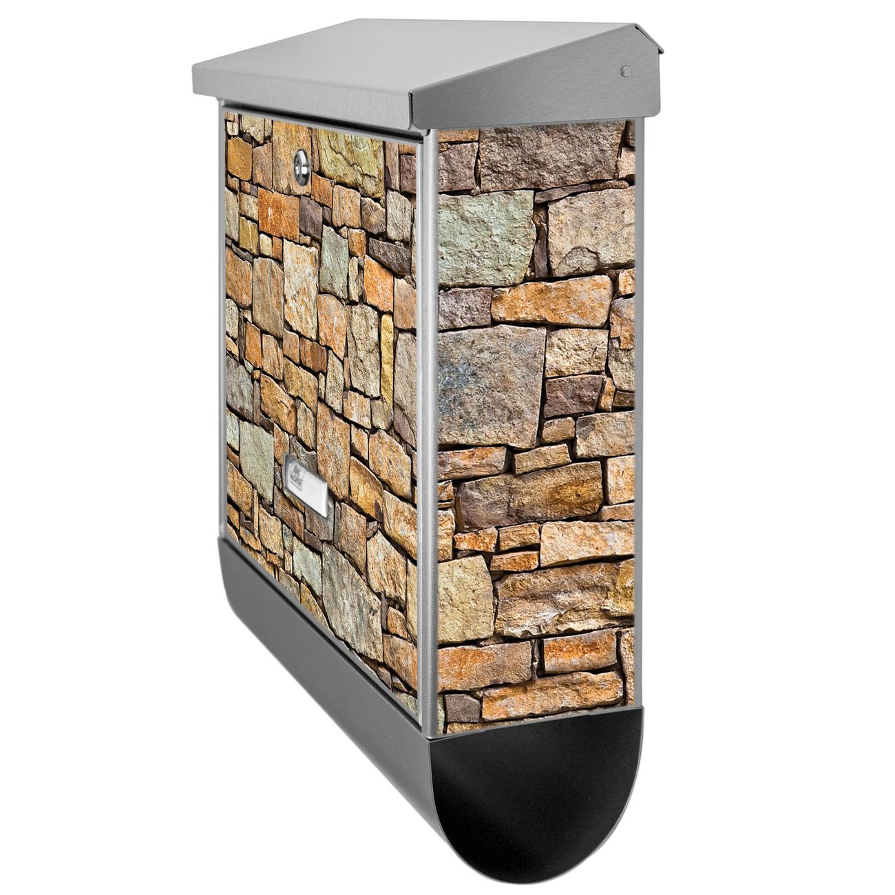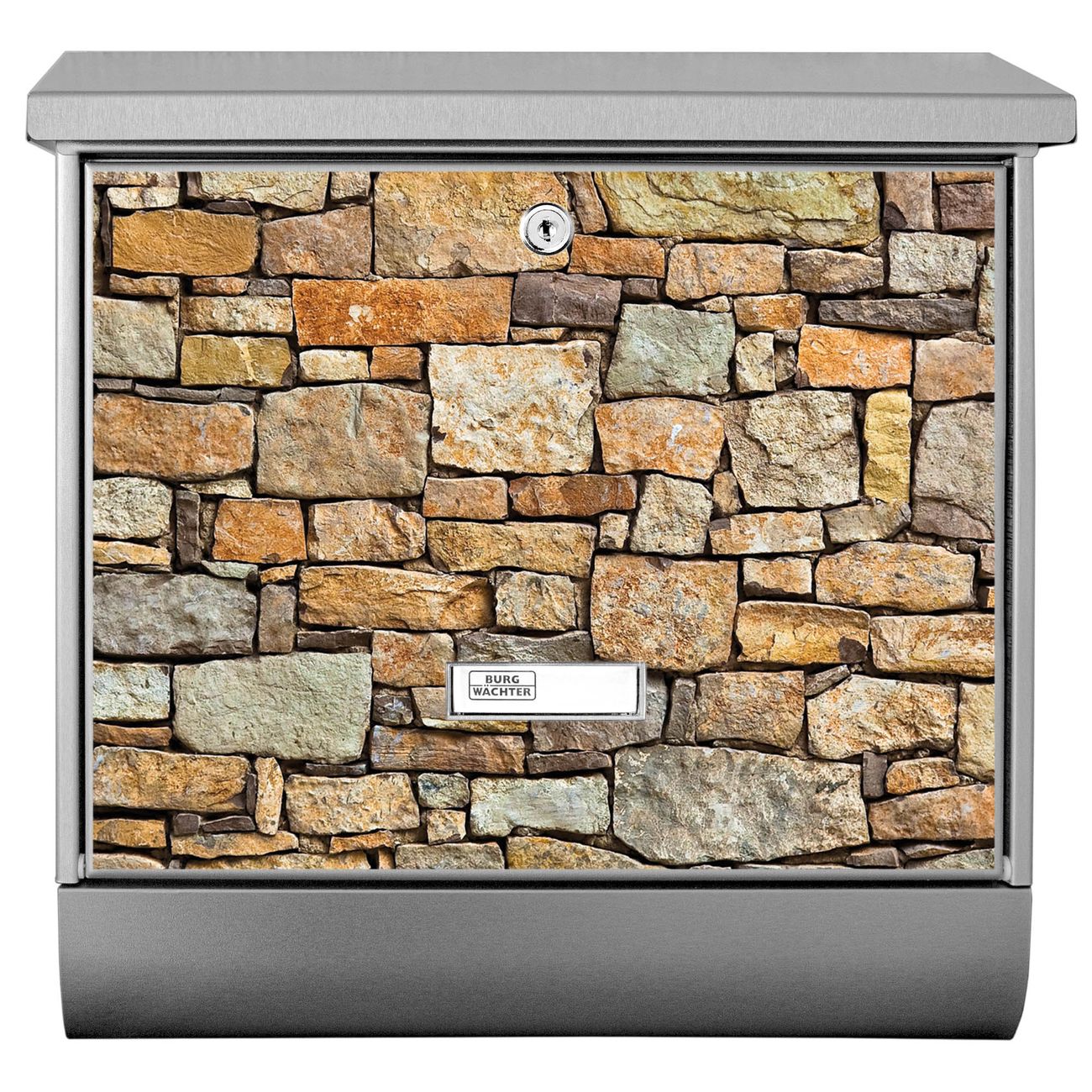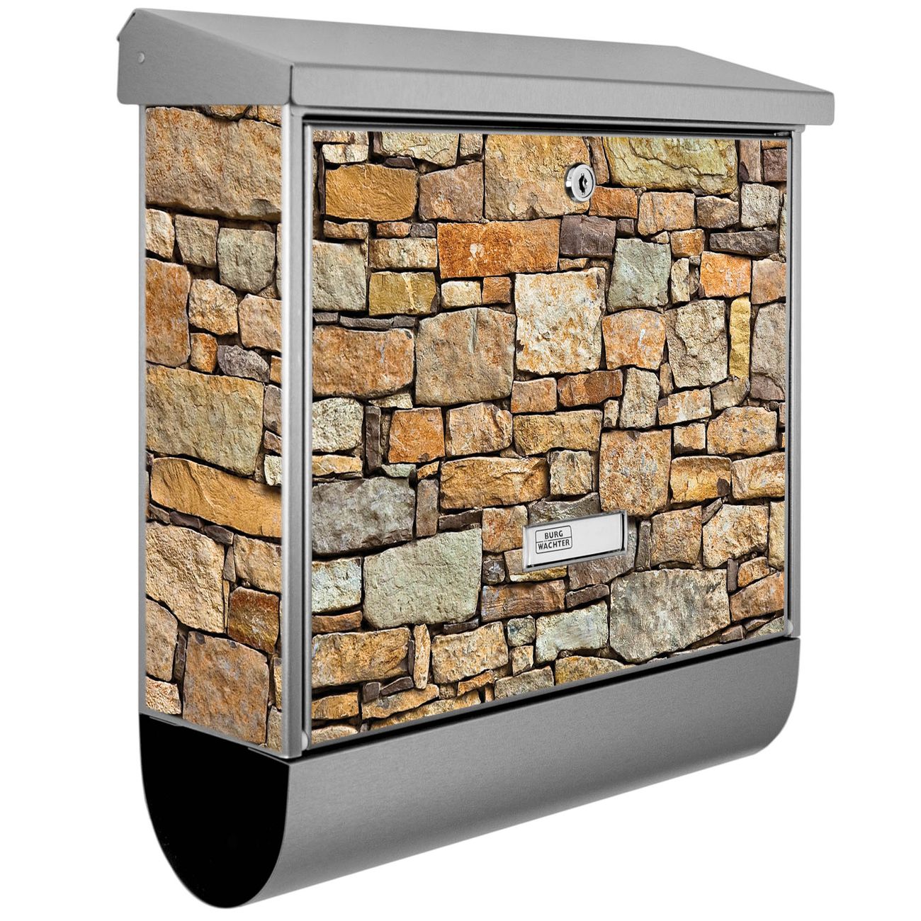 Der BURG-WÄCHTER Edelstahl Briefkasten mit Motiv Bruchsteinmauer und Zeitungsrolle bietet Ihnen mit seinem Fassungsvermögen genügend Platz auch für große A4 Sendungen und Zeitschriften. Das integrierte Regendach schützt Ihre Post vor dem Eindringen von Regen.