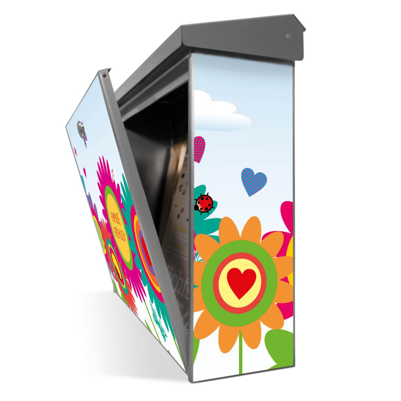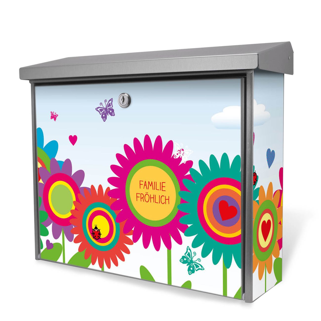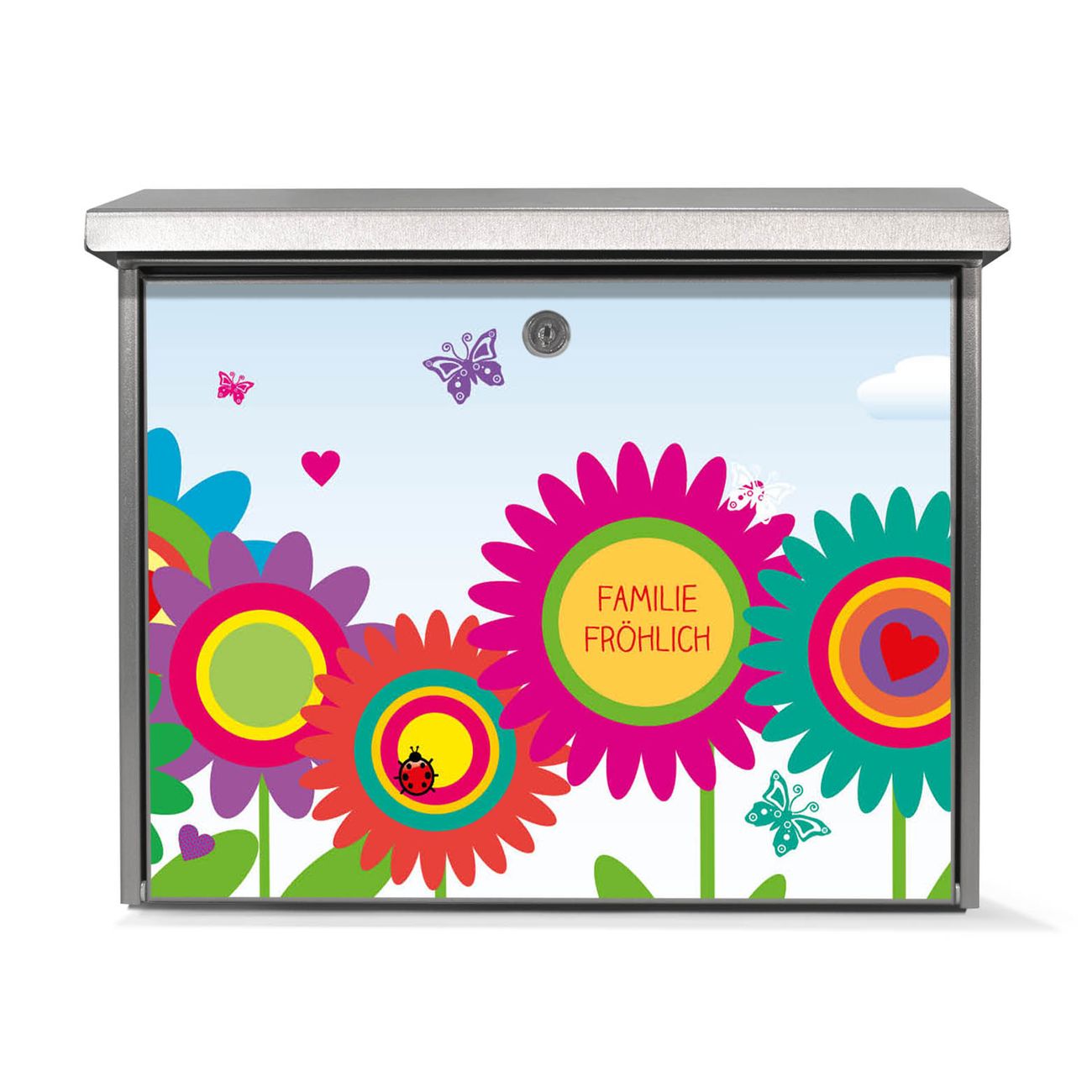 Der Postkasten mit Bunte Blumen Motiv hat ein sehr ansprechendes und zeitloses Design. Unsere Motivpalette hält jede Menge Varianten bereit, ob klassisch, modern, verspielt oder witzig - für jeden haben wir das passende Motiv parat. Der Briefkasten ist das Aushängeschild Ihres Hauses.