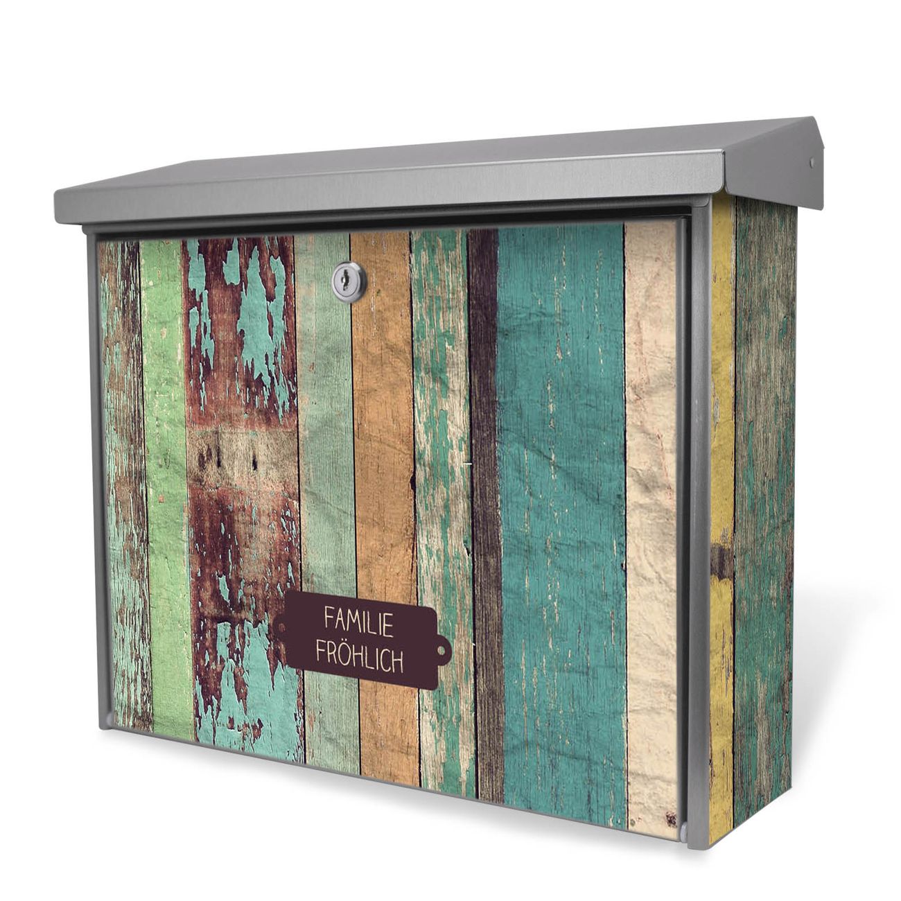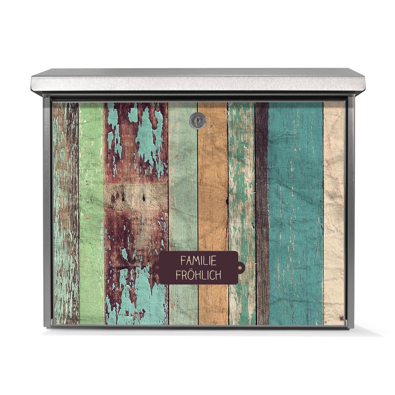 Der Postkasten mit Bunte Bretterwand Motiv hat ein sehr ansprechendes und zeitloses Design. Unsere Motivpalette hält jede Menge Varianten bereit, ob klassisch, modern, verspielt oder witzig - für jeden haben wir das passende Motiv parat. Der Briefkasten ist das Aushängeschild Ihres Hauses.