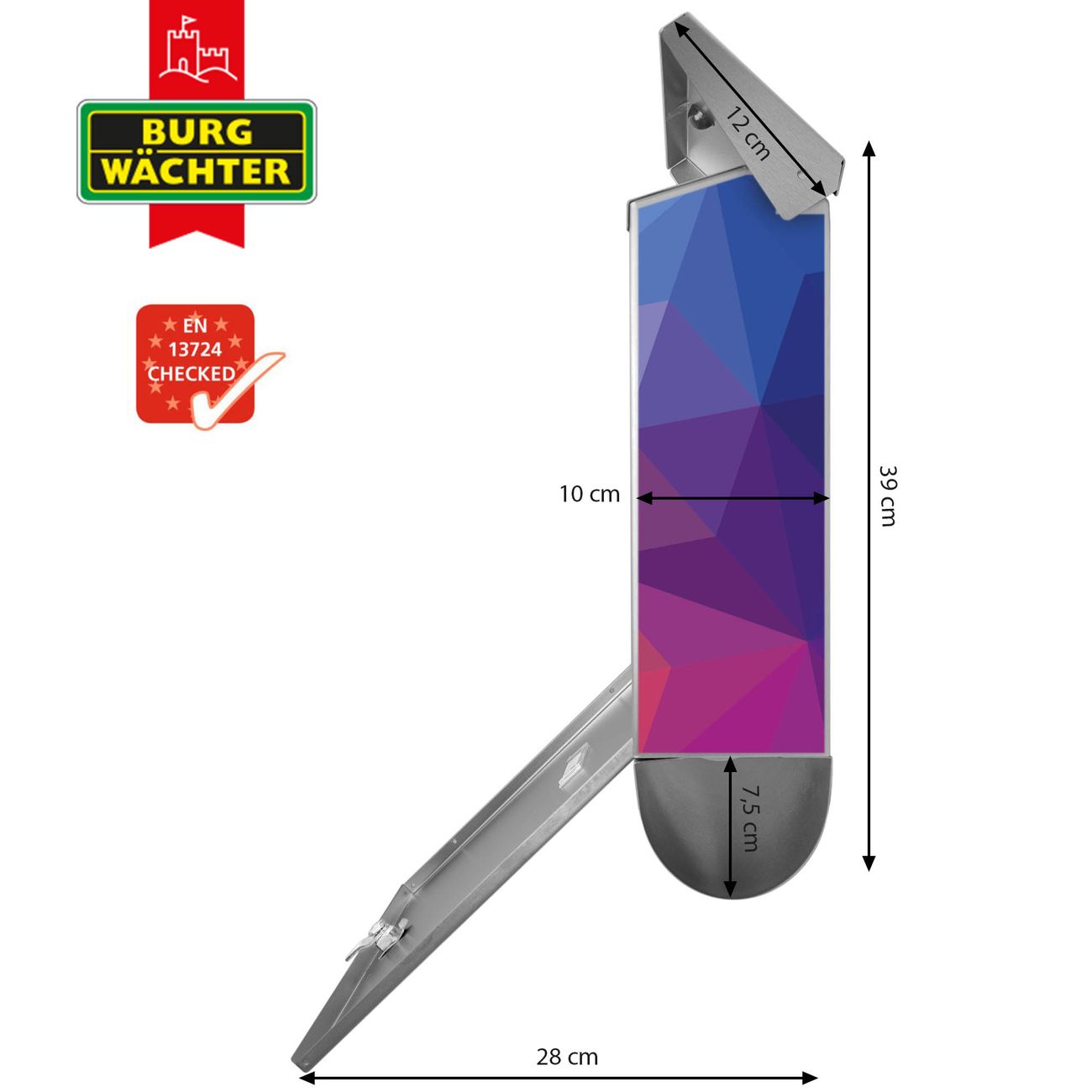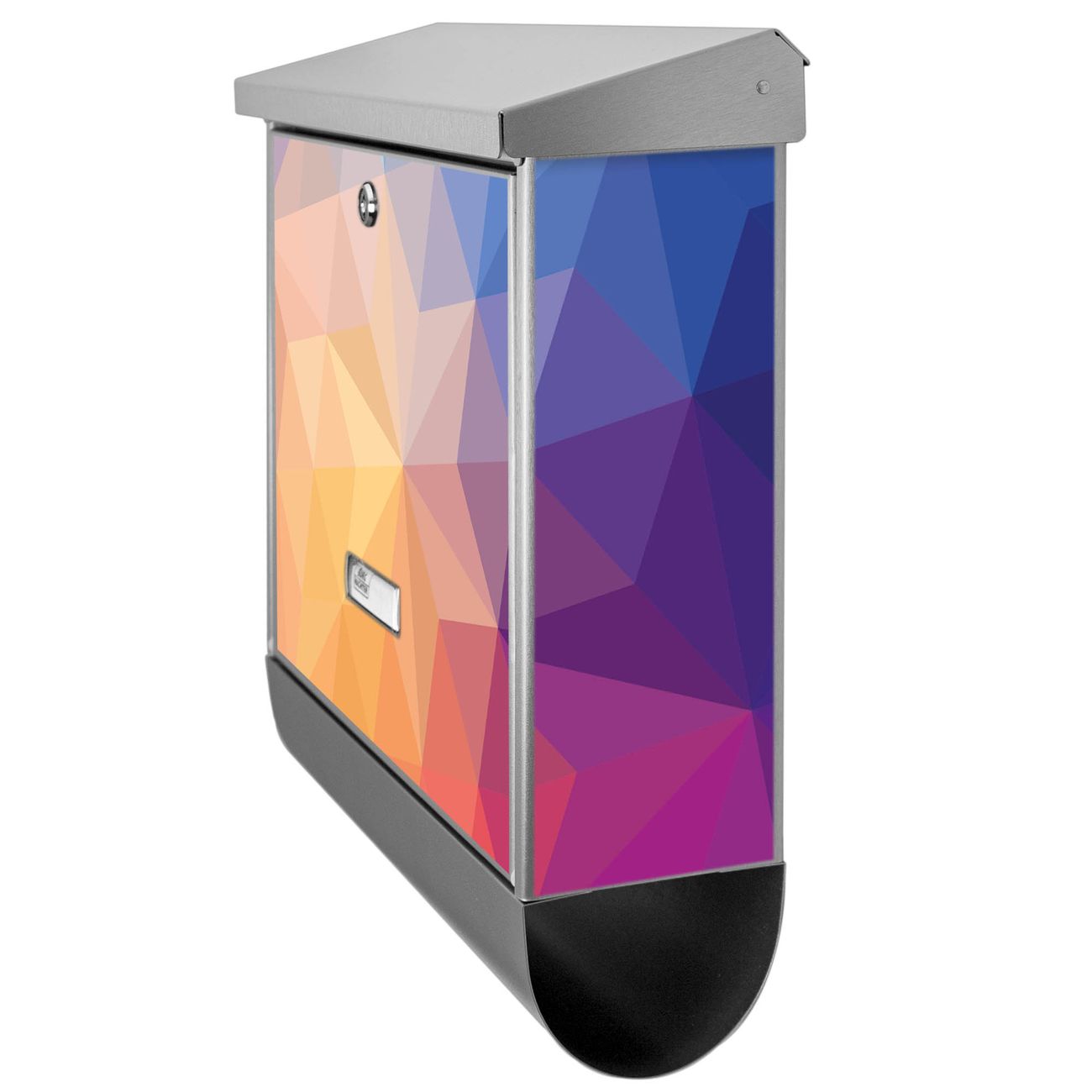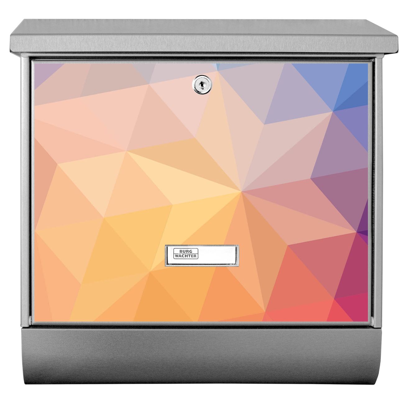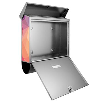 Der BURG-WÄCHTER Edelstahl Briefkasten mit Motiv Bunte Kristalle und Zeitungsrolle bietet Ihnen mit seinem Fassungsvermögen genügend Platz auch für große A4 Sendungen und Zeitschriften. Das integrierte Regendach schützt Ihre Post vor dem Eindringen von Regen.