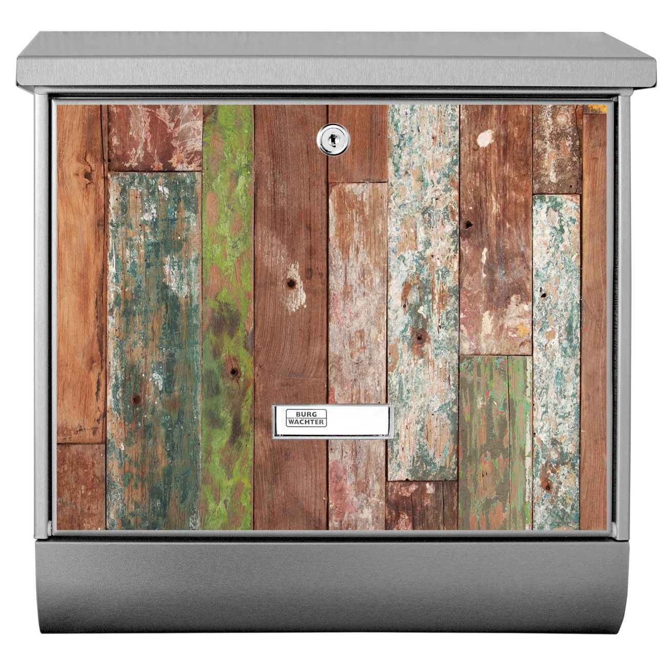 Der BURG-WÄCHTER Edelstahl Briefkasten mit Motiv Buntes Holz und Zeitungsrolle bietet Ihnen mit seinem Fassungsvermögen genügend Platz auch für große A4 Sendungen und Zeitschriften. Das integrierte Regendach schützt Ihre Post vor dem Eindringen von Regen.