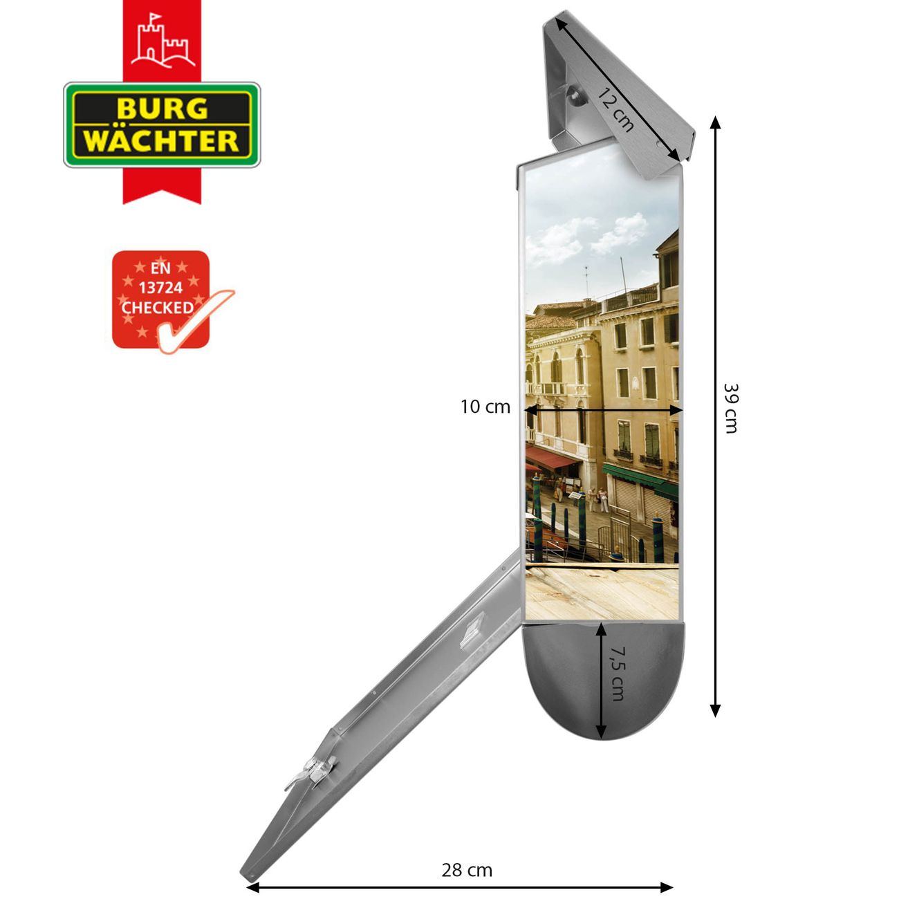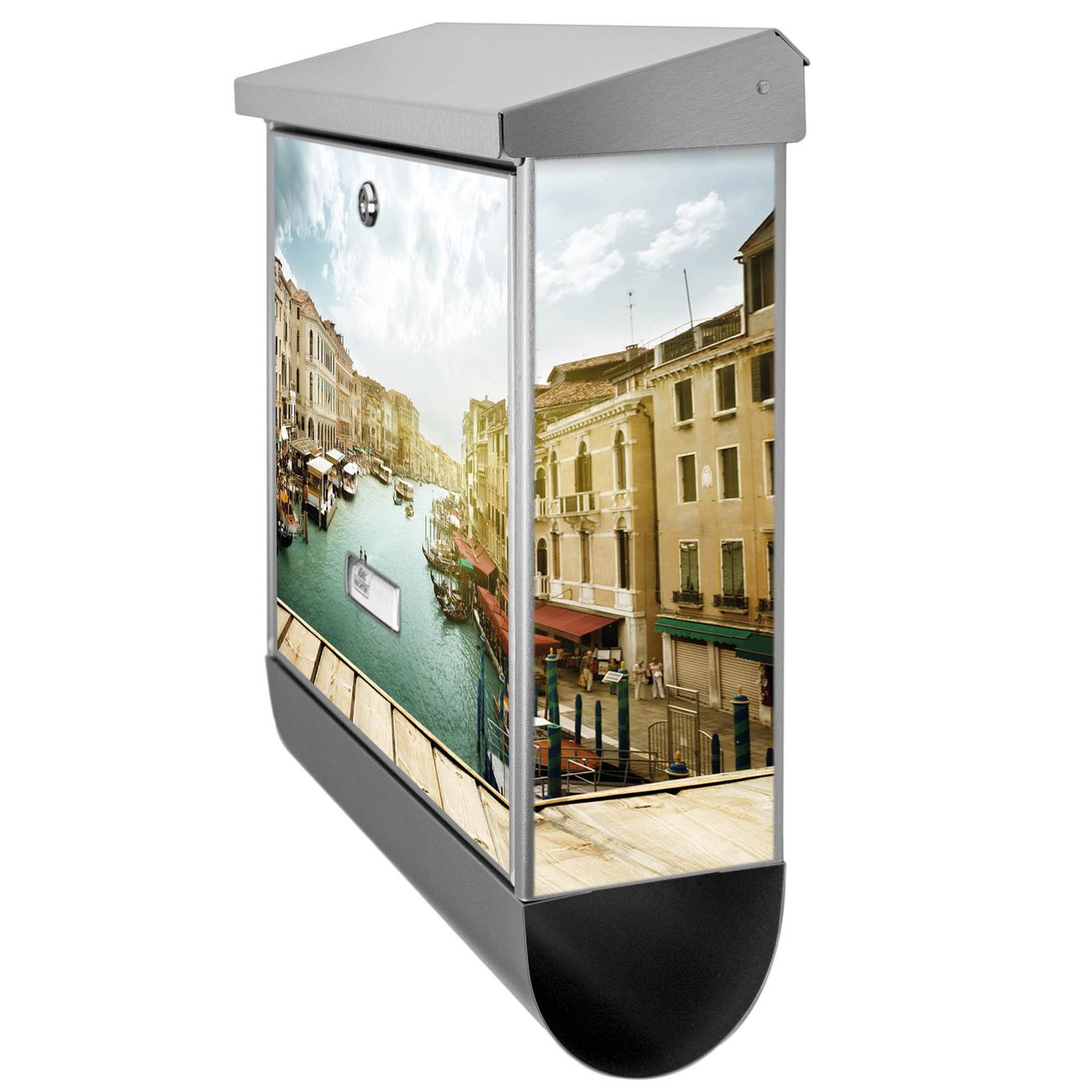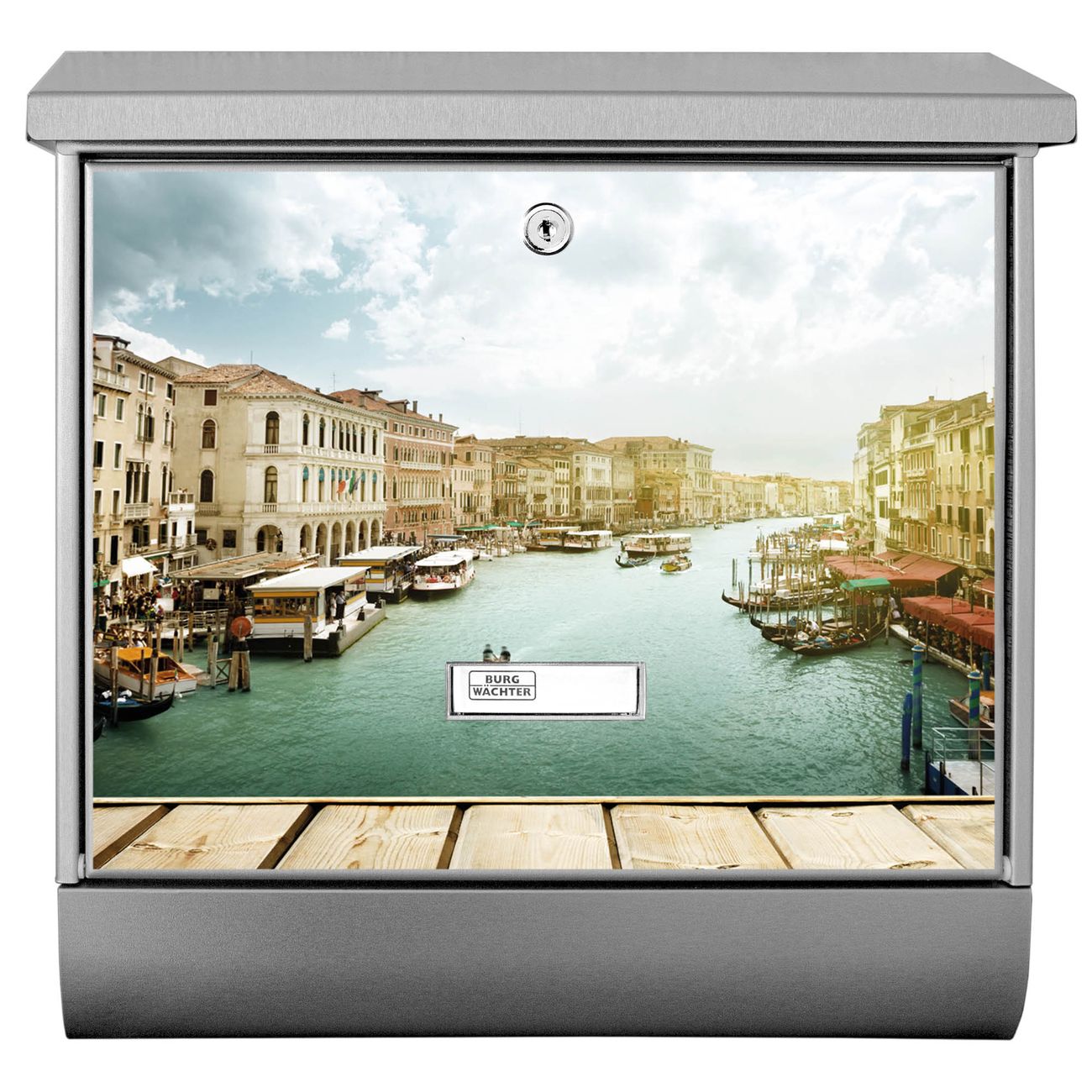 Der BURG-WÄCHTER Edelstahl Briefkasten mit Motiv Canale Grande und Zeitungsrolle bietet Ihnen mit seinem Fassungsvermögen genügend Platz auch für große A4 Sendungen und Zeitschriften. Das integrierte Regendach schützt Ihre Post vor dem Eindringen von Regen.