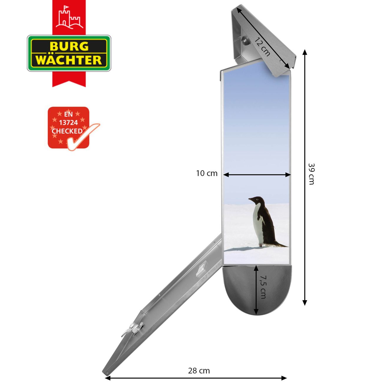 Der BURG-WÄCHTER Edelstahl Briefkasten mit Motiv Catch Up und Zeitungsrolle bietet Ihnen mit seinem Fassungsvermögen genügend Platz auch für große A4 Sendungen und Zeitschriften. Das integrierte Regendach schützt Ihre Post vor dem Eindringen von Regen.