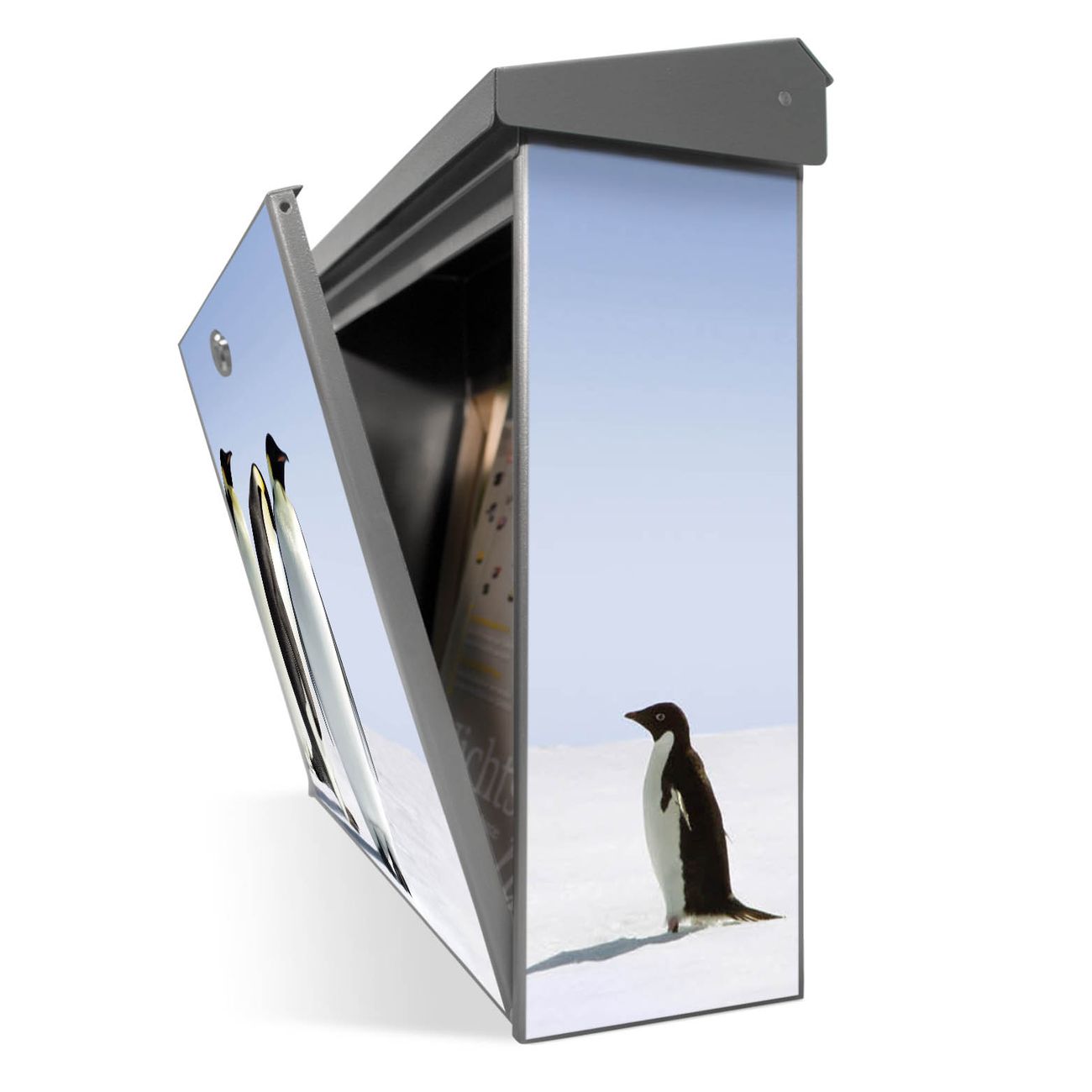 Der Briefkasten besteht aus Edelstahl, einem hochwertigen Material das witterungsbeständig ist. Das Motiv besteht aus einer wetter- und UV-festen Folie, die Ihren Briefkasten zusätzlich vor Kratzern schützt. Der Postkasten ist 31,5cm hoch, 38,5cm breit und 12cm tief. Der Briefeinwurf ist 33,2cm x 2,7cm, Format DIN C4. Der Briefkasten wird mit Montagematerial und zwei Schlüsseln geliefert.