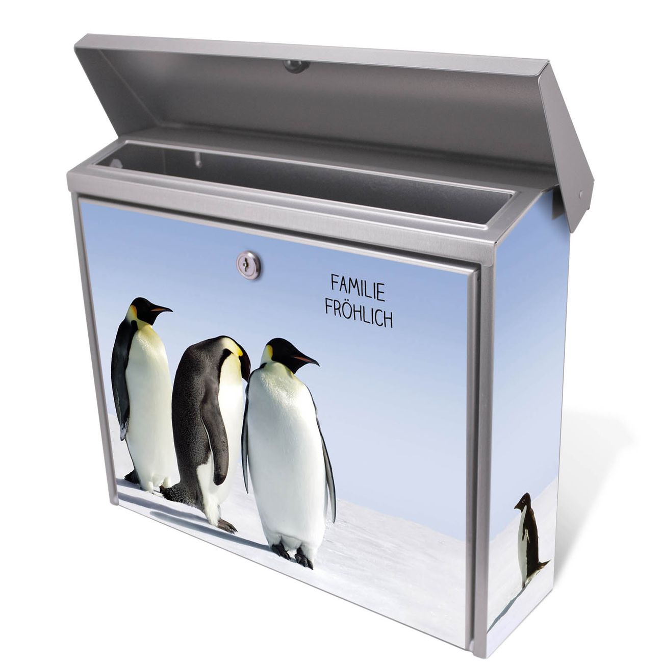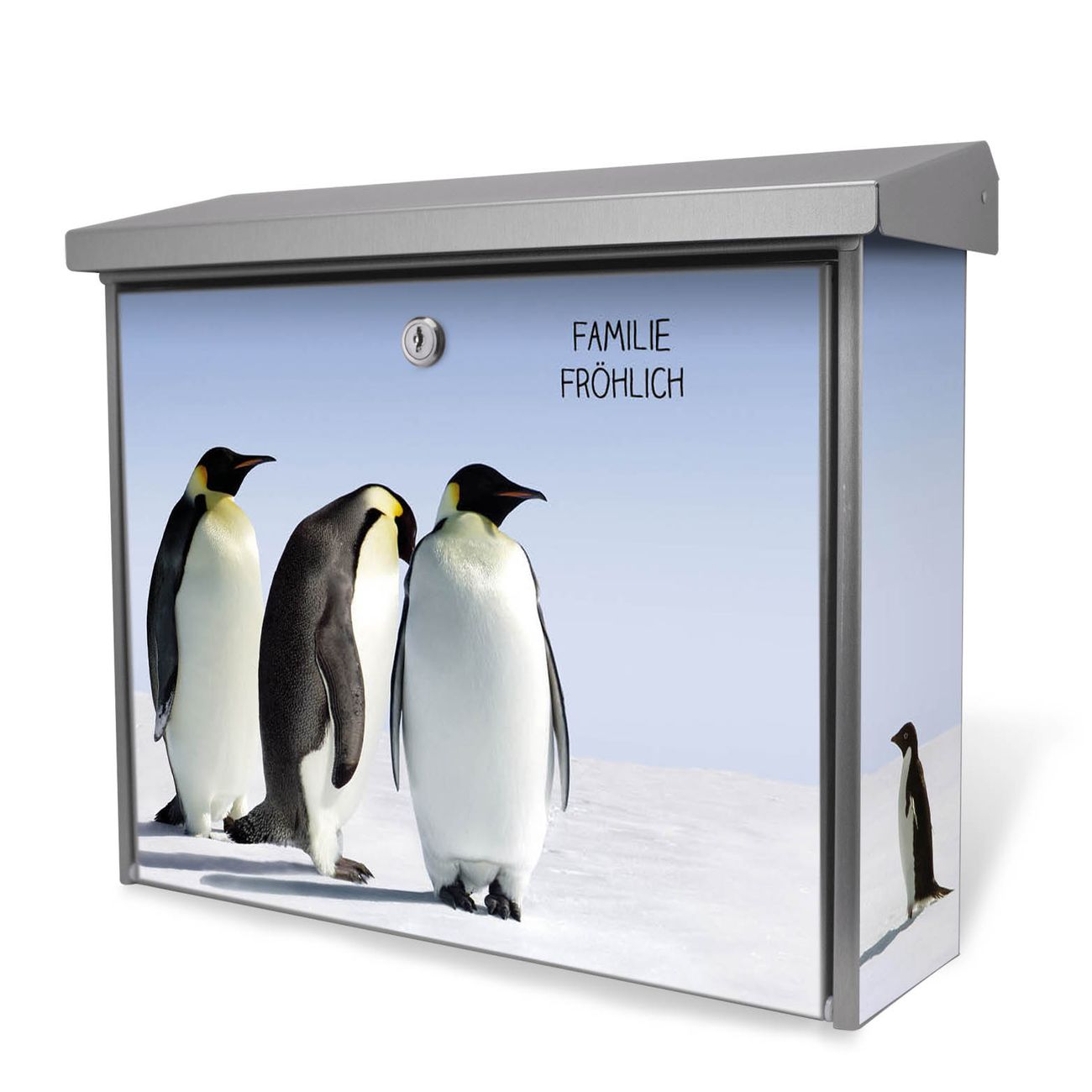 Der Briefkasten besteht aus Edelstahl, einem hochwertigen Material das witterungsbeständig ist. Das Motiv besteht aus einer wetter- und UV-festen Folie, die Ihren Briefkasten zusätzlich vor Kratzern schützt. Der Postkasten ist 31,5cm hoch, 38,5cm breit und 12cm tief. Der Briefeinwurf ist 33,2cm x 2,7cm, Format DIN C4. Der Briefkasten wird mit Montagematerial und zwei Schlüsseln geliefert.