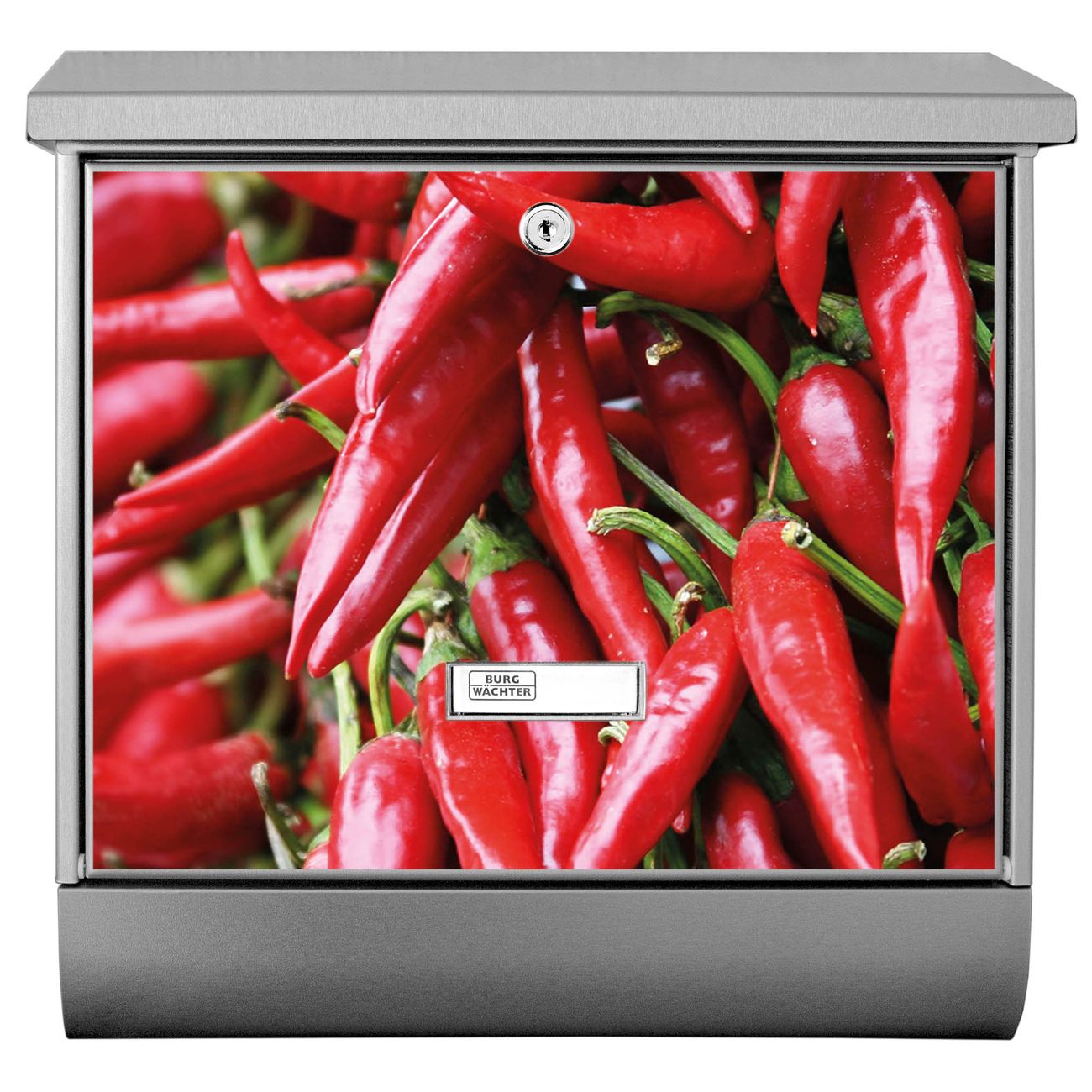 Der Chilli Motivbriefkasten hat ein sehr ansprechendes und zeitloses Design. Unsere Motivpalette hält jede Menge Varianten bereit, ob klassisch, modern, verspielt oder witzig - für jeden haben wir das passende Motiv parat. Der Briefkasten mit Zeitungsfach ist Ihr Aushängeschild, heben Sie Sich ab ohne auf Funktionalität zu verzichten.