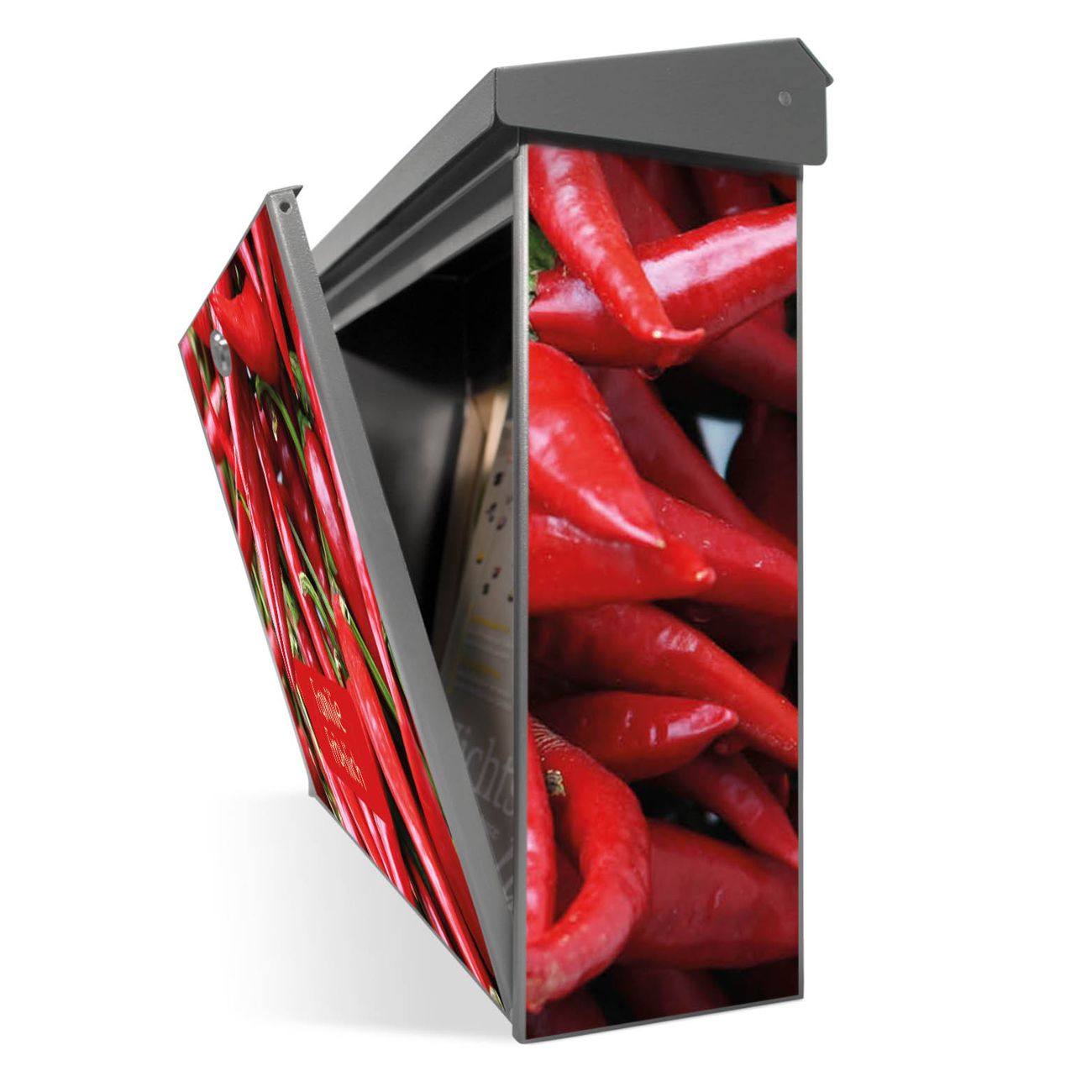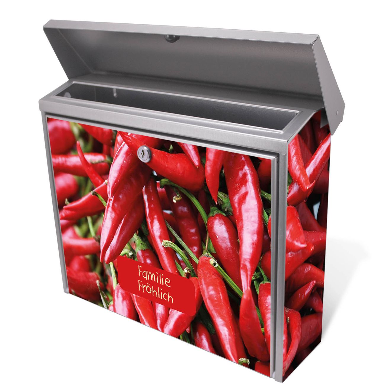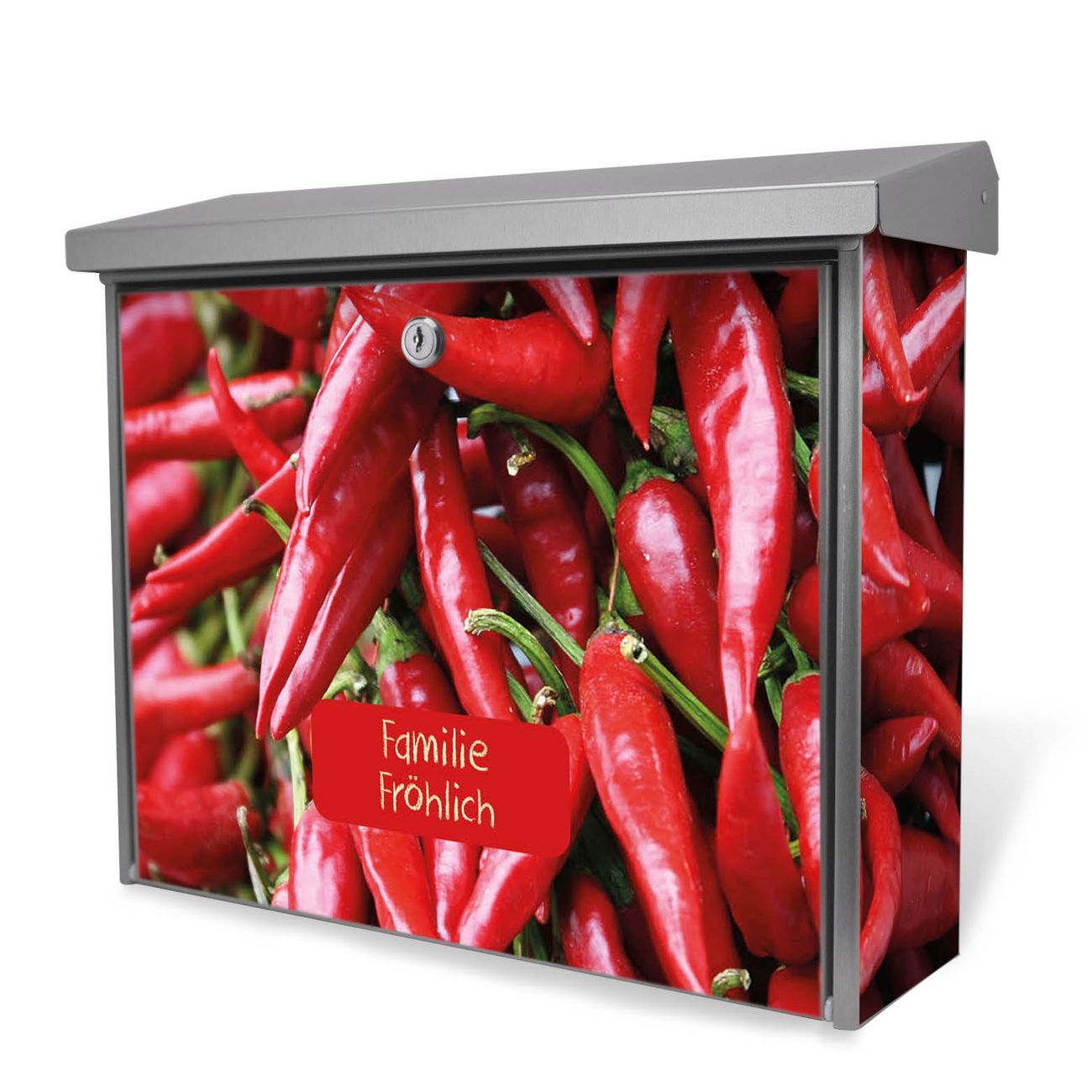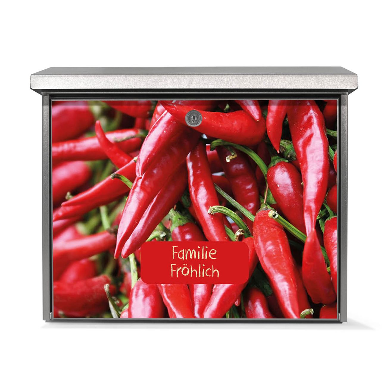 Der Postkasten mit Chilli Motiv hat ein sehr ansprechendes und zeitloses Design. Unsere Motivpalette hält jede Menge Varianten bereit, ob klassisch, modern, verspielt oder witzig - für jeden haben wir das passende Motiv parat. Der Briefkasten ist das Aushängeschild Ihres Hauses.