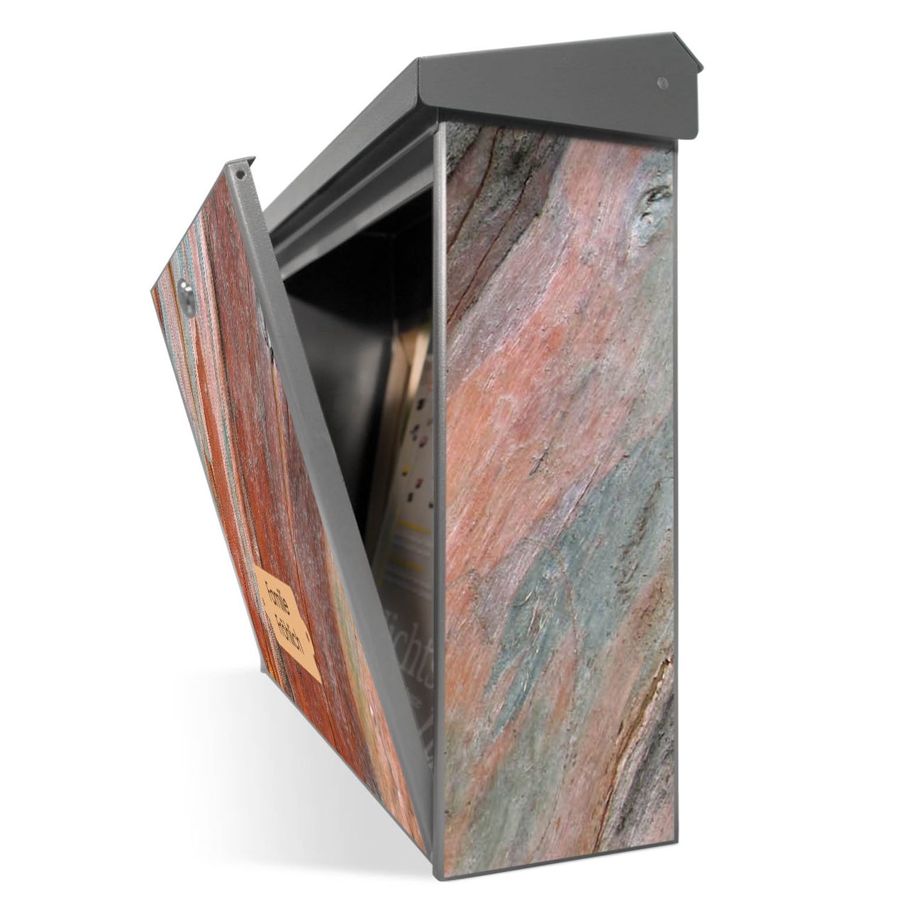 Der Postkasten mit Coloured Wood Motiv hat ein sehr ansprechendes und zeitloses Design. Unsere Motivpalette hält jede Menge Varianten bereit, ob klassisch, modern, verspielt oder witzig - für jeden haben wir das passende Motiv parat. Der Briefkasten ist das Aushängeschild Ihres Hauses.
