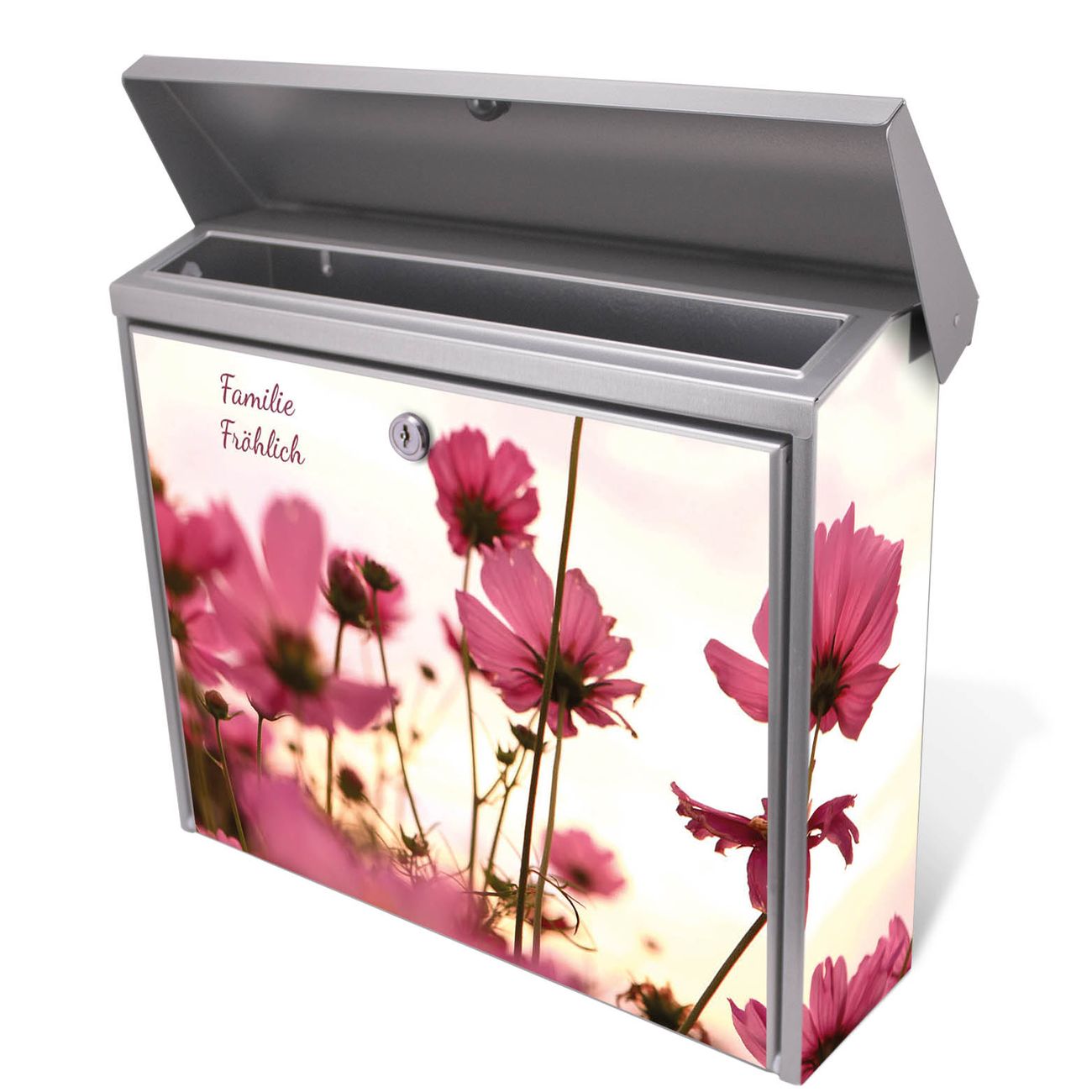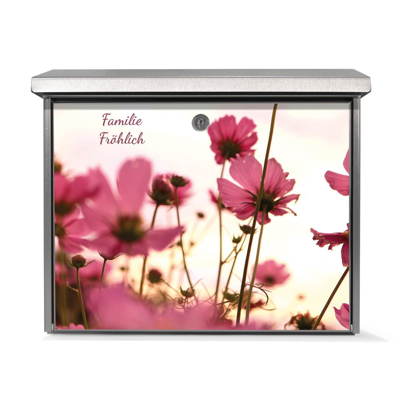 Der Postkasten mit Cosmea Motiv hat ein sehr ansprechendes und zeitloses Design. Unsere Motivpalette hält jede Menge Varianten bereit, ob klassisch, modern, verspielt oder witzig - für jeden haben wir das passende Motiv parat. Der Briefkasten ist das Aushängeschild Ihres Hauses.