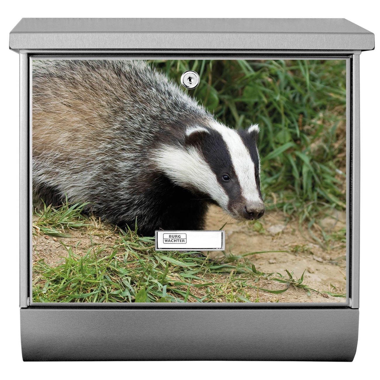 Der BURG-WÄCHTER Edelstahl Briefkasten mit Motiv Dachs und Zeitungsrolle bietet Ihnen mit seinem Fassungsvermögen genügend Platz auch für große A4 Sendungen und Zeitschriften. Das integrierte Regendach schützt Ihre Post vor dem Eindringen von Regen.