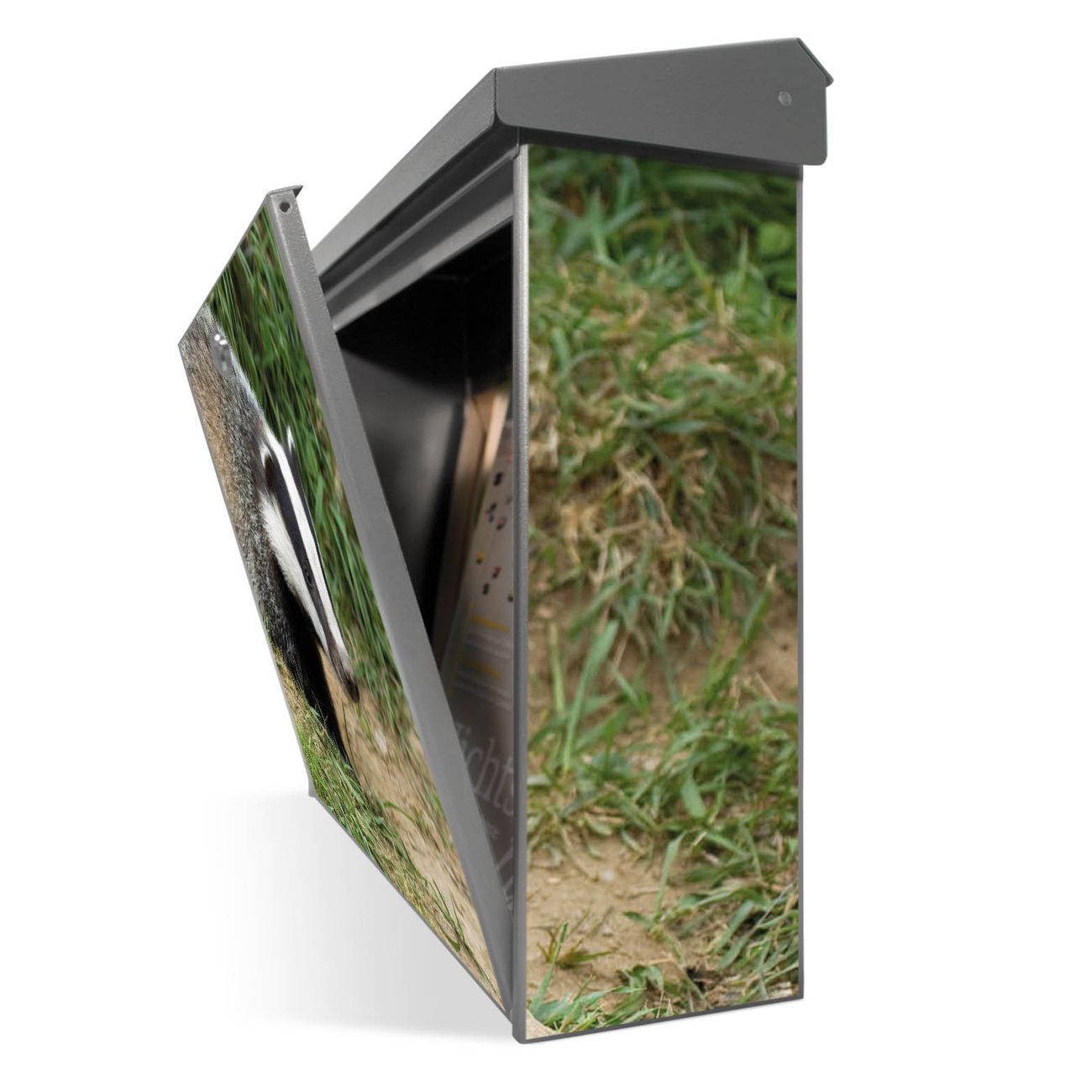 Der Postkasten mit Dachs Motiv hat ein sehr ansprechendes und zeitloses Design. Unsere Motivpalette hält jede Menge Varianten bereit, ob klassisch, modern, verspielt oder witzig - für jeden haben wir das passende Motiv parat. Der Briefkasten ist das Aushängeschild Ihres Hauses.