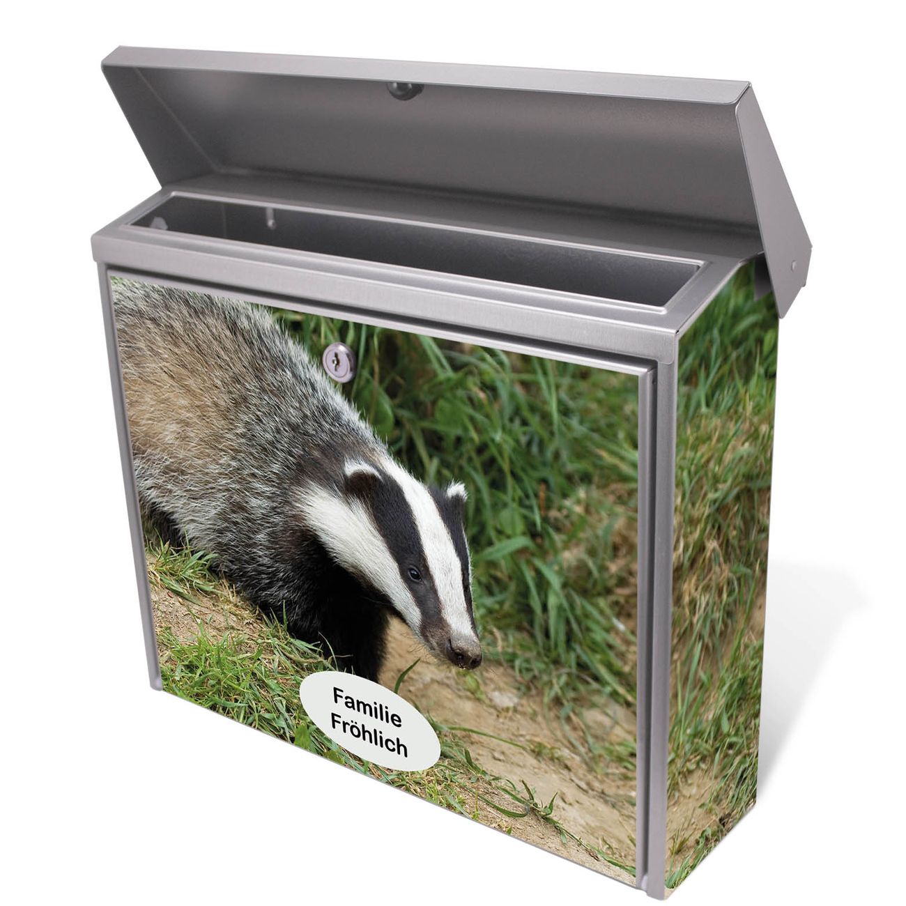 Der Postkasten mit Dachs Motiv hat ein sehr ansprechendes und zeitloses Design. Unsere Motivpalette hält jede Menge Varianten bereit, ob klassisch, modern, verspielt oder witzig - für jeden haben wir das passende Motiv parat. Der Briefkasten ist das Aushängeschild Ihres Hauses.