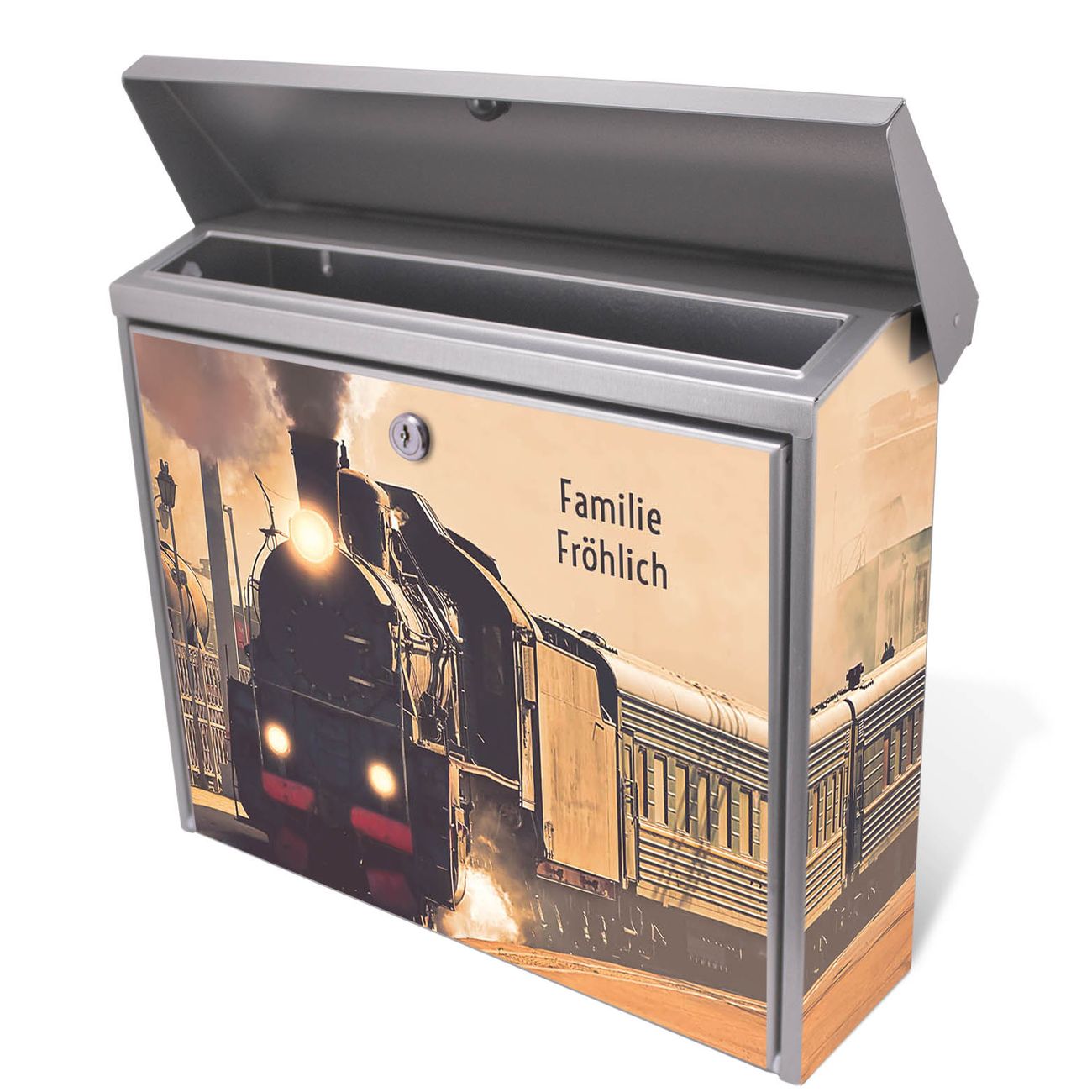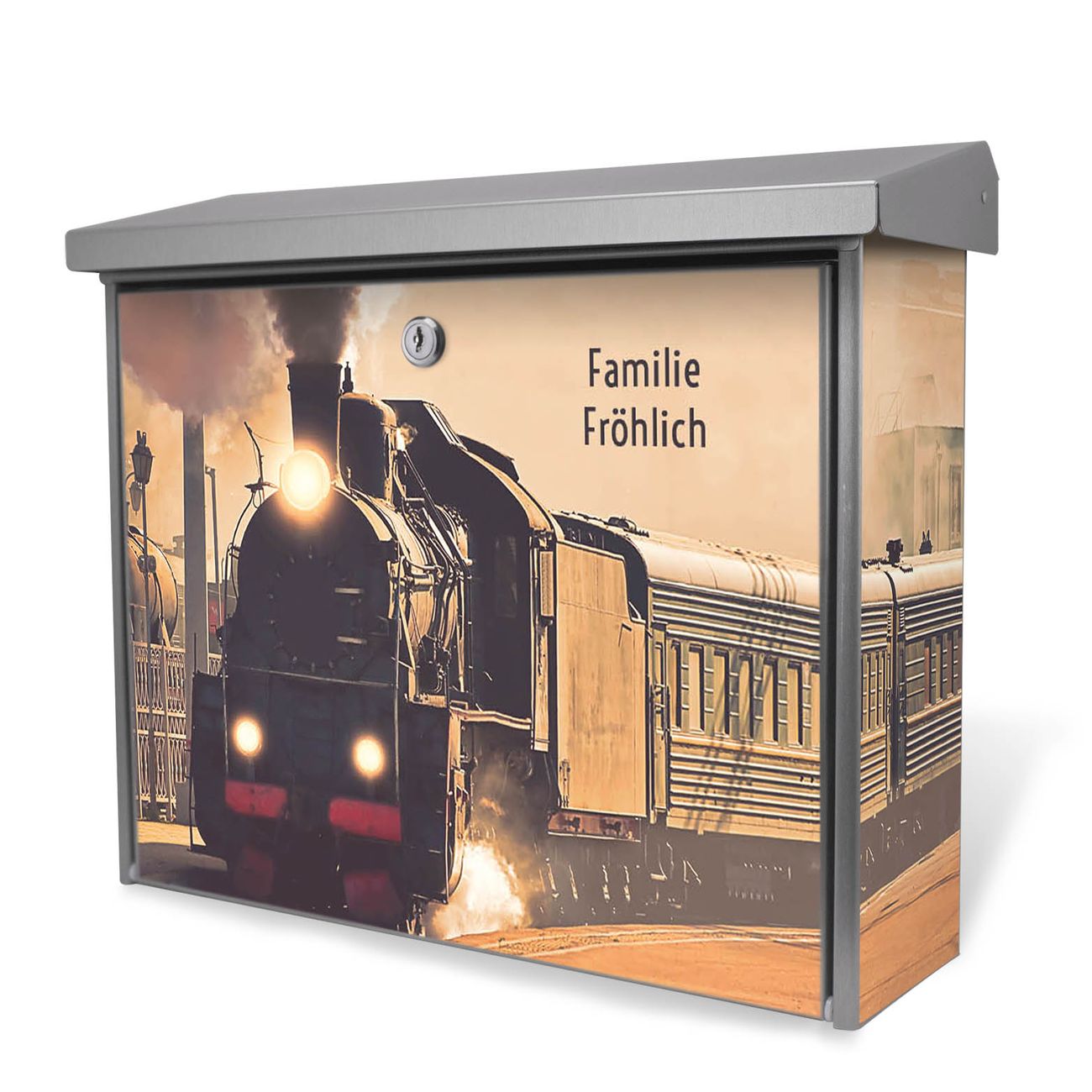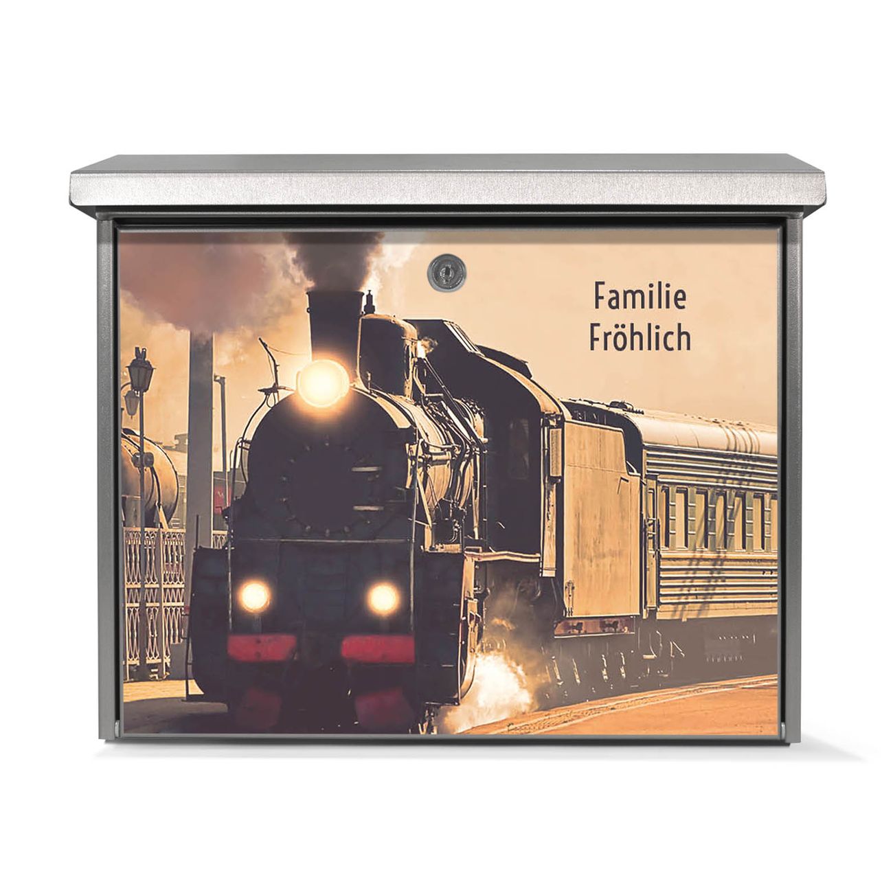 Der Postkasten mit Einfahrender Zug Motiv hat ein sehr ansprechendes und zeitloses Design. Unsere Motivpalette hält jede Menge Varianten bereit, ob klassisch, modern, verspielt oder witzig - für jeden haben wir das passende Motiv parat. Der Briefkasten ist das Aushängeschild Ihres Hauses.