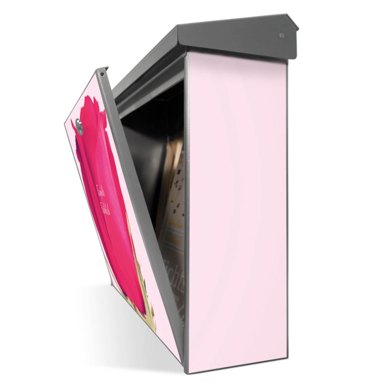 Der Postkasten mit Einzelne Rose Motiv hat ein sehr ansprechendes und zeitloses Design. Unsere Motivpalette hält jede Menge Varianten bereit, ob klassisch, modern, verspielt oder witzig - für jeden haben wir das passende Motiv parat. Der Briefkasten ist das Aushängeschild Ihres Hauses.
