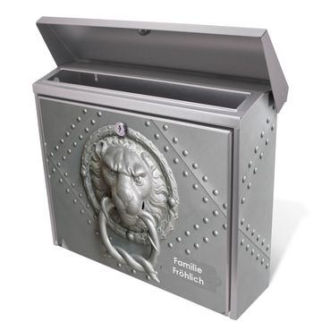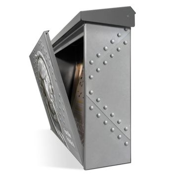 Der Briefkasten besteht aus Edelstahl, einem hochwertigen Material das witterungsbeständig ist. Das Motiv besteht aus einer wetter- und UV-festen Folie, die Ihren Briefkasten zusätzlich vor Kratzern schützt. Der Postkasten ist 31,5cm hoch, 38,5cm breit und 12cm tief. Der Briefeinwurf ist 33,2cm x 2,7cm, Format DIN C4. Der Briefkasten wird mit Montagematerial und zwei Schlüsseln geliefert.