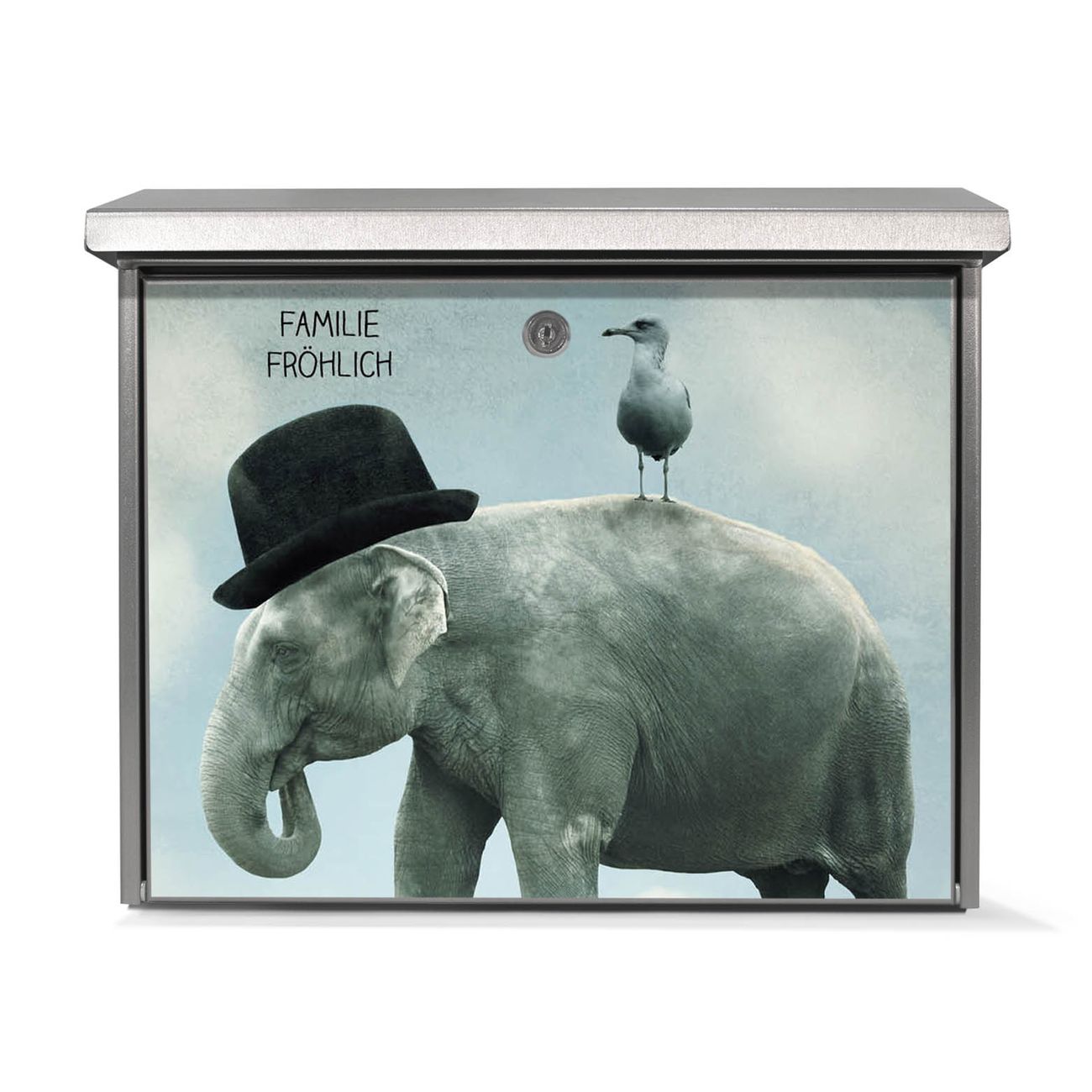 Der Postkasten mit Elefant und Möwe Motiv hat ein sehr ansprechendes und zeitloses Design. Unsere Motivpalette hält jede Menge Varianten bereit, ob klassisch, modern, verspielt oder witzig - für jeden haben wir das passende Motiv parat. Der Briefkasten ist das Aushängeschild Ihres Hauses.