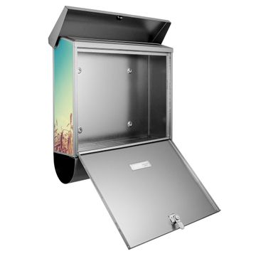 Der Briefkasten besteht aus Edelstahl, einem hochwertigen Material das rostfrei und äußerst unempfindlich gegenüber Witterungseinflüssen ist. Das Motiv besteht aus einer wetter- und UV-festen Folie, die Ihren Briefkasten zusätzlich vor Kratzern schützt. Der Postkasten ist je nach Auswahl 38 x 39 x 12 CM oder 38 x 31,5 x 12 cm (BxHxT) groß. Der Briefeinwurf ist 33,2cm x 3,1cm, Format DIN C4. Der Briefkasten wird mit Montagematerial und zwei Schlüsseln geliefert.