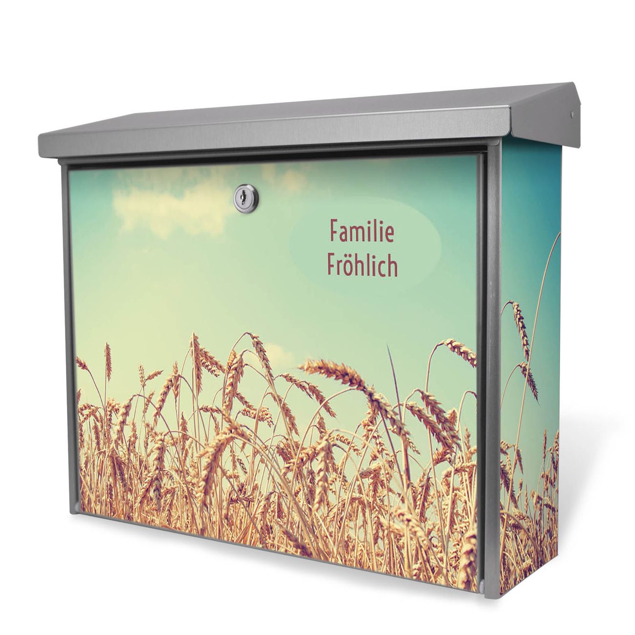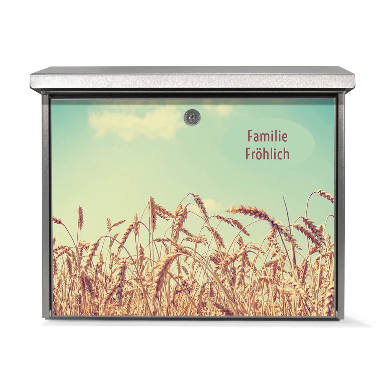 Der Postkasten mit Erntezeit Motiv hat ein sehr ansprechendes und zeitloses Design. Unsere Motivpalette hält jede Menge Varianten bereit, ob klassisch, modern, verspielt oder witzig - für jeden haben wir das passende Motiv parat. Der Briefkasten ist das Aushängeschild Ihres Hauses.