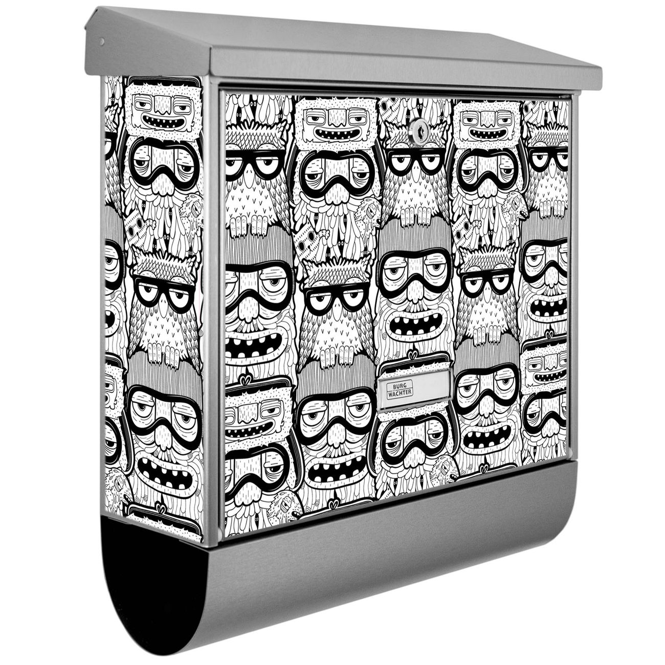 Der Briefkasten besteht aus Edelstahl, einem hochwertigen Material das rostfrei und äußerst unempfindlich gegenüber Witterungseinflüssen ist. Das Motiv besteht aus einer wetter- und UV-festen Folie, die Ihren Briefkasten zusätzlich vor Kratzern schützt. Der Postkasten ist je nach Auswahl 38 x 39 x 12 CM oder 38 x 31,5 x 12 cm (BxHxT) groß. Der Briefeinwurf ist 33,2cm x 3,1cm, Format DIN C4. Der Briefkasten wird mit Montagematerial und zwei Schlüsseln geliefert.