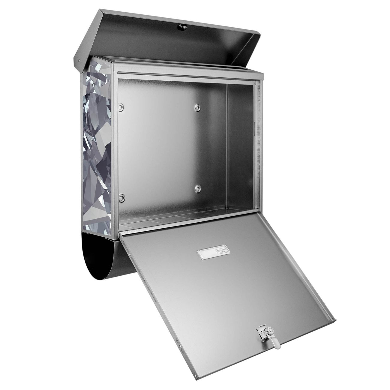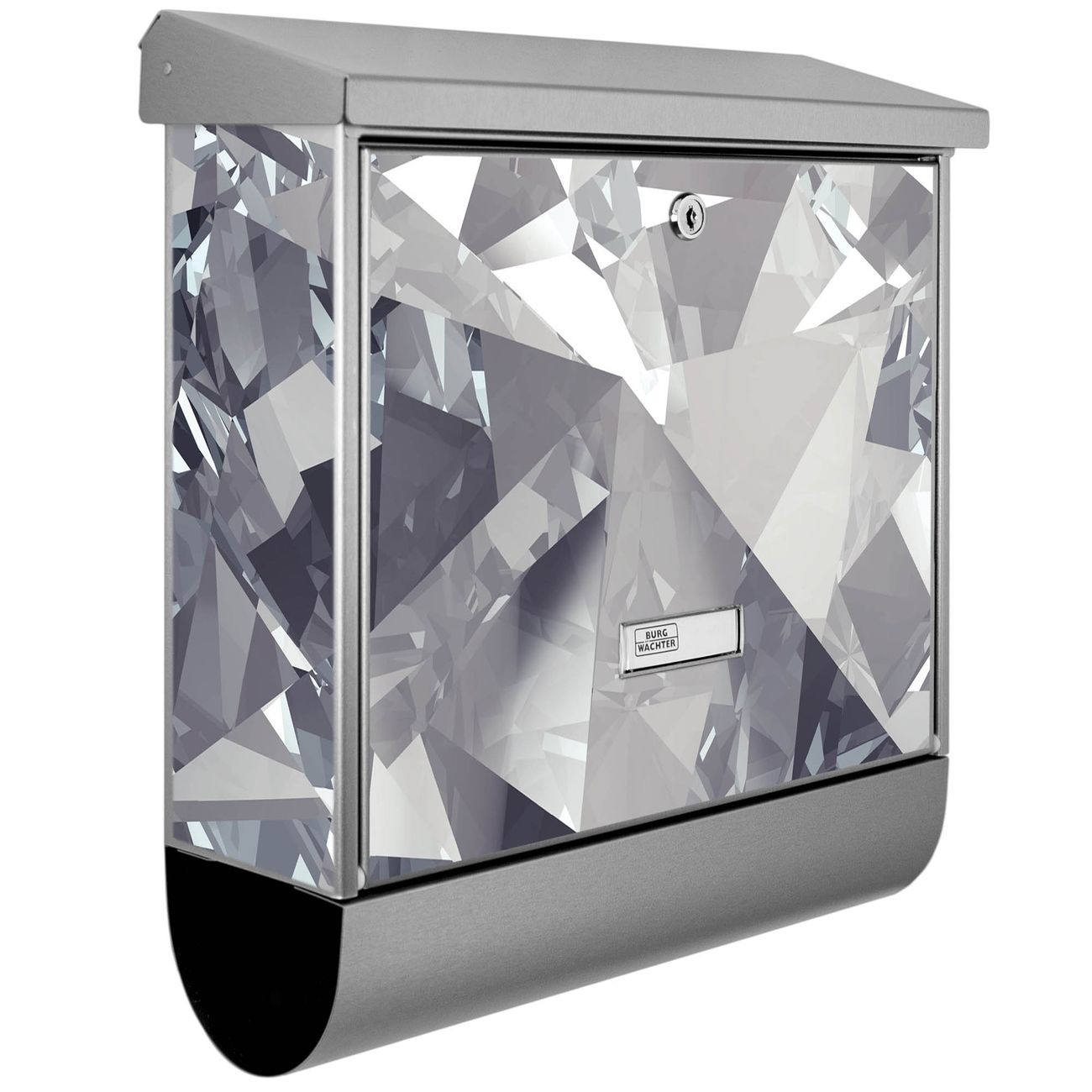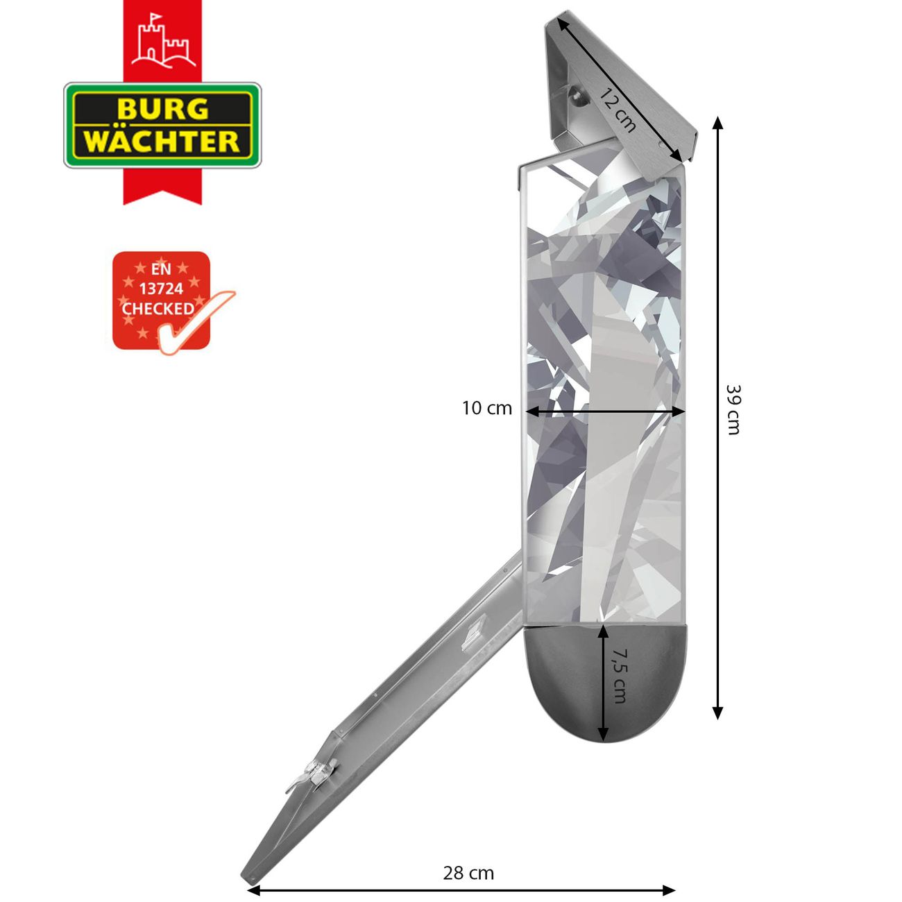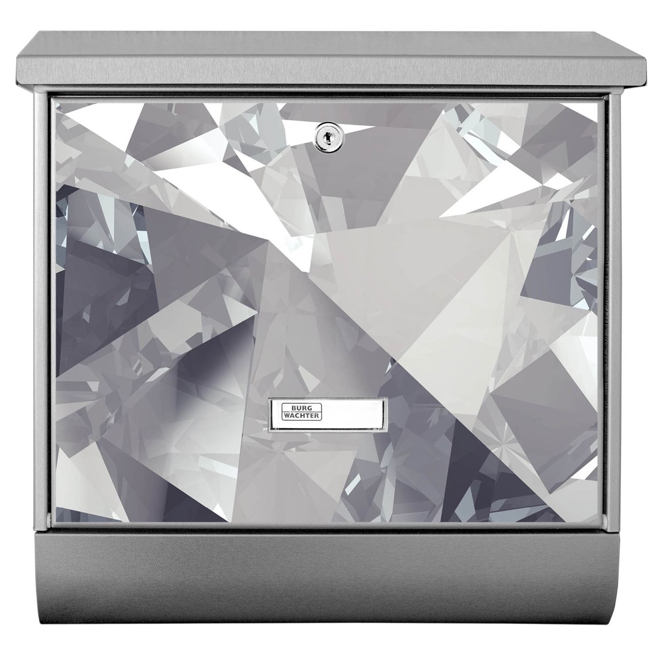 Der BURG-WÄCHTER Edelstahl Briefkasten mit Motiv Facetten Monochrome und Zeitungsrolle bietet Ihnen mit seinem Fassungsvermögen genügend Platz auch für große A4 Sendungen und Zeitschriften. Das integrierte Regendach schützt Ihre Post vor dem Eindringen von Regen.