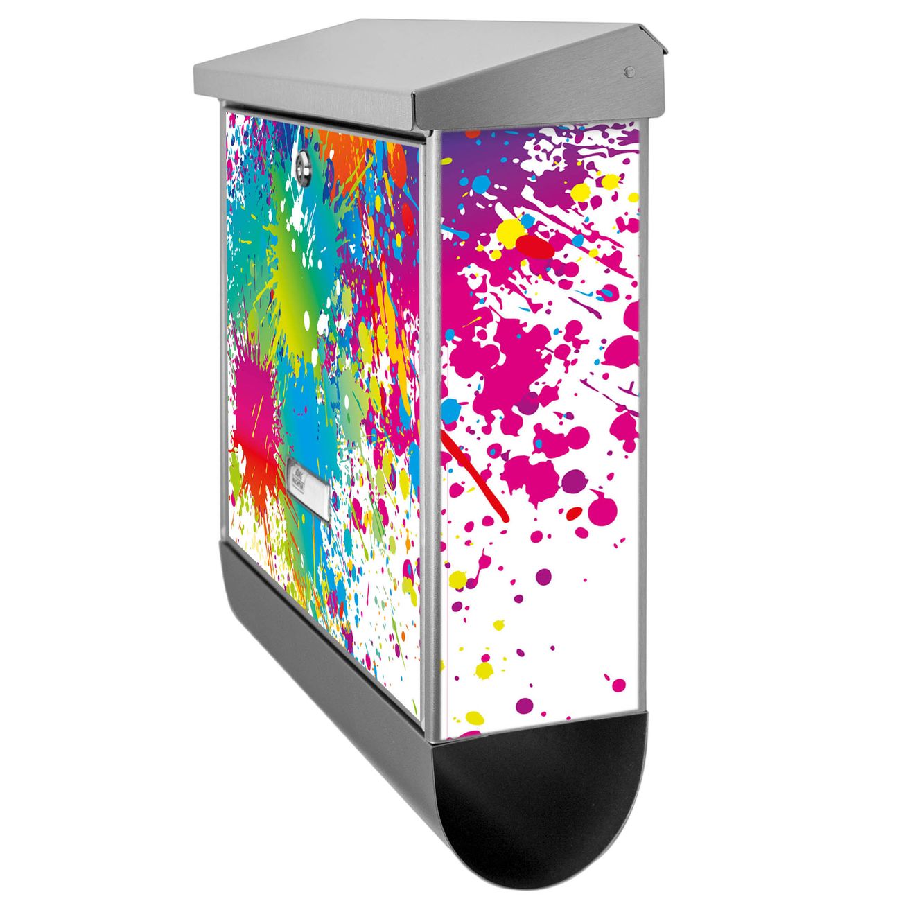 Der Farbspritzer Motivbriefkasten hat ein sehr ansprechendes und zeitloses Design. Unsere Motivpalette hält jede Menge Varianten bereit, ob klassisch, modern, verspielt oder witzig - für jeden haben wir das passende Motiv parat. Der Briefkasten mit Zeitungsfach ist Ihr Aushängeschild, heben Sie Sich ab ohne auf Funktionalität zu verzichten.