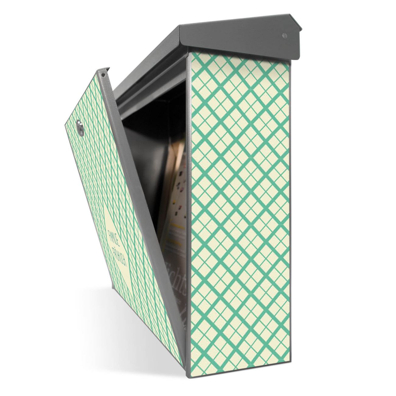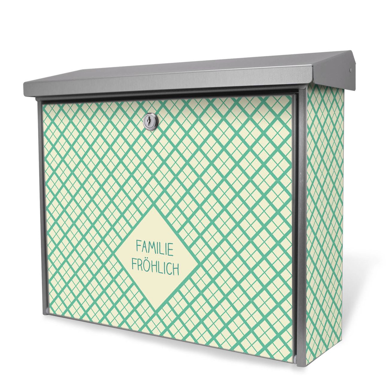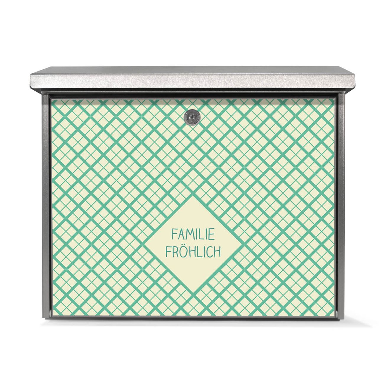 Der Postkasten mit Feines Rautenmuster Motiv hat ein sehr ansprechendes und zeitloses Design. Unsere Motivpalette hält jede Menge Varianten bereit, ob klassisch, modern, verspielt oder witzig - für jeden haben wir das passende Motiv parat. Der Briefkasten ist das Aushängeschild Ihres Hauses.