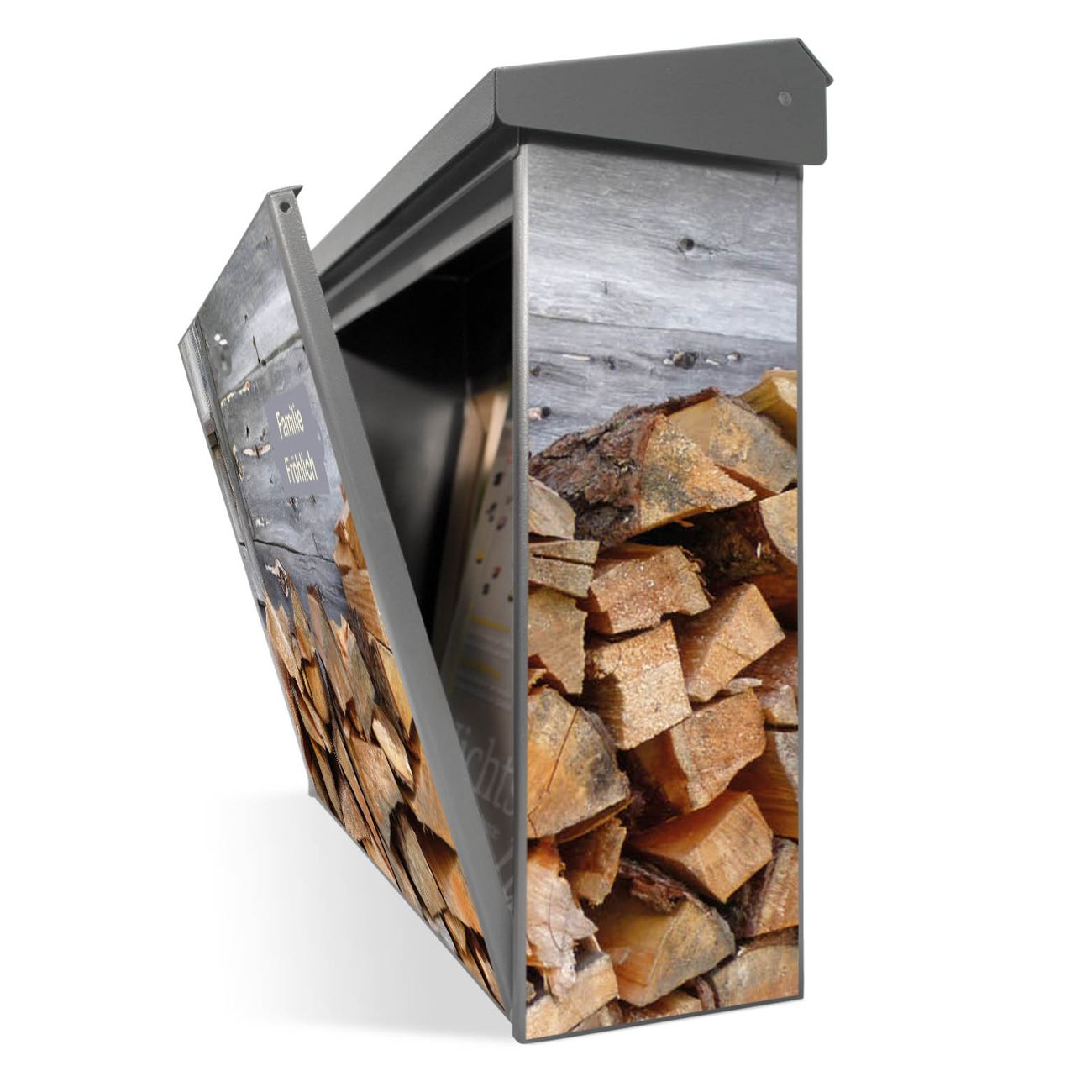 Der Postkasten mit Feuerholz Motiv hat ein sehr ansprechendes und zeitloses Design. Unsere Motivpalette hält jede Menge Varianten bereit, ob klassisch, modern, verspielt oder witzig - für jeden haben wir das passende Motiv parat. Der Briefkasten ist das Aushängeschild Ihres Hauses.