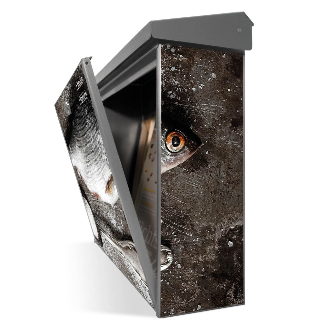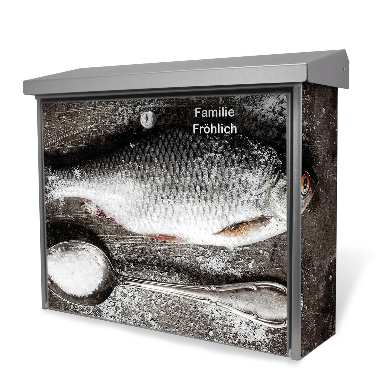 Der Postkasten mit Fisch Und Salz Motiv hat ein sehr ansprechendes und zeitloses Design. Unsere Motivpalette hält jede Menge Varianten bereit, ob klassisch, modern, verspielt oder witzig - für jeden haben wir das passende Motiv parat. Der Briefkasten ist das Aushängeschild Ihres Hauses.