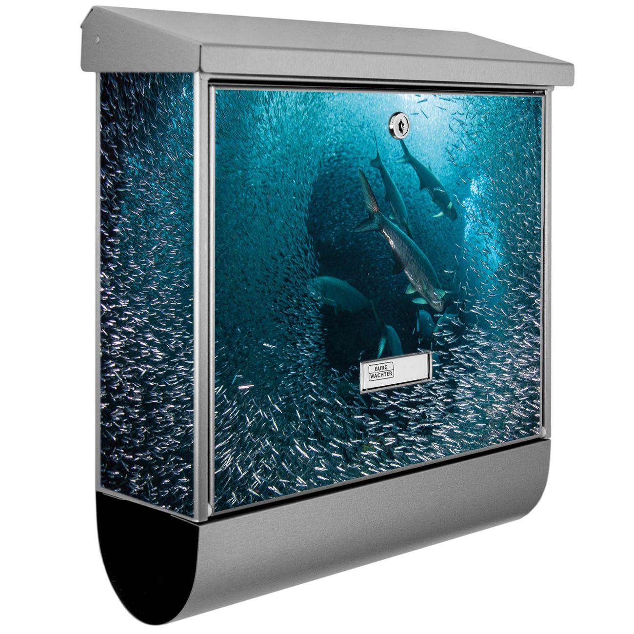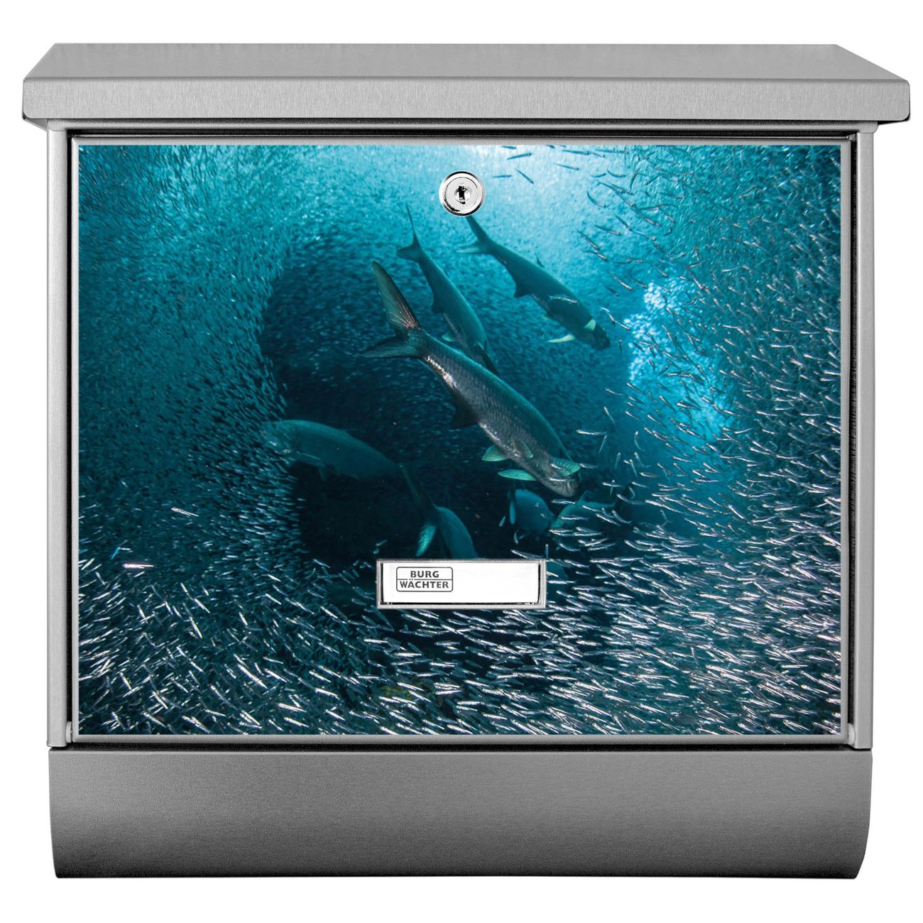 Der Fische im Meer Motivbriefkasten hat ein sehr ansprechendes und zeitloses Design. Unsere Motivpalette hält jede Menge Varianten bereit, ob klassisch, modern, verspielt oder witzig - für jeden haben wir das passende Motiv parat. Der Briefkasten mit Zeitungsfach ist Ihr Aushängeschild, heben Sie Sich ab ohne auf Funktionalität zu verzichten.