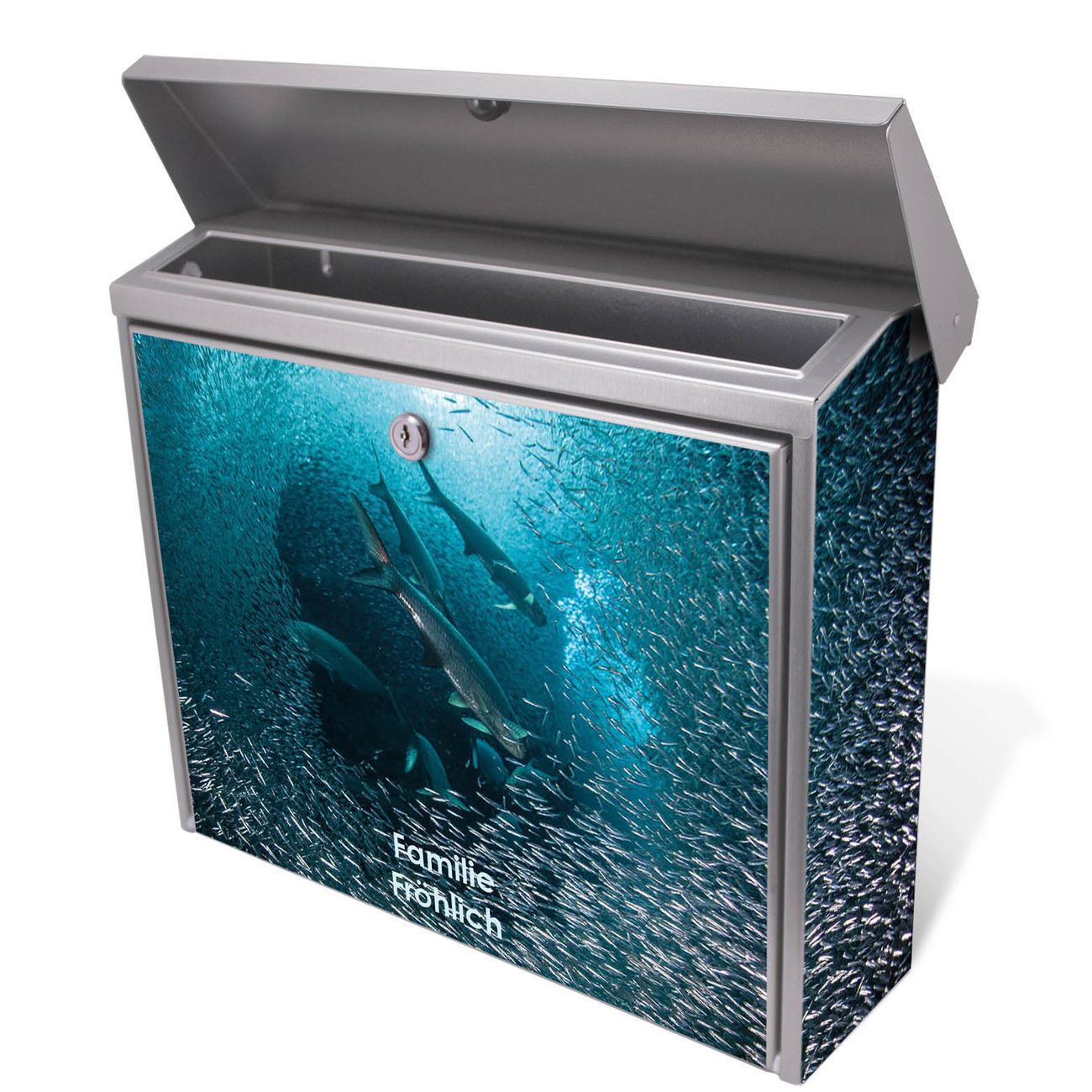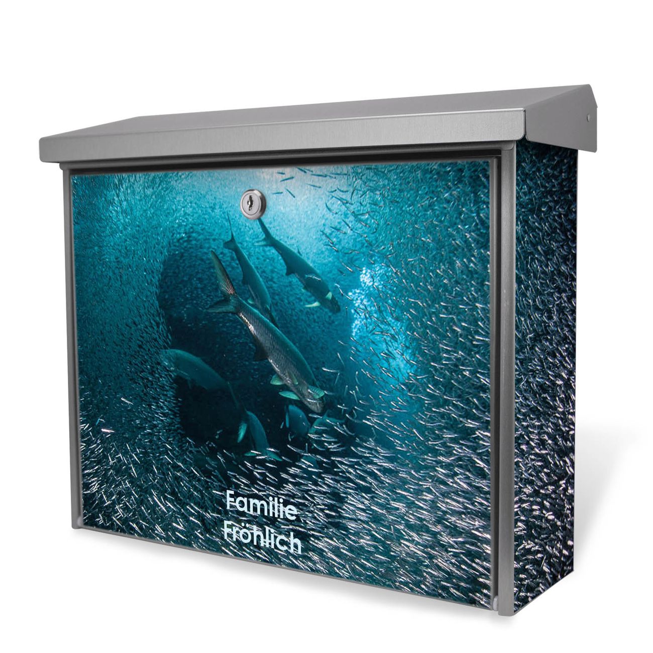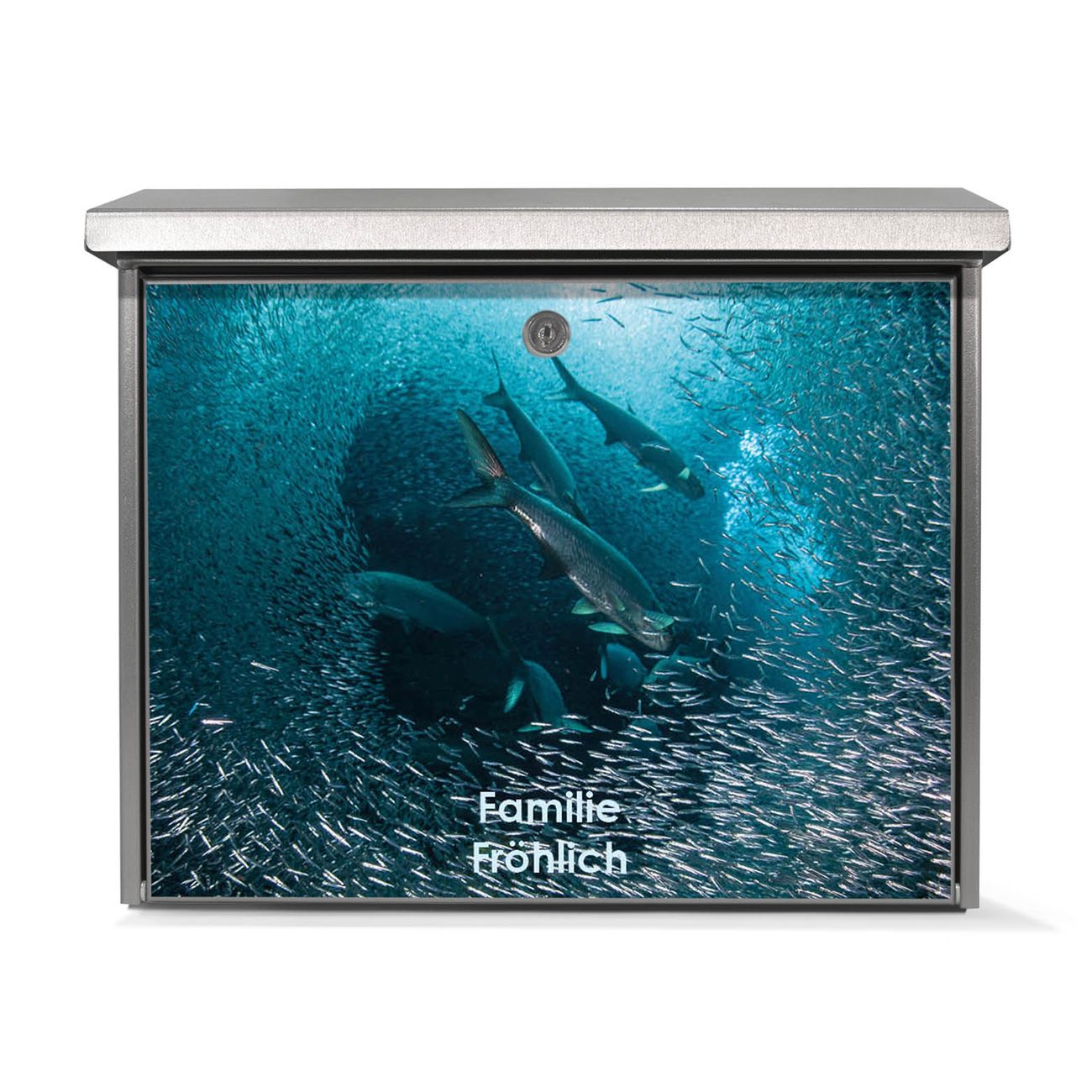 Der Postkasten mit Fische im Meer Motiv hat ein sehr ansprechendes und zeitloses Design. Unsere Motivpalette hält jede Menge Varianten bereit, ob klassisch, modern, verspielt oder witzig - für jeden haben wir das passende Motiv parat. Der Briefkasten ist das Aushängeschild Ihres Hauses.