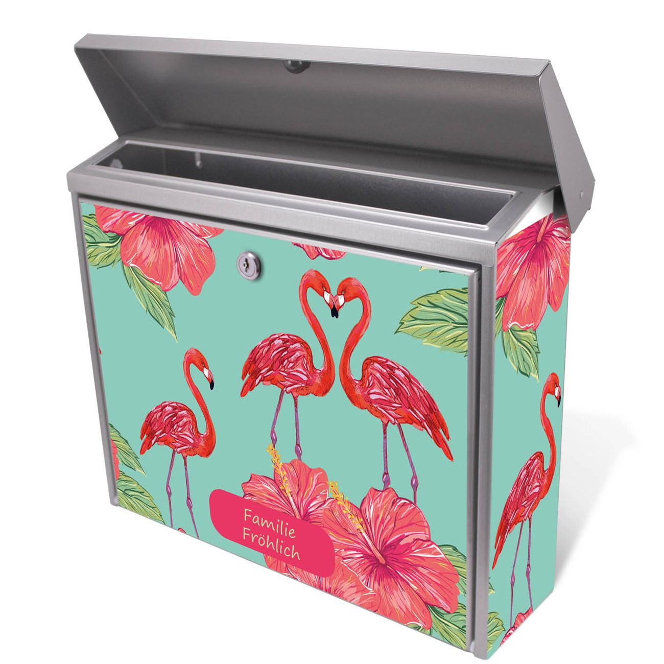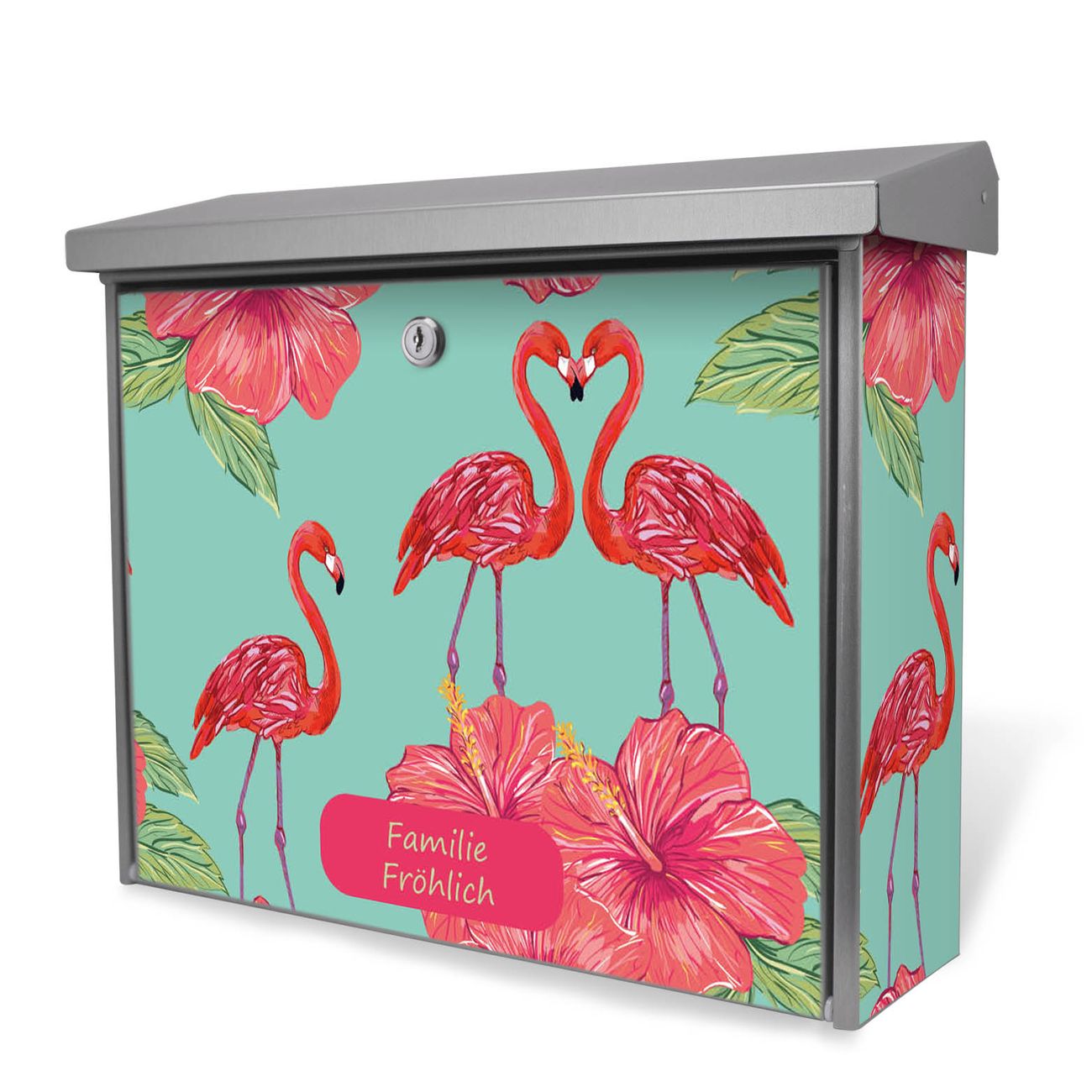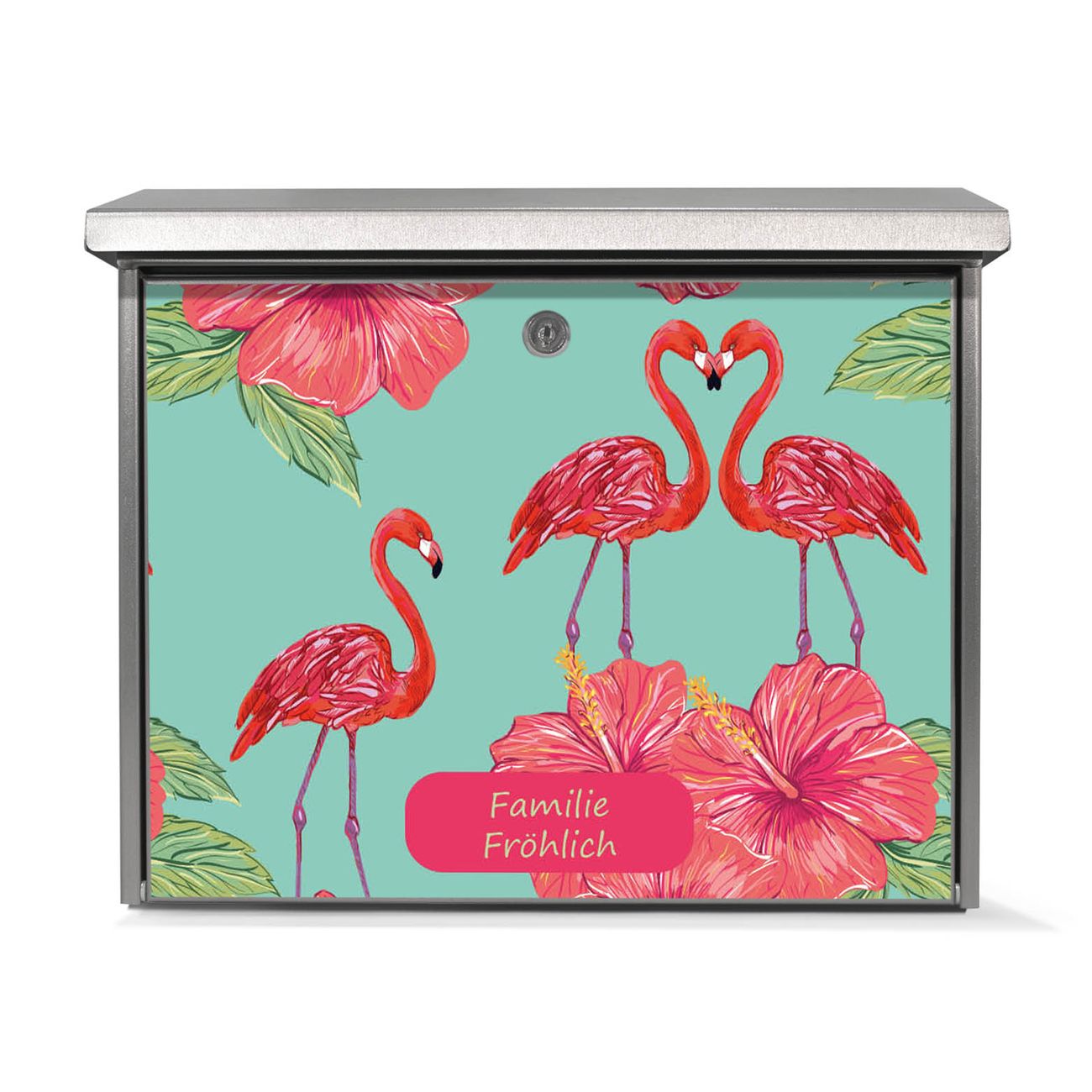 Der Postkasten mit Flamingo Liebe Motiv hat ein sehr ansprechendes und zeitloses Design. Unsere Motivpalette hält jede Menge Varianten bereit, ob klassisch, modern, verspielt oder witzig - für jeden haben wir das passende Motiv parat. Der Briefkasten ist das Aushängeschild Ihres Hauses.