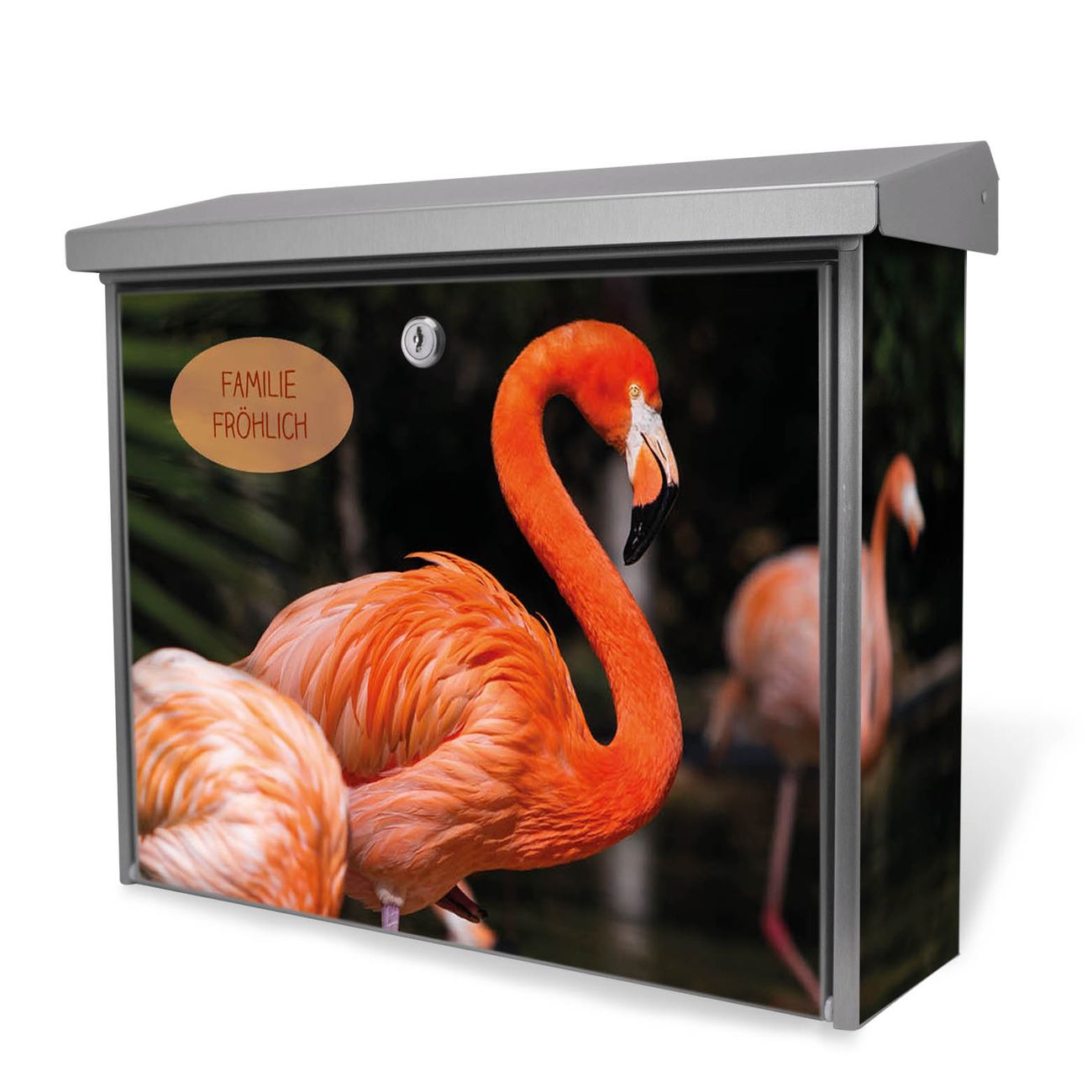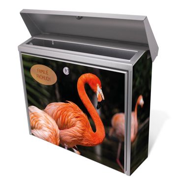 Der Postkasten mit Flamingo Motiv hat ein sehr ansprechendes und zeitloses Design. Unsere Motivpalette hält jede Menge Varianten bereit, ob klassisch, modern, verspielt oder witzig - für jeden haben wir das passende Motiv parat. Der Briefkasten ist das Aushängeschild Ihres Hauses.