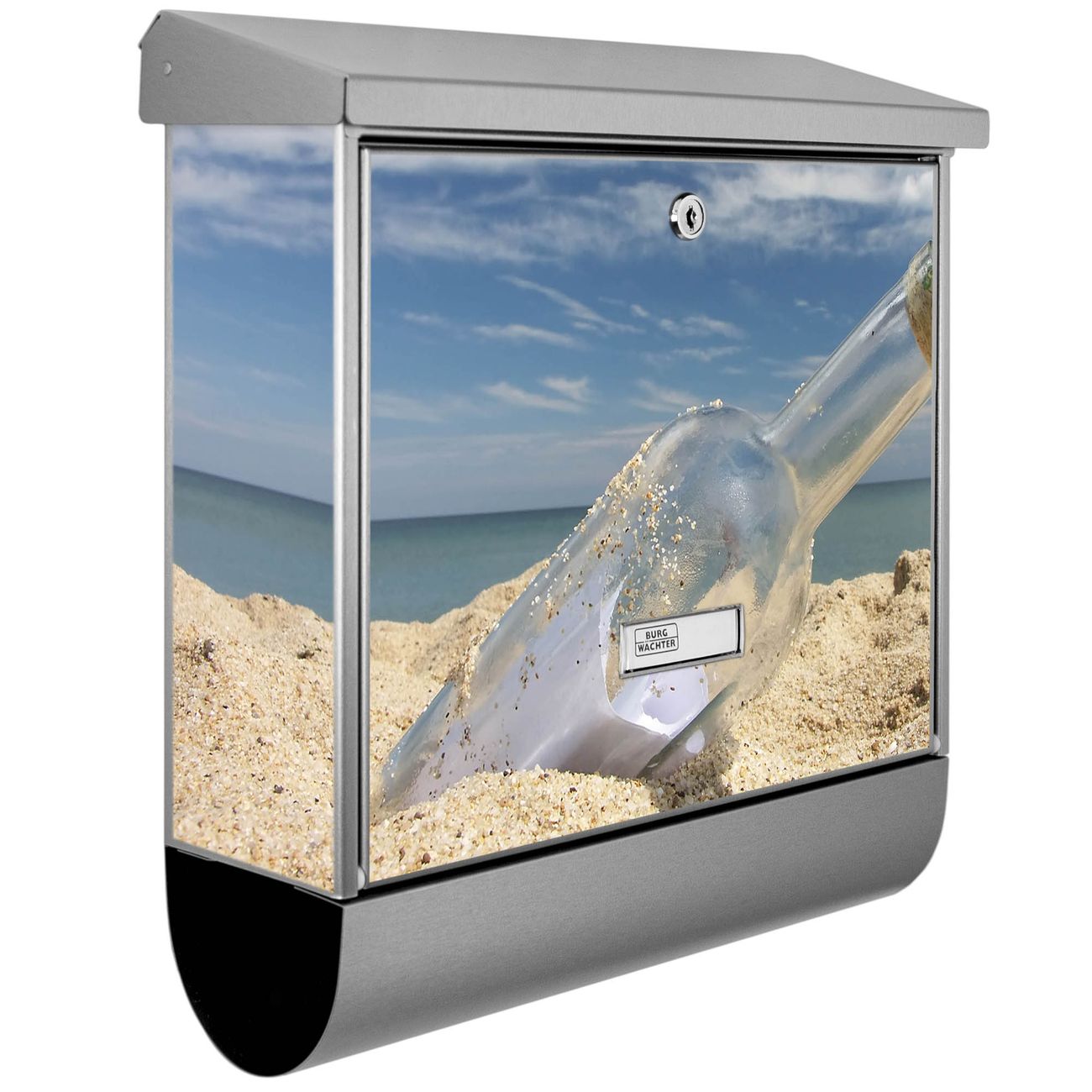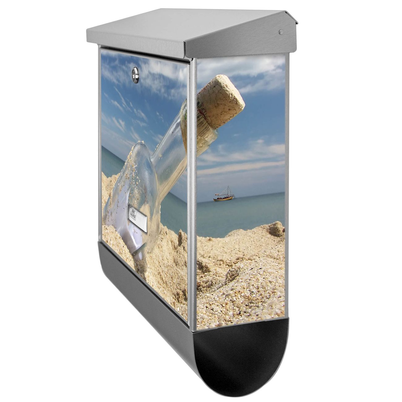 Der Flaschenpost Motivbriefkasten hat ein sehr ansprechendes und zeitloses Design. Unsere Motivpalette hält jede Menge Varianten bereit, ob klassisch, modern, verspielt oder witzig - für jeden haben wir das passende Motiv parat. Der Briefkasten mit Zeitungsfach ist Ihr Aushängeschild, heben Sie Sich ab ohne auf Funktionalität zu verzichten.