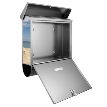 Der Briefkasten besteht aus Edelstahl, einem hochwertigen Material das rostfrei und äußerst unempfindlich gegenüber Witterungseinflüssen ist. Das Motiv besteht aus einer wetter- und UV-festen Folie, die Ihren Briefkasten zusätzlich vor Kratzern schützt. Der Postkasten ist je nach Auswahl 38 x 39 x 12 CM oder 38 x 31,5 x 12 cm (BxHxT) groß. Der Briefeinwurf ist 33,2cm x 3,1cm, Format DIN C4. Der Briefkasten wird mit Montagematerial und zwei Schlüsseln geliefert.
