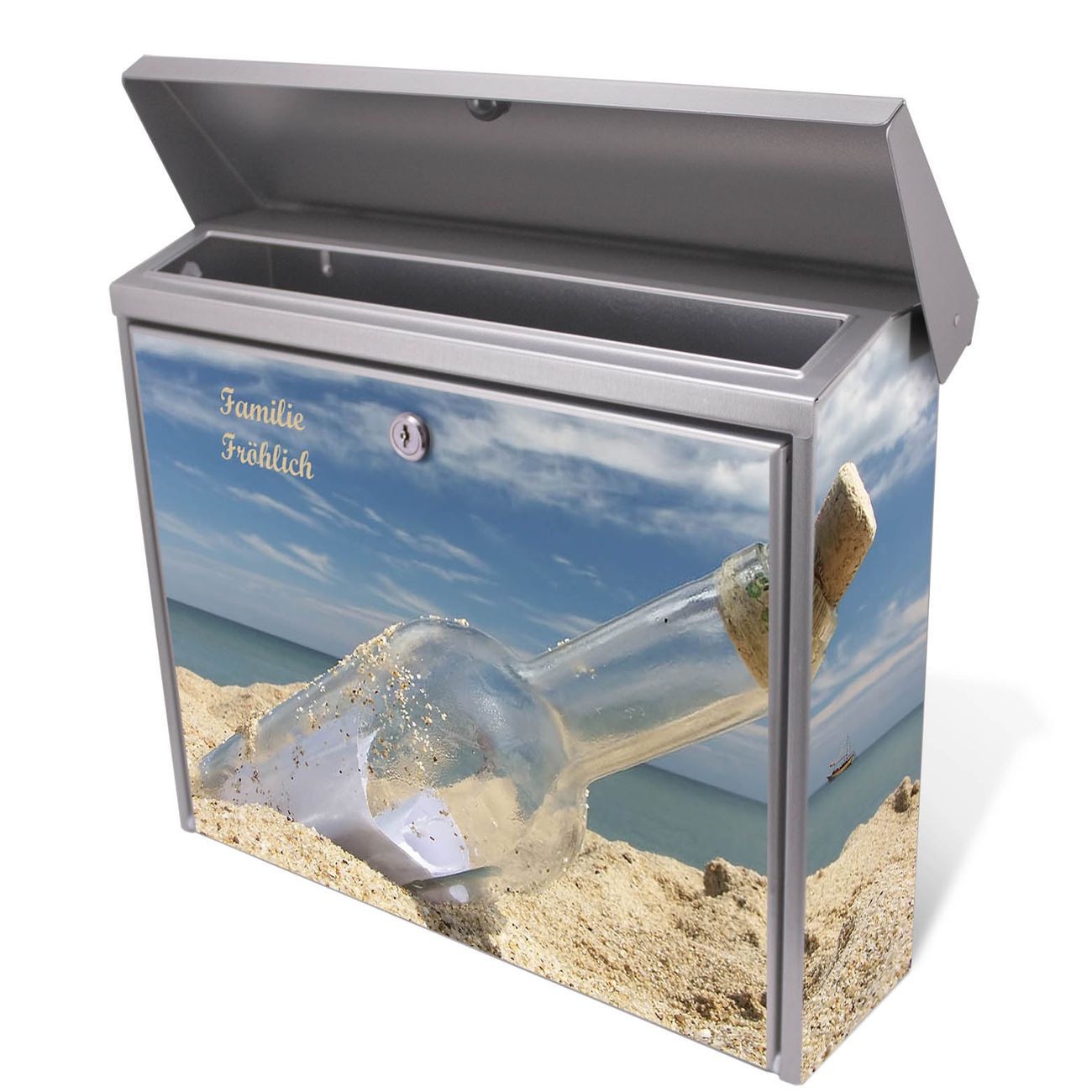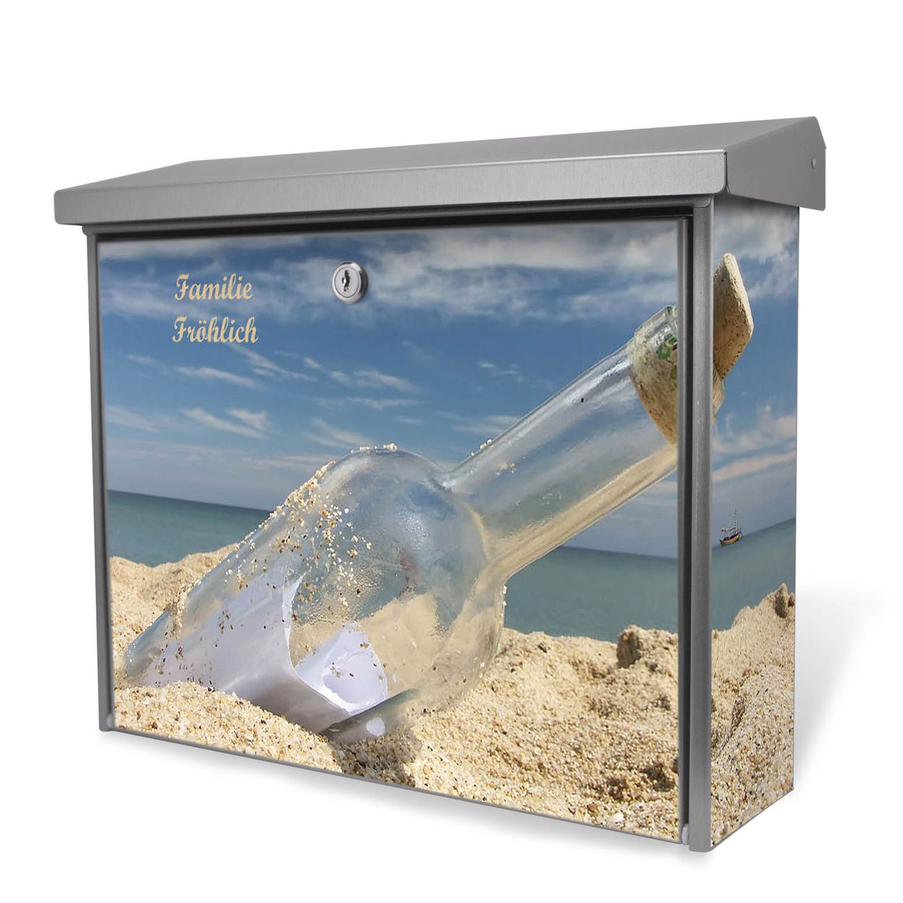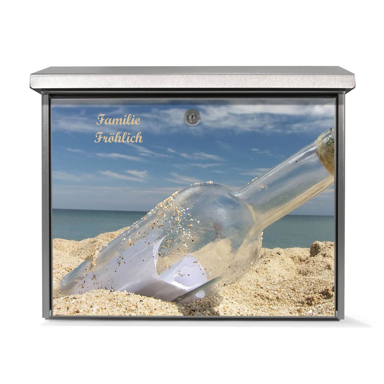 Der Postkasten mit Flaschenpost Motiv hat ein sehr ansprechendes und zeitloses Design. Unsere Motivpalette hält jede Menge Varianten bereit, ob klassisch, modern, verspielt oder witzig - für jeden haben wir das passende Motiv parat. Der Briefkasten ist das Aushängeschild Ihres Hauses.
