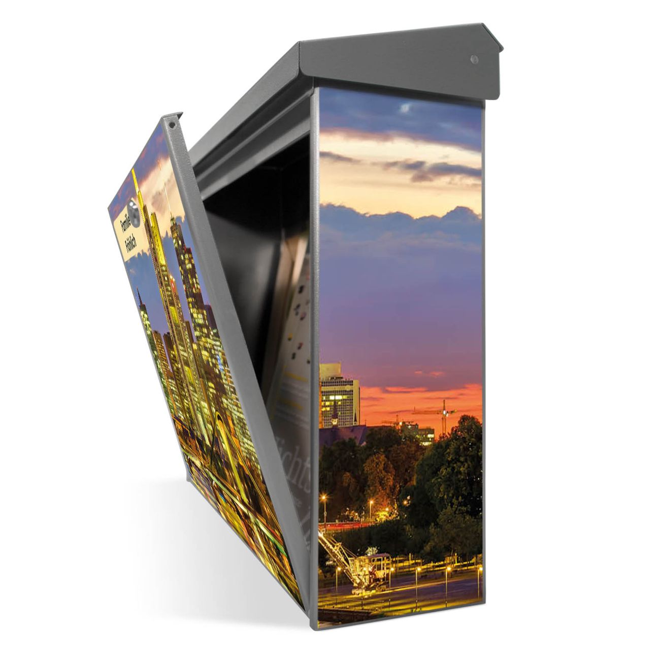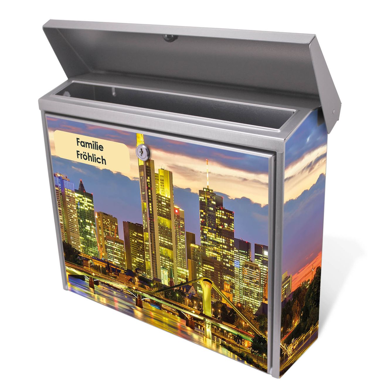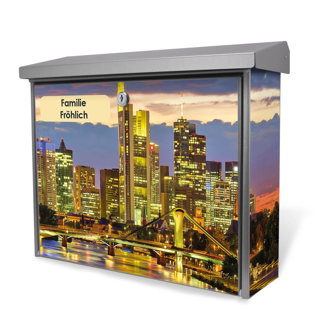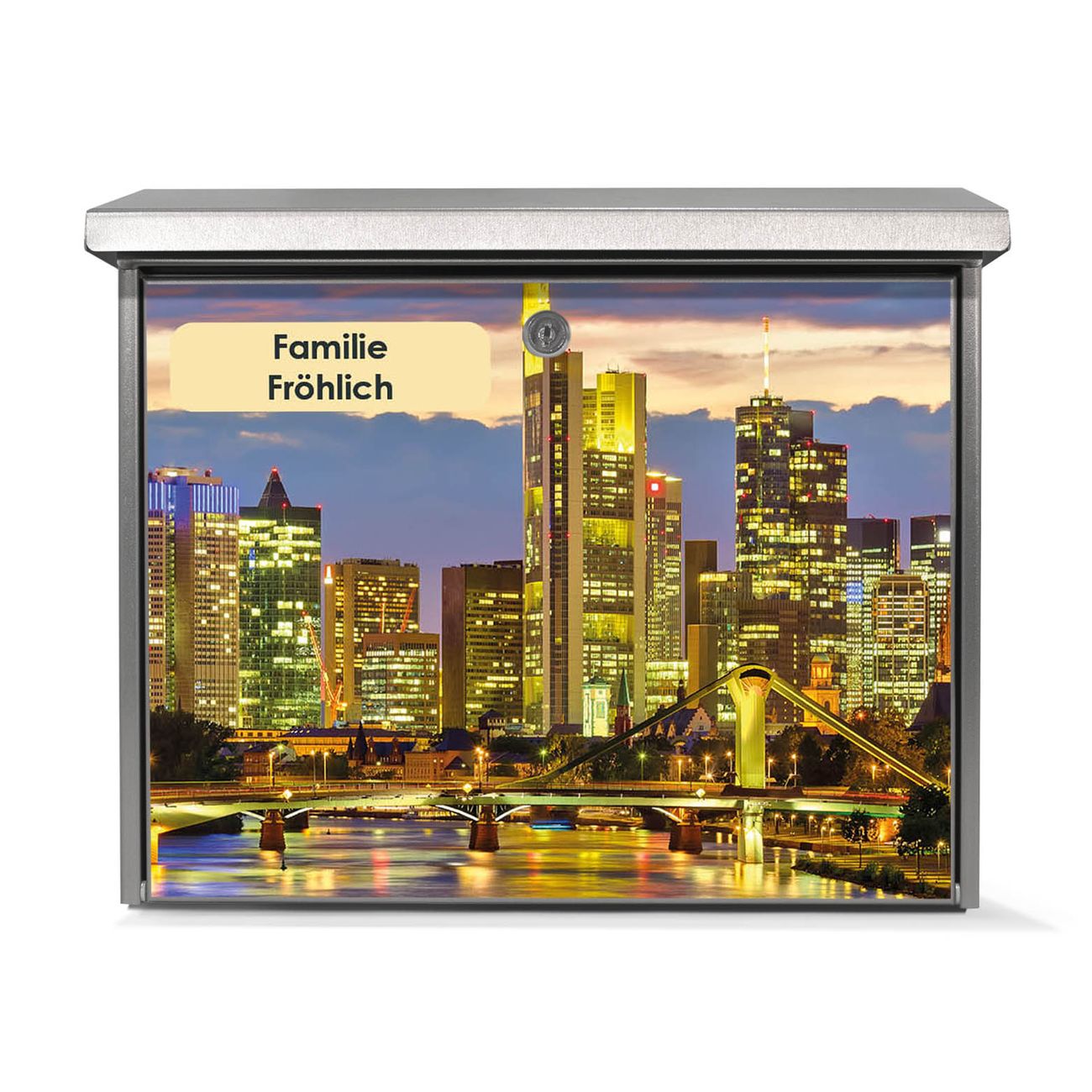 Der Postkasten mit Frankfurt Main Motiv hat ein sehr ansprechendes und zeitloses Design. Unsere Motivpalette hält jede Menge Varianten bereit, ob klassisch, modern, verspielt oder witzig - für jeden haben wir das passende Motiv parat. Der Briefkasten ist das Aushängeschild Ihres Hauses.