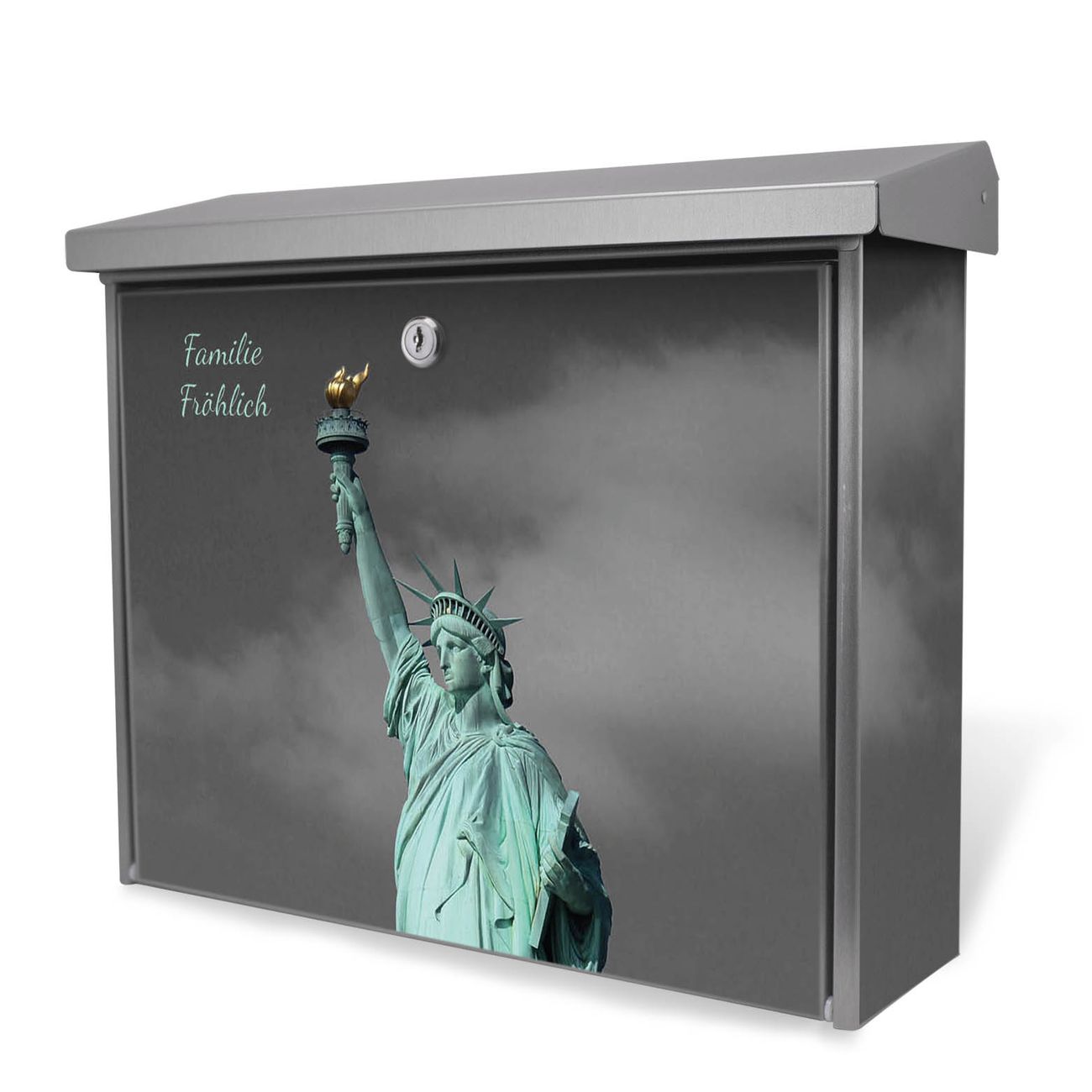 Der Postkasten mit Freiheitsstatue Motiv hat ein sehr ansprechendes und zeitloses Design. Unsere Motivpalette hält jede Menge Varianten bereit, ob klassisch, modern, verspielt oder witzig - für jeden haben wir das passende Motiv parat. Der Briefkasten ist das Aushängeschild Ihres Hauses.
