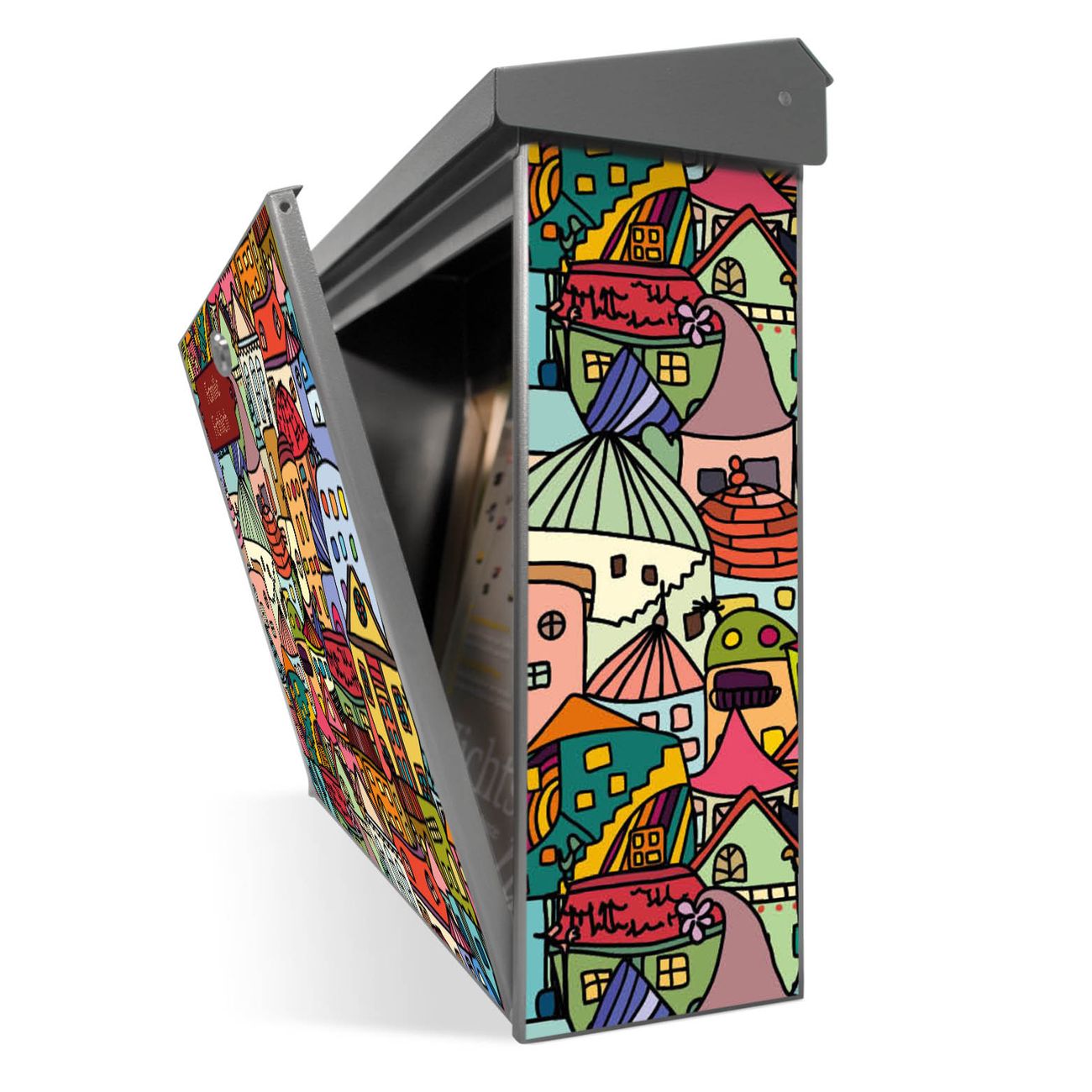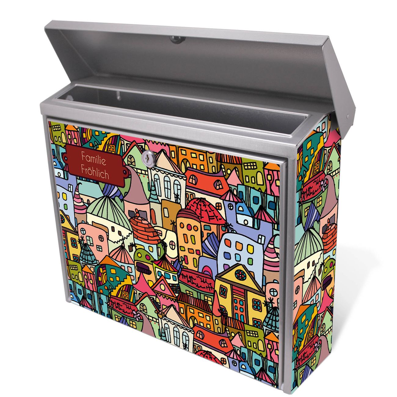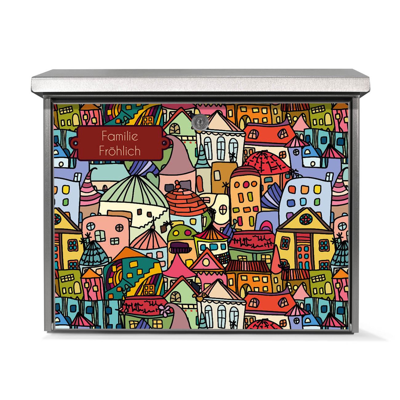 Der Postkasten mit Funky Town Motiv hat ein sehr ansprechendes und zeitloses Design. Unsere Motivpalette hält jede Menge Varianten bereit, ob klassisch, modern, verspielt oder witzig - für jeden haben wir das passende Motiv parat. Der Briefkasten ist das Aushängeschild Ihres Hauses.