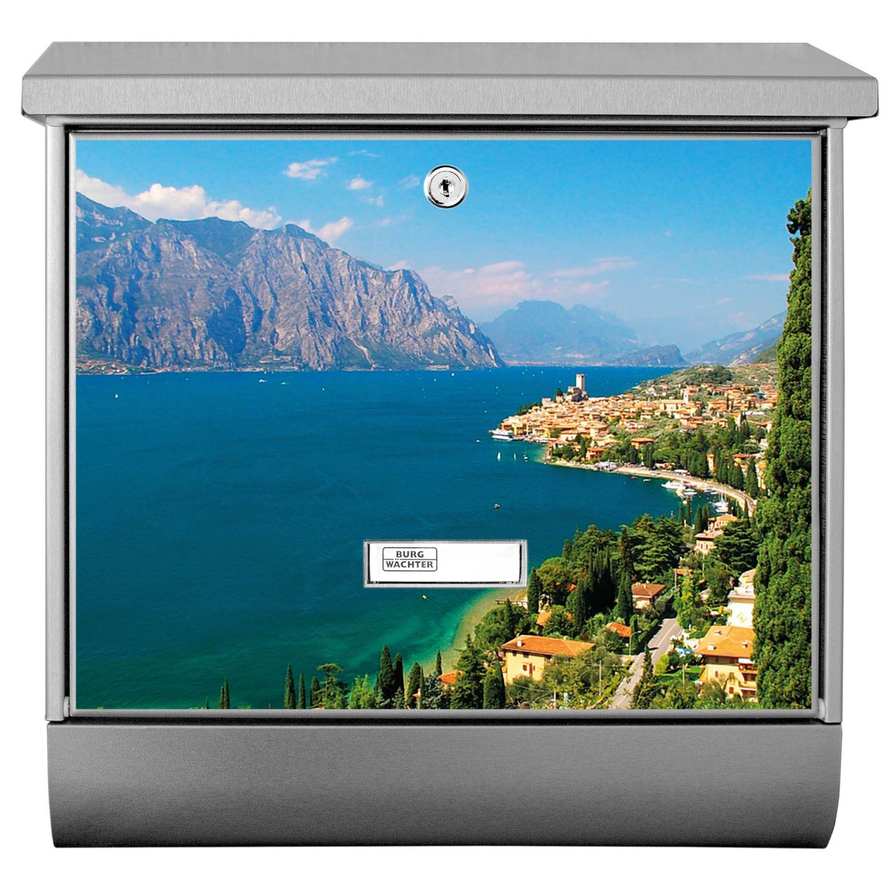 Der Gardasee Motivbriefkasten hat ein sehr ansprechendes und zeitloses Design. Unsere Motivpalette hält jede Menge Varianten bereit, ob klassisch, modern, verspielt oder witzig - für jeden haben wir das passende Motiv parat. Der Briefkasten mit Zeitungsfach ist Ihr Aushängeschild, heben Sie Sich ab ohne auf Funktionalität zu verzichten.