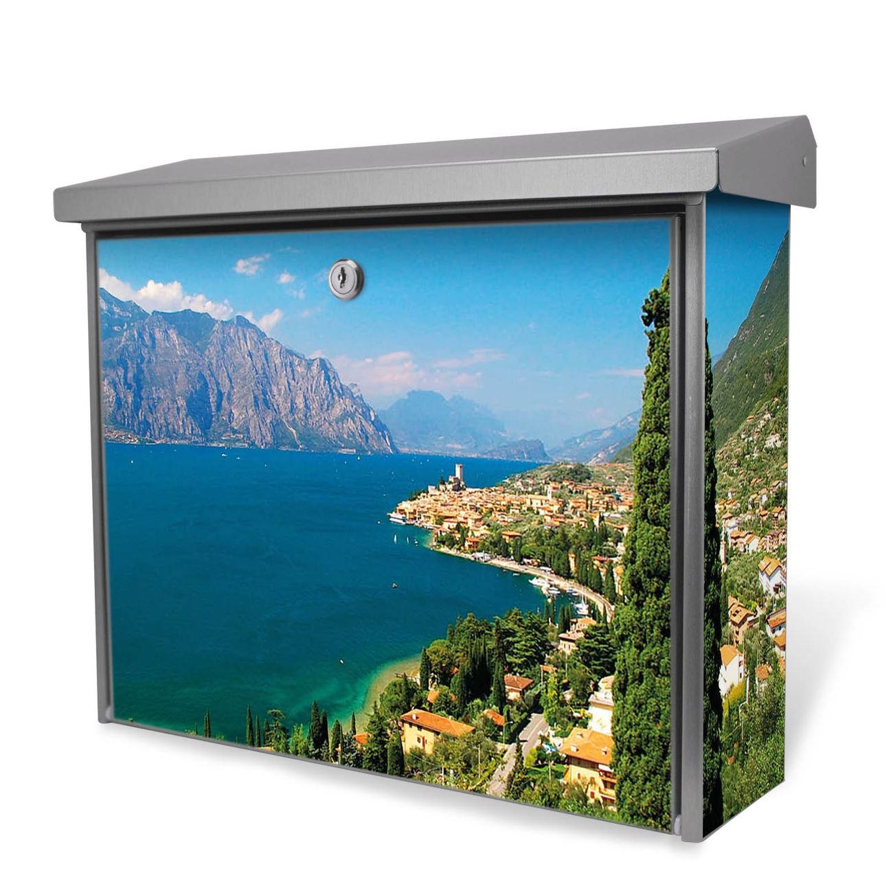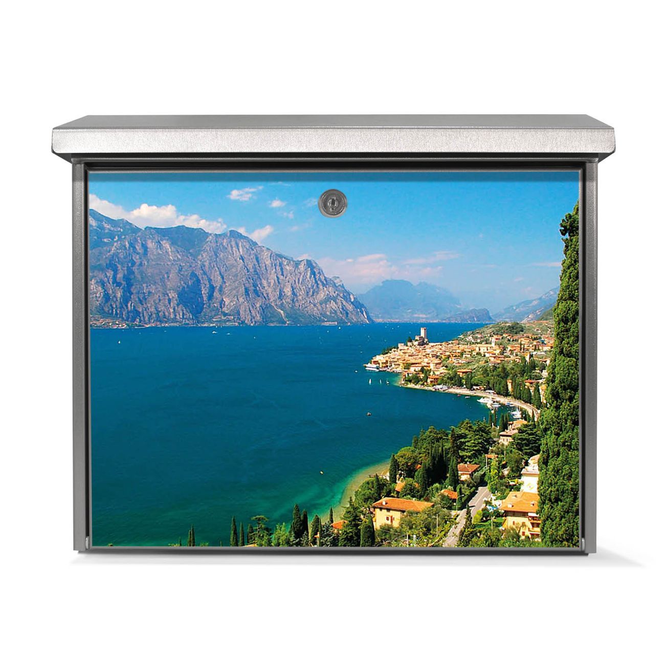 Der Postkasten mit Gardasee Motiv hat ein sehr ansprechendes und zeitloses Design. Unsere Motivpalette hält jede Menge Varianten bereit, ob klassisch, modern, verspielt oder witzig - für jeden haben wir das passende Motiv parat. Der Briefkasten ist das Aushängeschild Ihres Hauses.