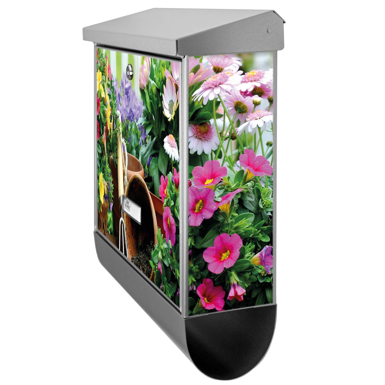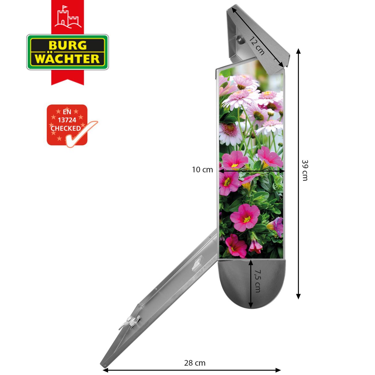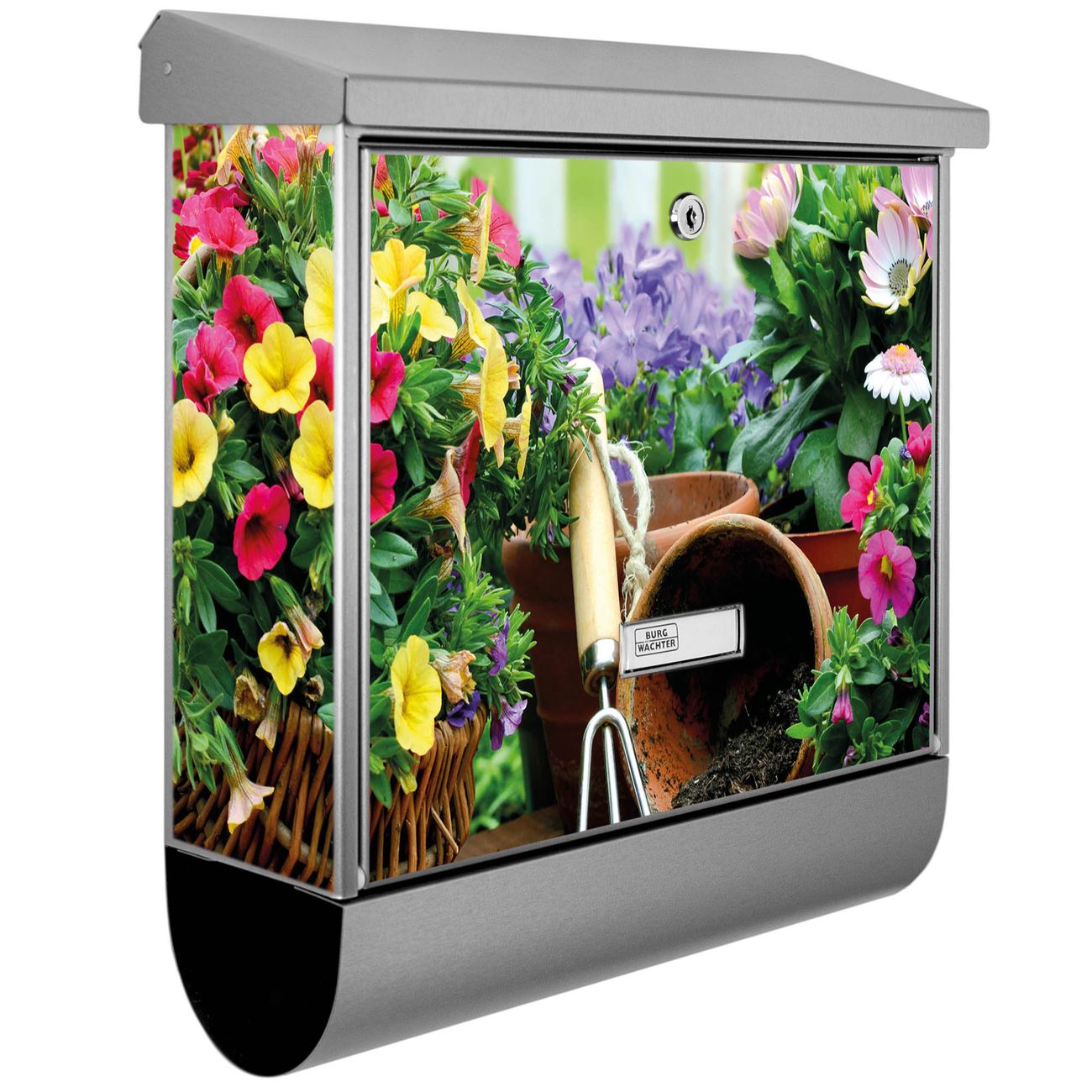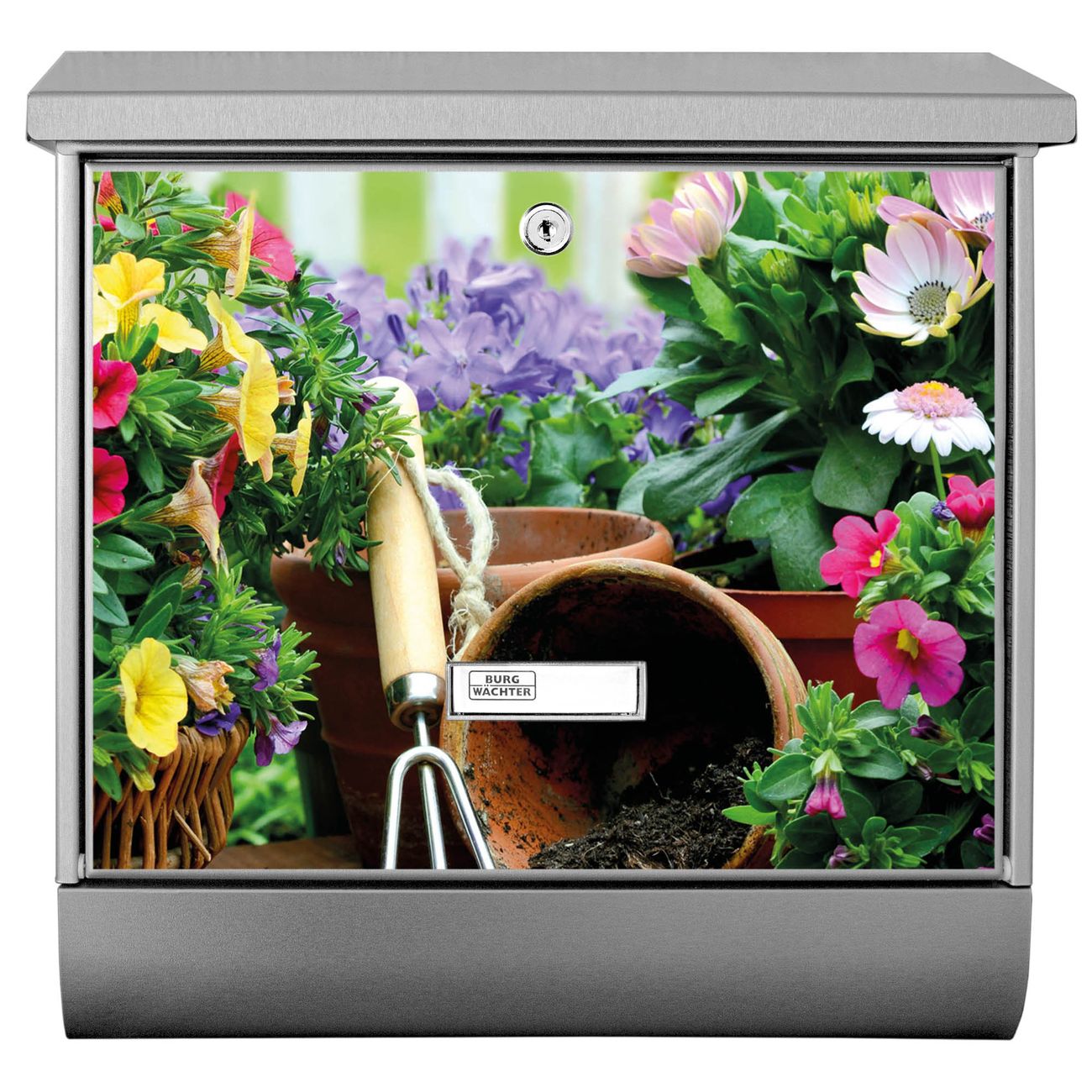 Der BURG-WÄCHTER Edelstahl Briefkasten mit Motiv Gartenfreude und Zeitungsrolle bietet Ihnen mit seinem Fassungsvermögen genügend Platz auch für große A4 Sendungen und Zeitschriften. Das integrierte Regendach schützt Ihre Post vor dem Eindringen von Regen.