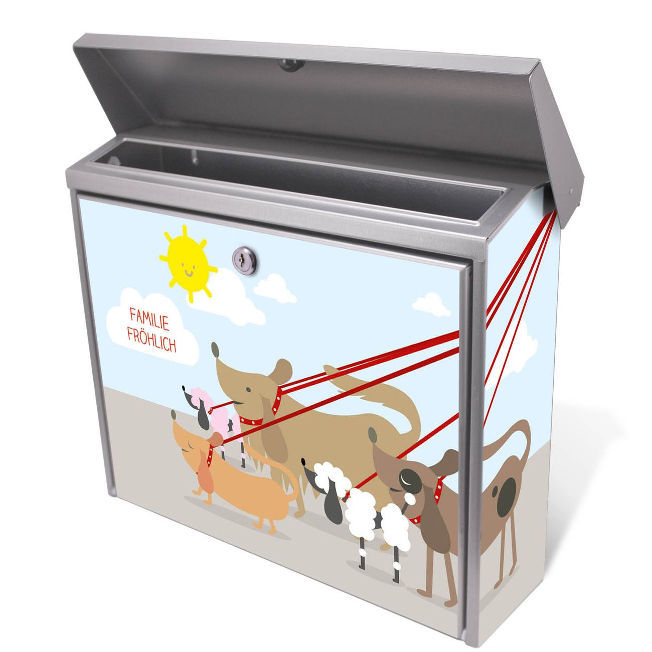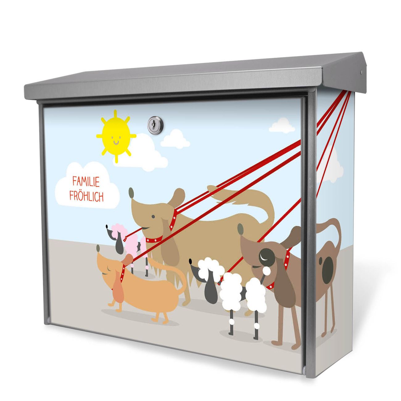Der Postkasten mit Gassi Gehen Motiv hat ein sehr ansprechendes und zeitloses Design. Unsere Motivpalette hält jede Menge Varianten bereit, ob klassisch, modern, verspielt oder witzig - für jeden haben wir das passende Motiv parat. Der Briefkasten ist das Aushängeschild Ihres Hauses.