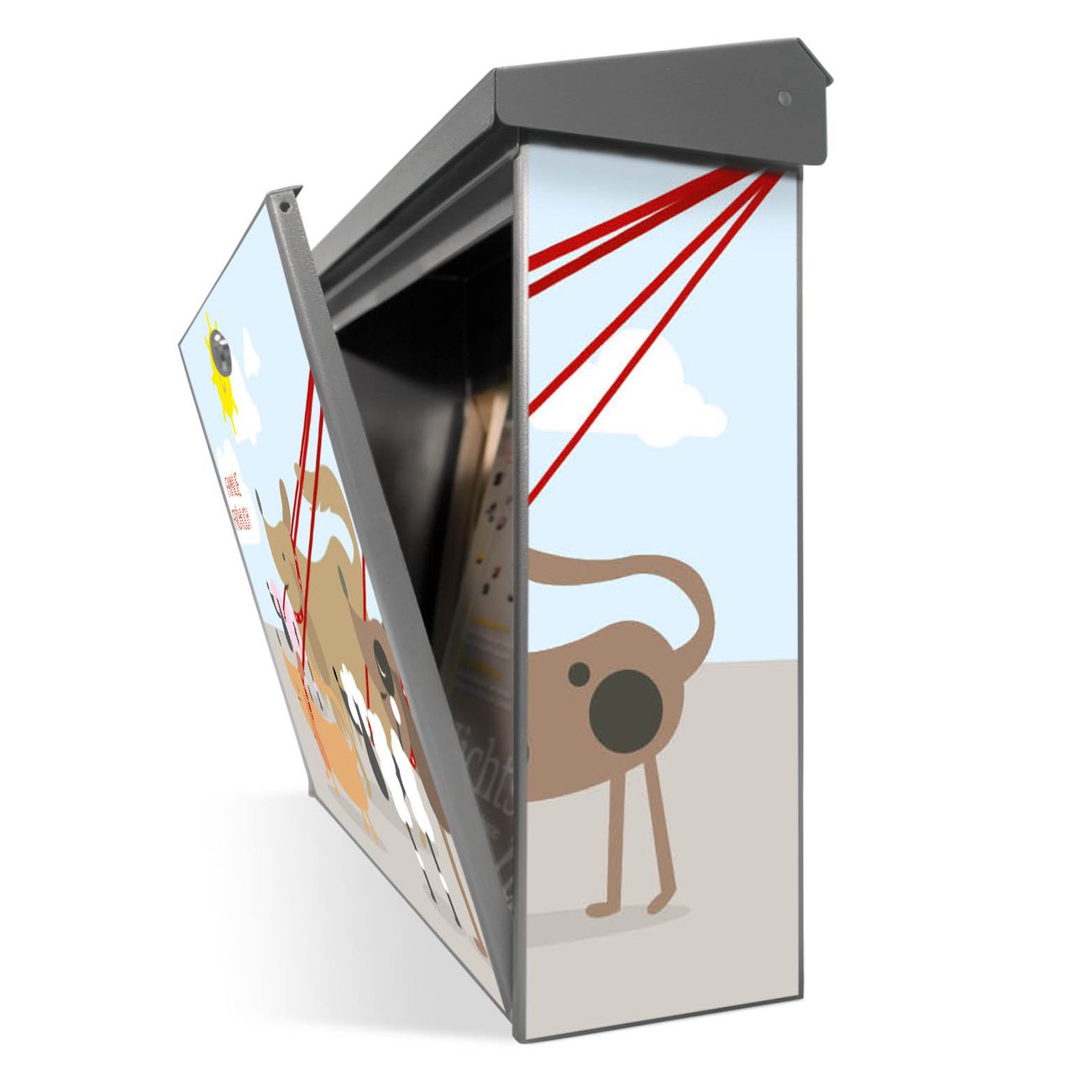 Sie können diesen Briefkasten sowohl als Wandbriefkasten montieren oder mit dem passenden Ständer als Standbriefkasten einbetonieren. Die gestaltete Motivfolie ist absolut wetterfest, UV-beständig und ein zusätzliches Schutzlaminat bewahrt Ihren Briefkasten vor unnötigen Kratzern.